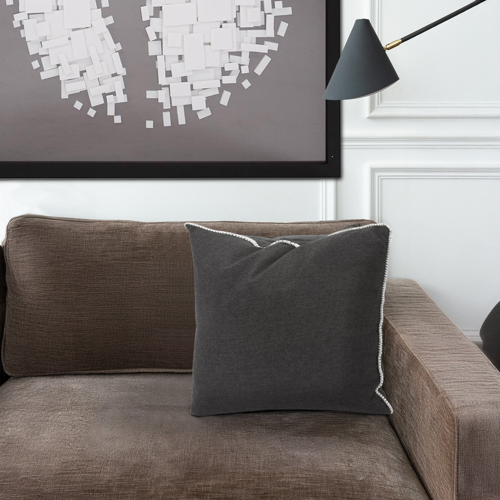 20 x 20 Outdoor Pillow with Dec Cord- Seascape Charcoal- Poly Insert