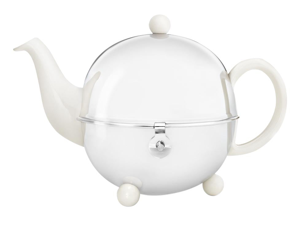 30 fl oz teapot ceramic/ss white with felt lined cozy
