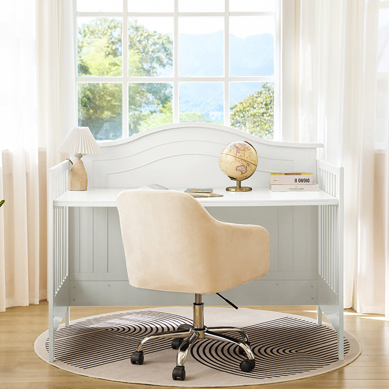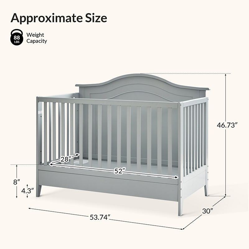 The versatile 5-in-1 baby cot seamlessly weaves classic design with modern charm, a loving embrace designed for both babies and moms. Made from durable rubberwood and MDF, it offers five essential uses: a baby crib, rocking cradle, toddler bed, rest bed, and a convertible desk. The cot includes all the necessary conversion kits, so there¡¯s no need for additional purchases, and these adjustable components grow with your child, allowing for a smooth transition from one stage to the next. Whether providing a safe sleep space for your infant, a cozy toddler bed, or even a sturdy desk for their early learning years, this baby cot meets all your needs. The rocking cradle function offers soothing motion for peaceful naps, and the sturdy construction guarantees durability. Suitable for parents seeking a functional, space-saving solution, this piece combines comfort, safety, and adaptability. With a five-in-one design, it is truly a smart choice for your child¡¯s early years, and also suitable for parents, providing lasting value and versatility.