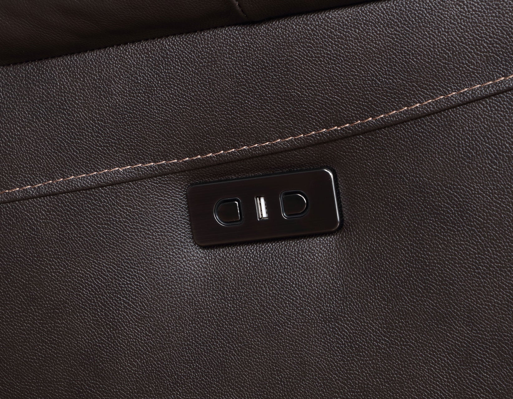 - Crafted from Chocolate colored top-grain leather with matching faux-leather backs and sides