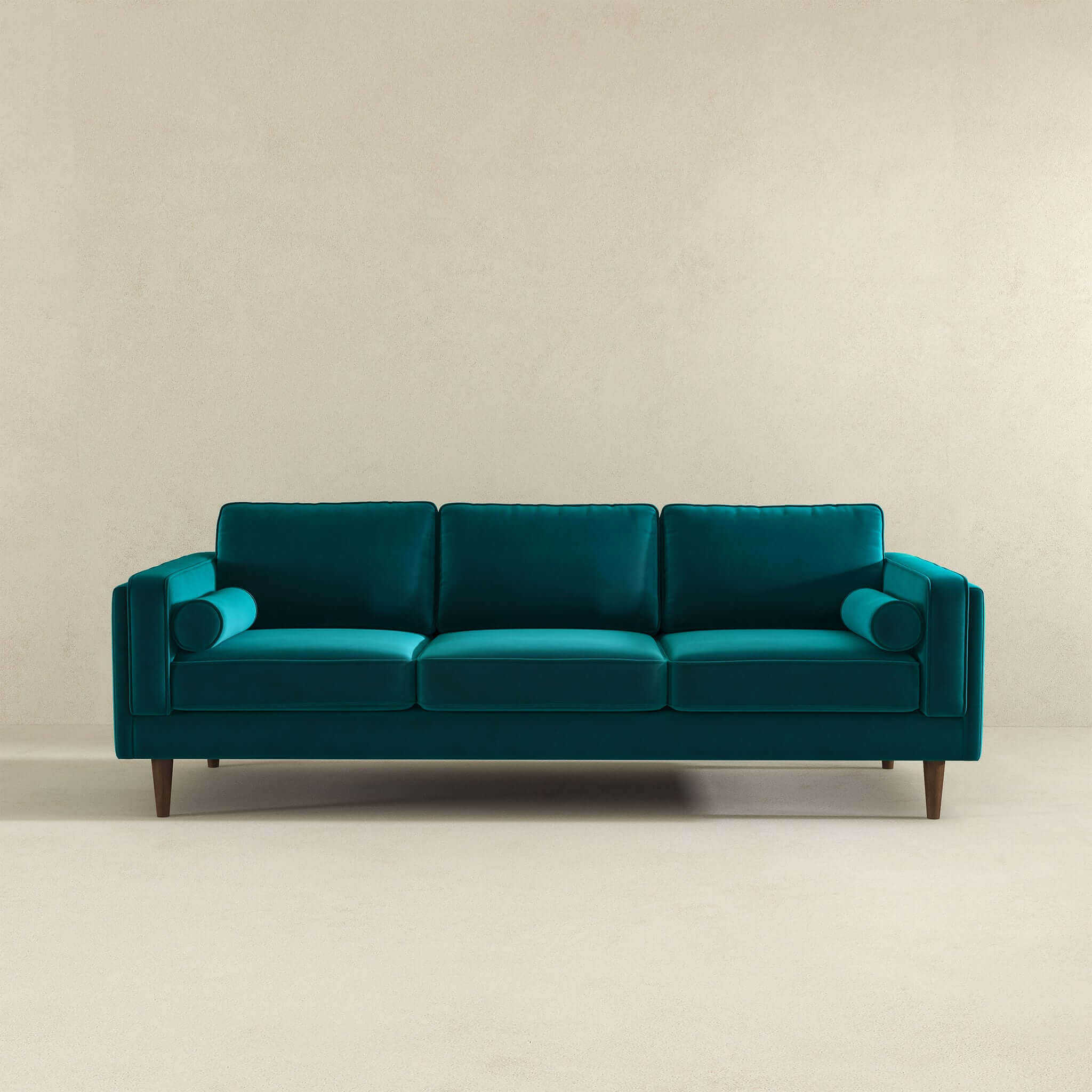 Anchor your space in mid-century modern style with the Amber velvet sofa. Combining durable, top-quality craftmanship and high-density foam this sofa will provide you with great comfort and undoubtedly become the centerpiece of your living room, den, urban loft, condo or home office. It is made of Velvet and can be cleaned with a non-abrasive cleaning solution followed by a quick microfiber cloth. Removable legs allow for simple delivery for tight spaces. Available in a variety of timeless colors, you're sure to find something that matches your decor