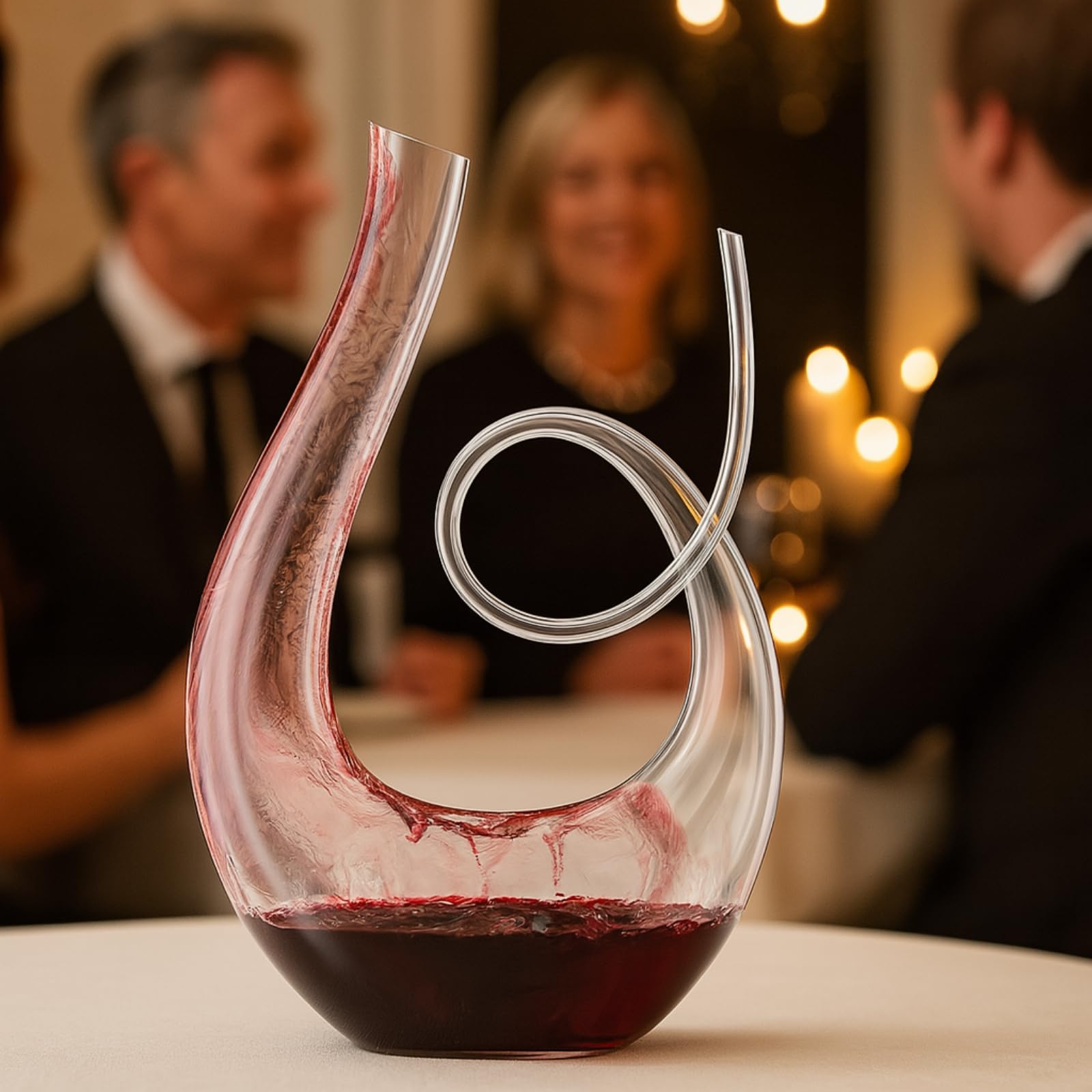 Elevate your wine experience with this artistic swan shape wine decanter designed to impress. Its unique design doubles as a sculptural centerpiece and tableware accessory, crafted from durable crystal clear glass for both elegance and strength. The swirl pitcher design functions as a glass aerator, enhancing aroma and flavor with every pour. With a 33.82 oz capacity, it serves a full bottle with ease, making it a reliable server for tasting events or quiet nights in. Ideal for any modern home bar or kitchen, this elegant pourer is the perfect gift for wine enthusiasts. A true luxury item that blends function with decor, it is a must-have sommelier tool and a standout carafe in any beverage set.