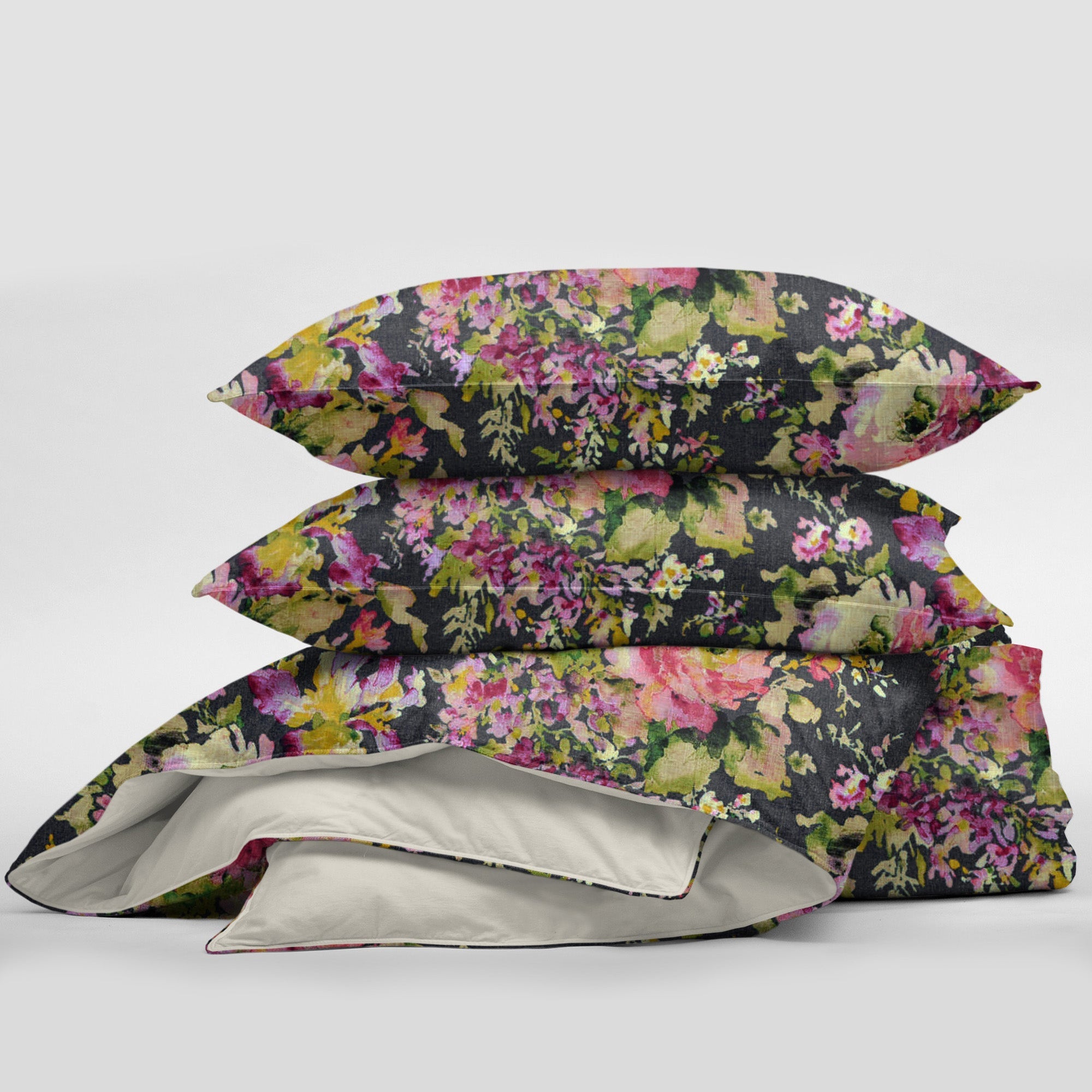 Athena Linen's soft antique floral design is a nod to the romantic era. Large blooms woven with a linen blend fabric create a whimsical story of color and texture.