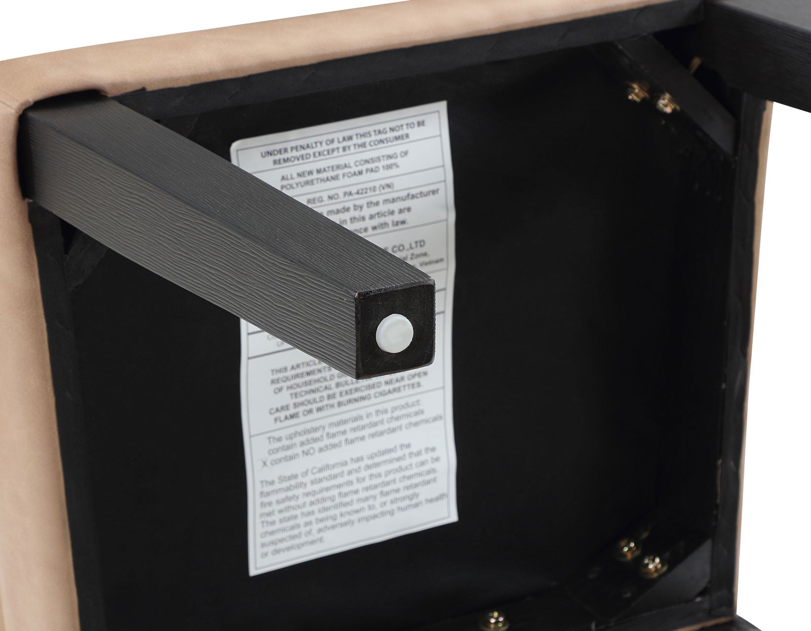 - Expertly crafted of Asian hardwood solids, 1.1 density foam and camel vegan leather cover