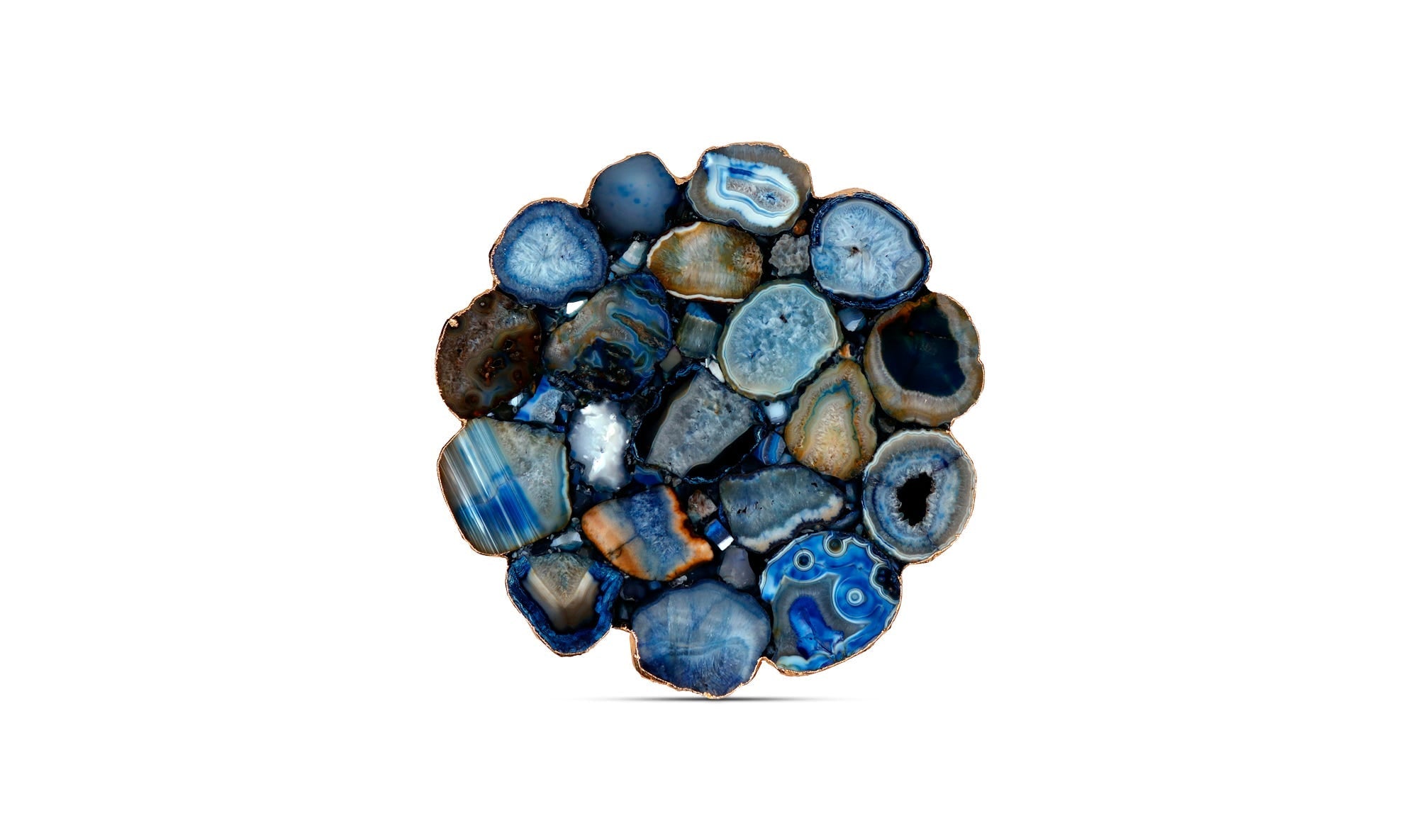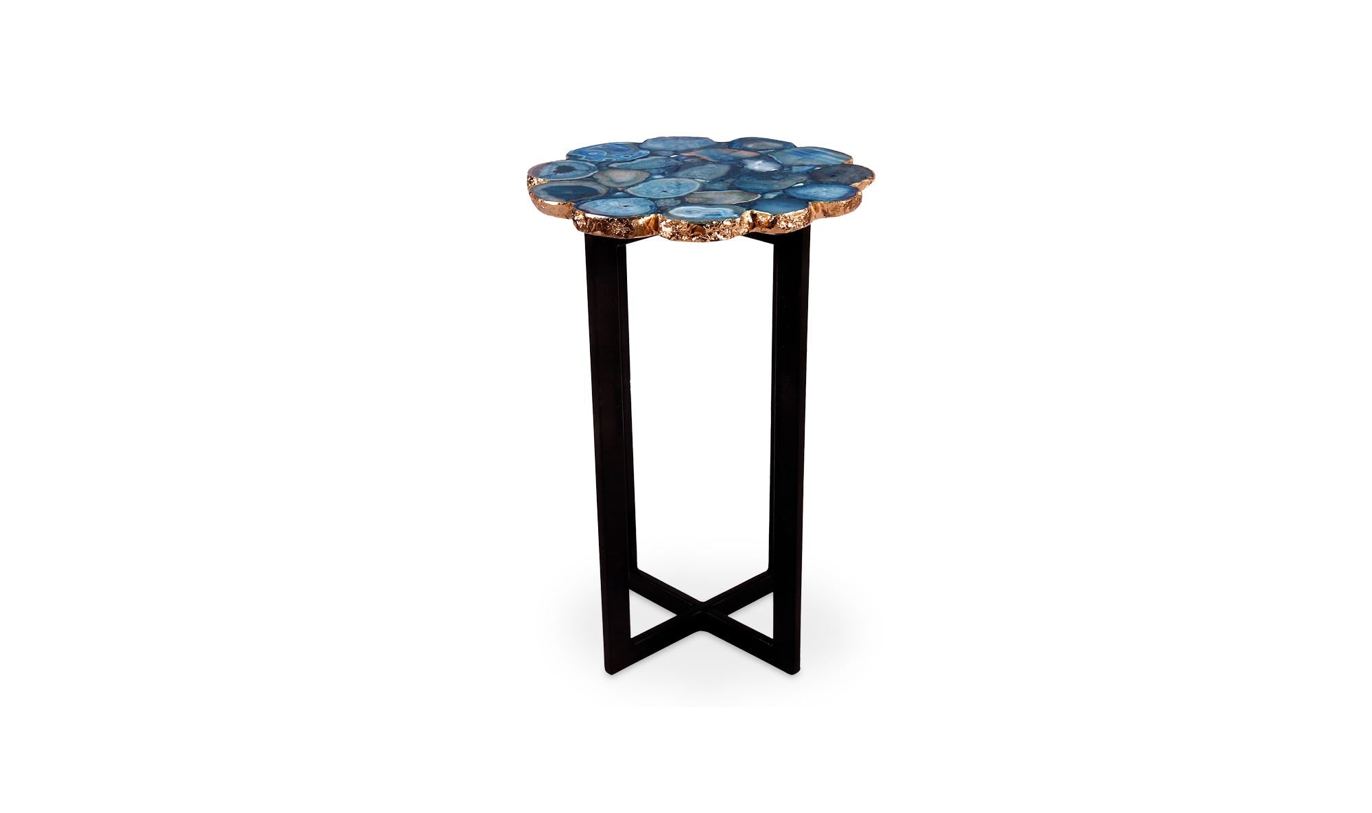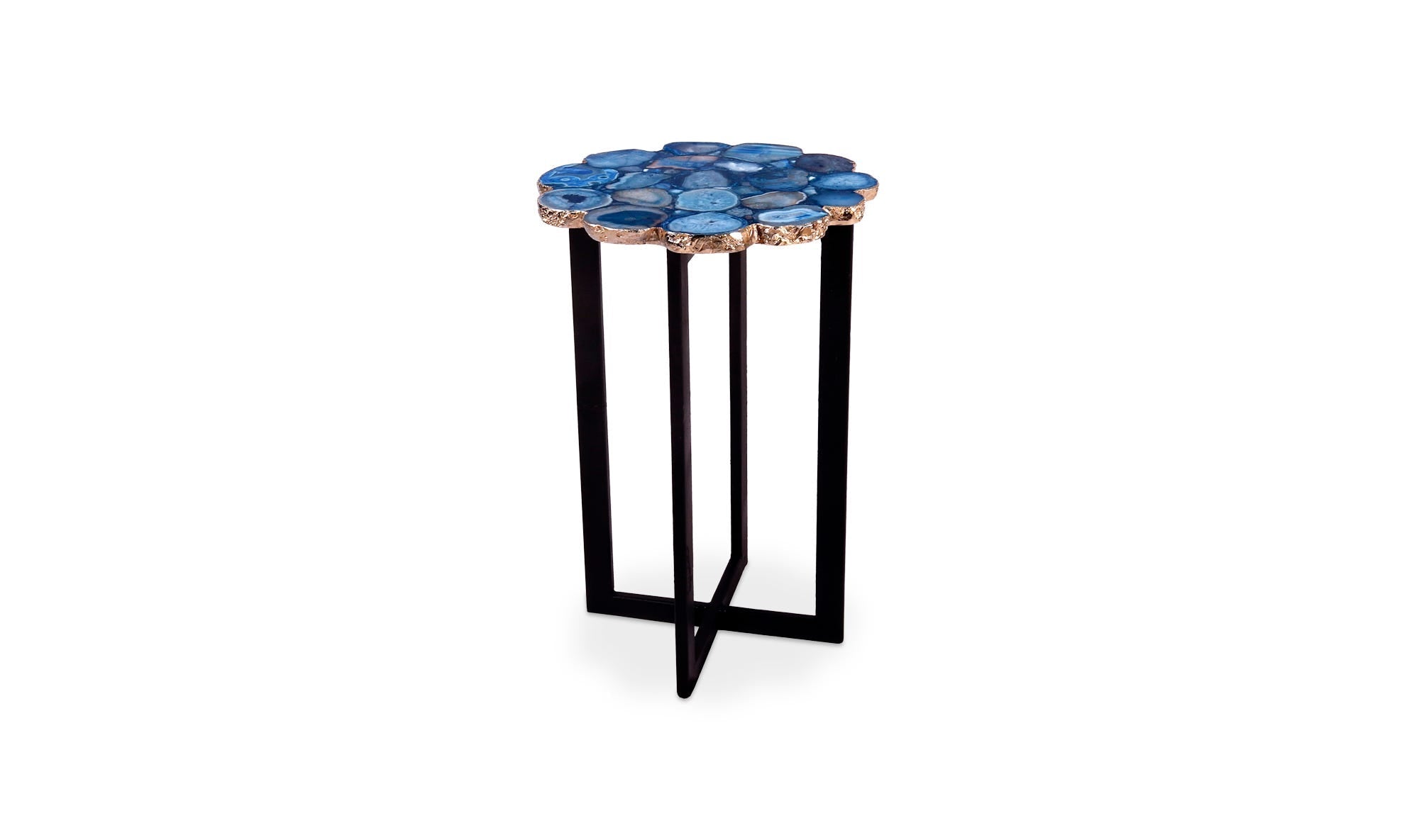 The Azul Agate accent table is one of our bestsellers for a reason. Its tabletop is constructed from beautiful blue agate stone, so each table is eye-catching and one-of-a-kind. The live edges of the agate are painted gold for a luxurious look in your home.