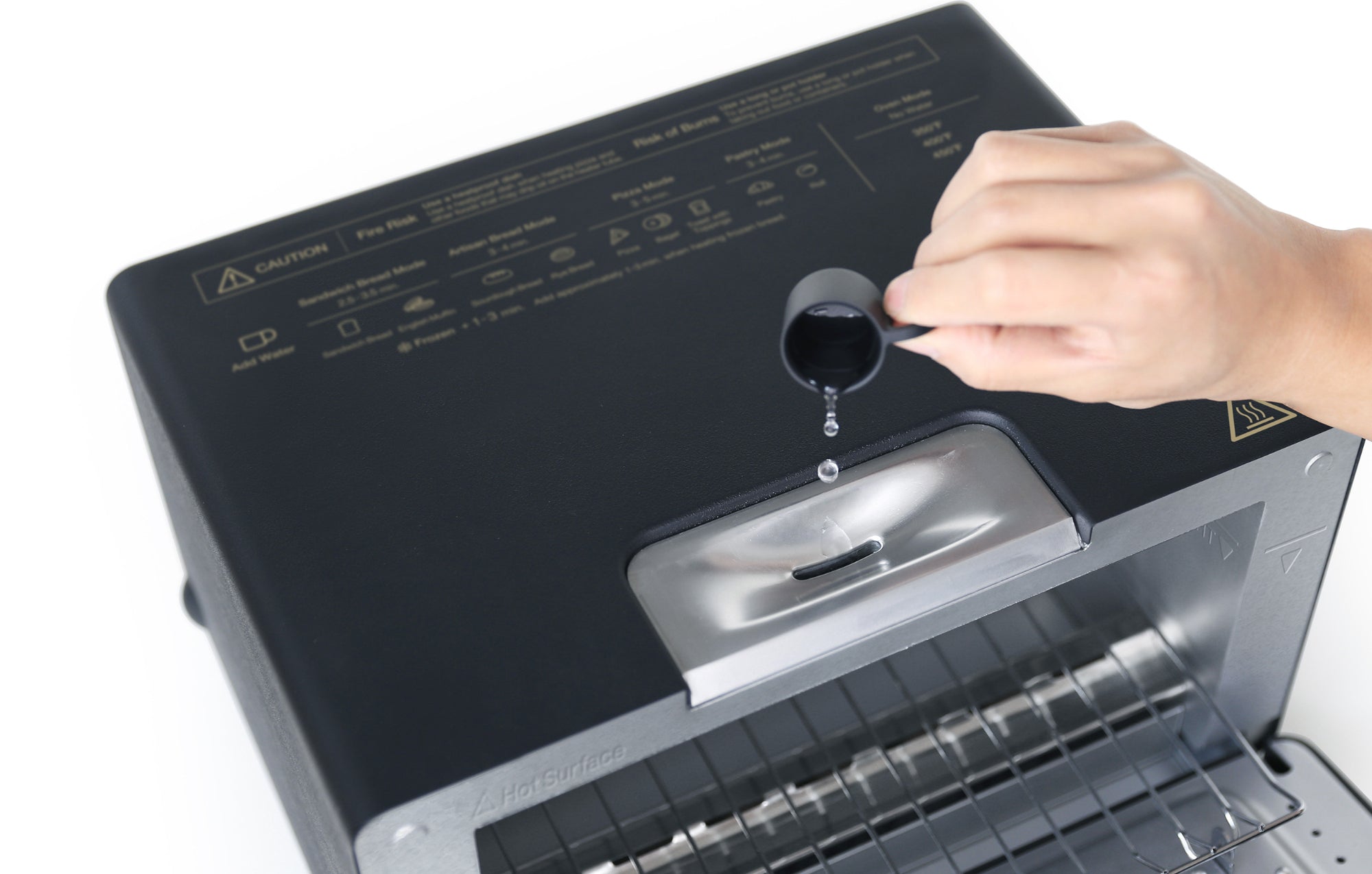Steam technology: Simply pour five cc’s of water at the start of each toast. Heating more rapidly than air, a thin layer of steam envelops the bread, lightly toasting its surface, while keeping its inner moisture and flavor from escaping.