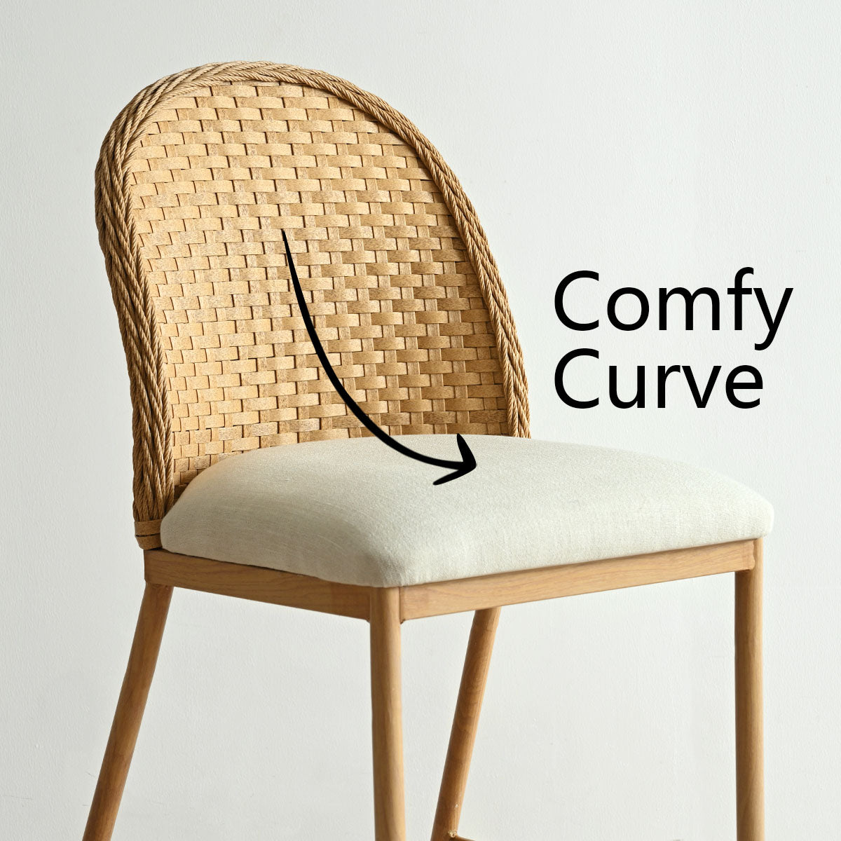 This elegant coastal-inspired rattan counter stool combines style and comfort for your home. With a realistic faux rattan back, it captures the charm of authentic rattan while offering added durability. The soft, textured fabric includes 10% genuine linen, a step up from typical polyester-only upholstery, lending a touch of luxury and a pleasant feel.