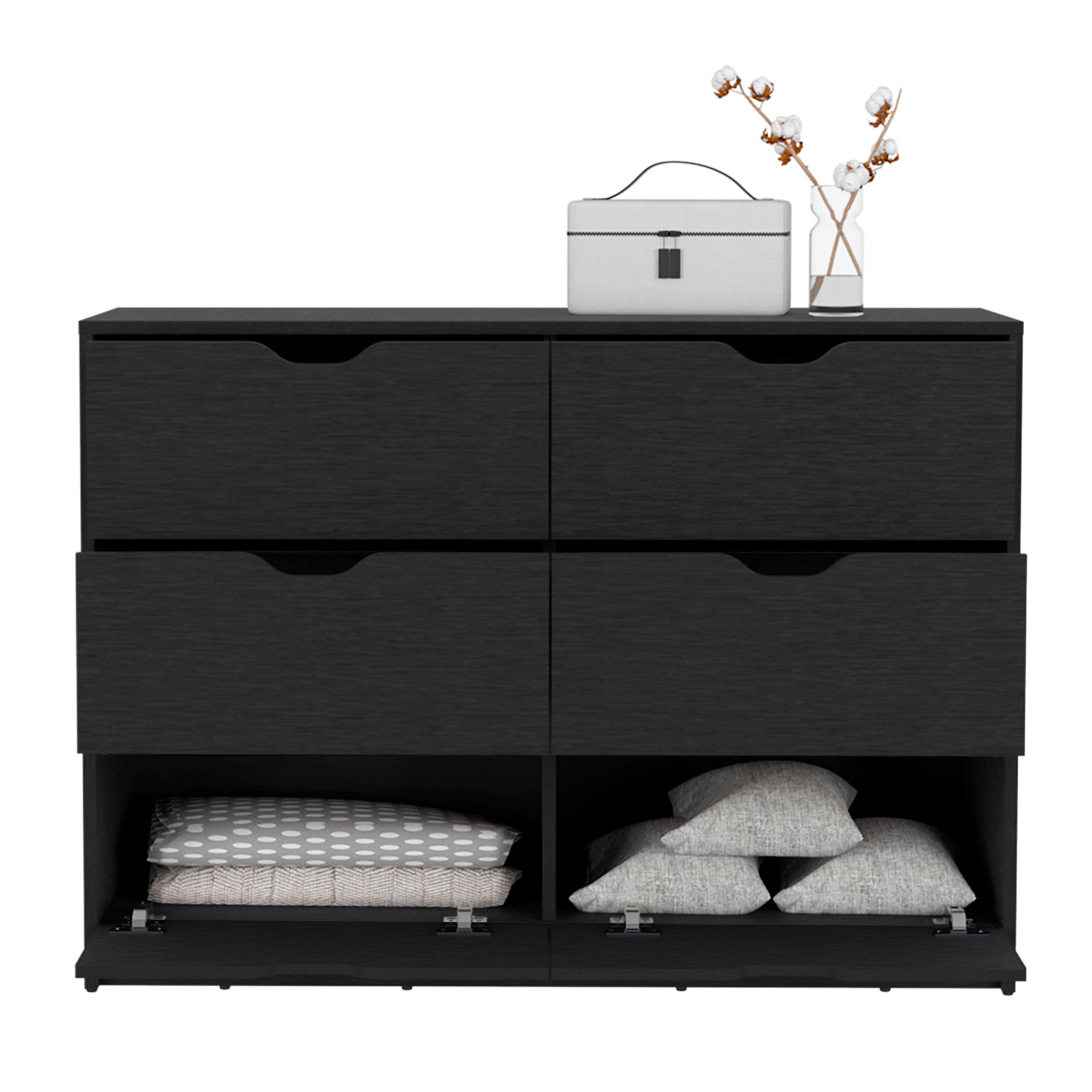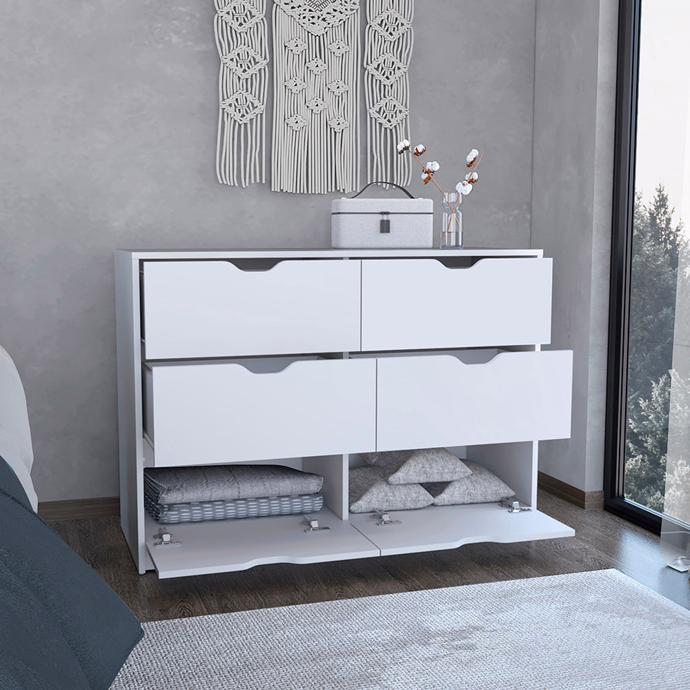 What’s better than having all your storage in one place? This Basilea 4 Drawers Dresser is perfect for your comfort! It has four large drawers that can store all your clothes, plus at the bottom, there are two cabinets with one door each, perfect for storing your shoes! Whether you’re looking for a place to store your clothes or shoes, this dresser has it all! You’ll never have to search your closet again to find what you’re looking for.