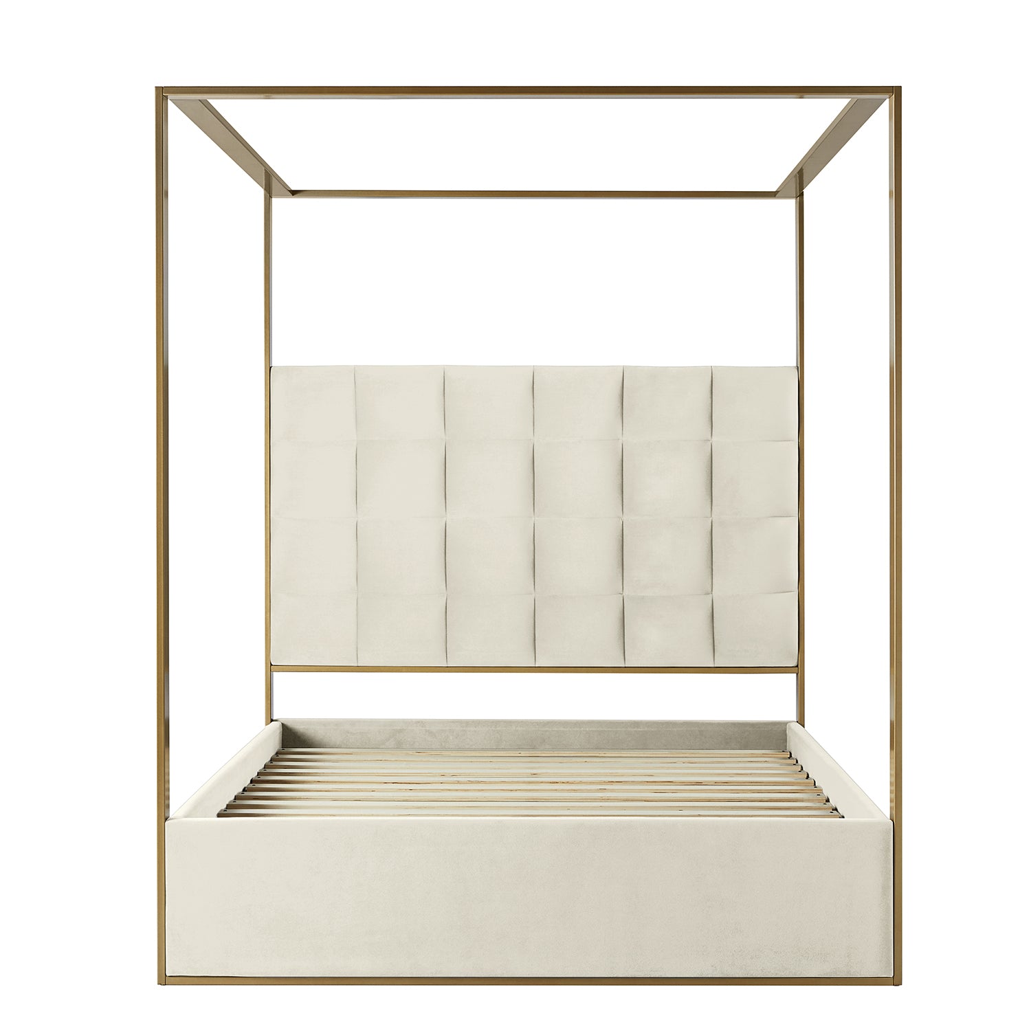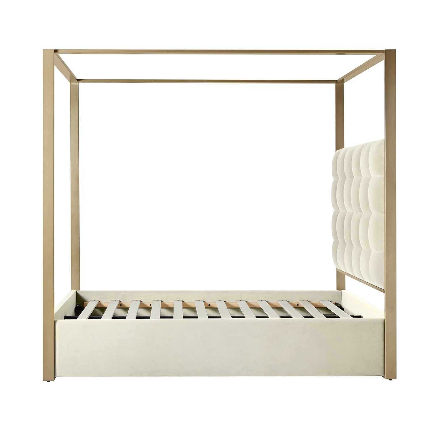Madeleine Upholstered Canopy King Bed With Curtains IVORY