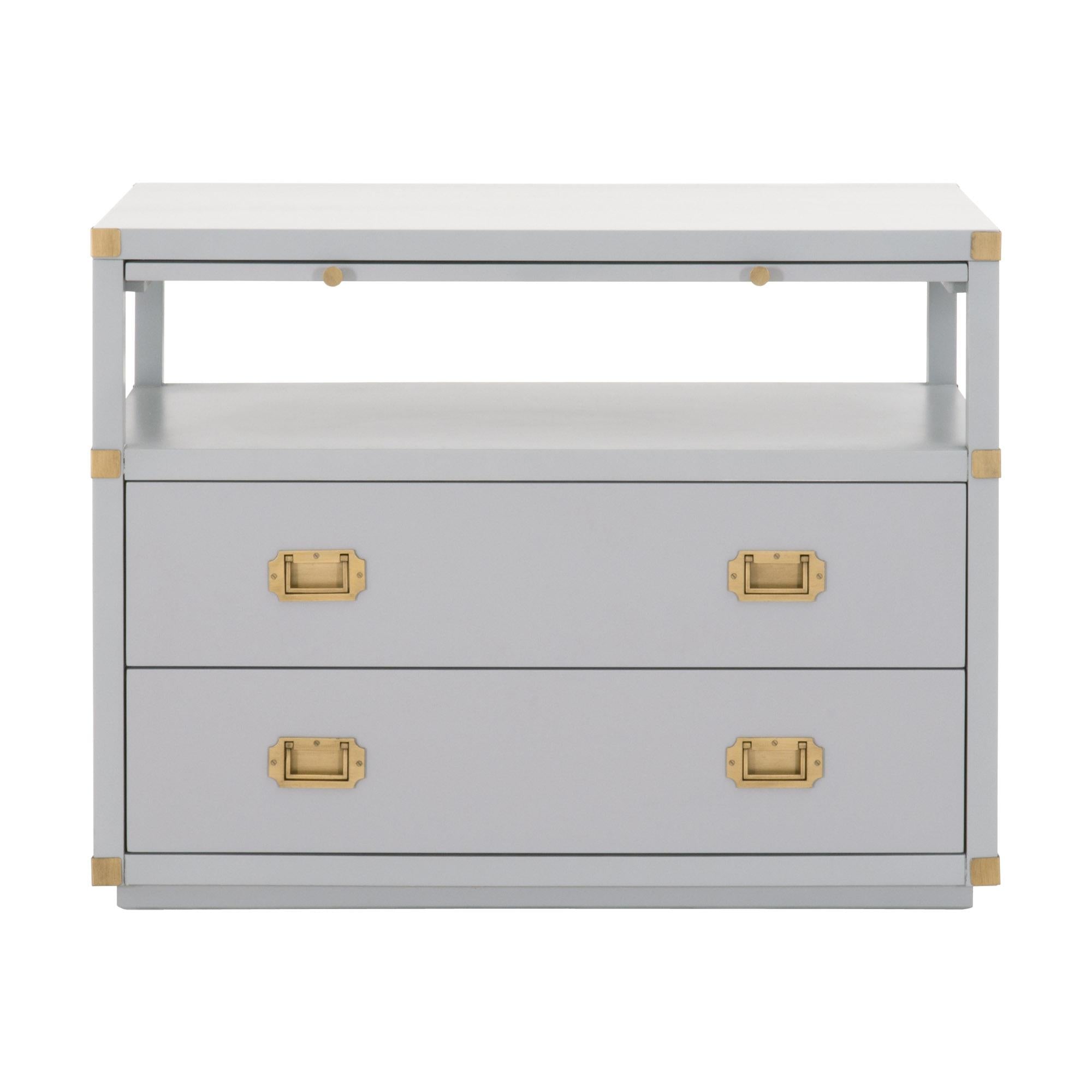 - Hardware Finish: Brushed Gold Recessed Pulls & Braces