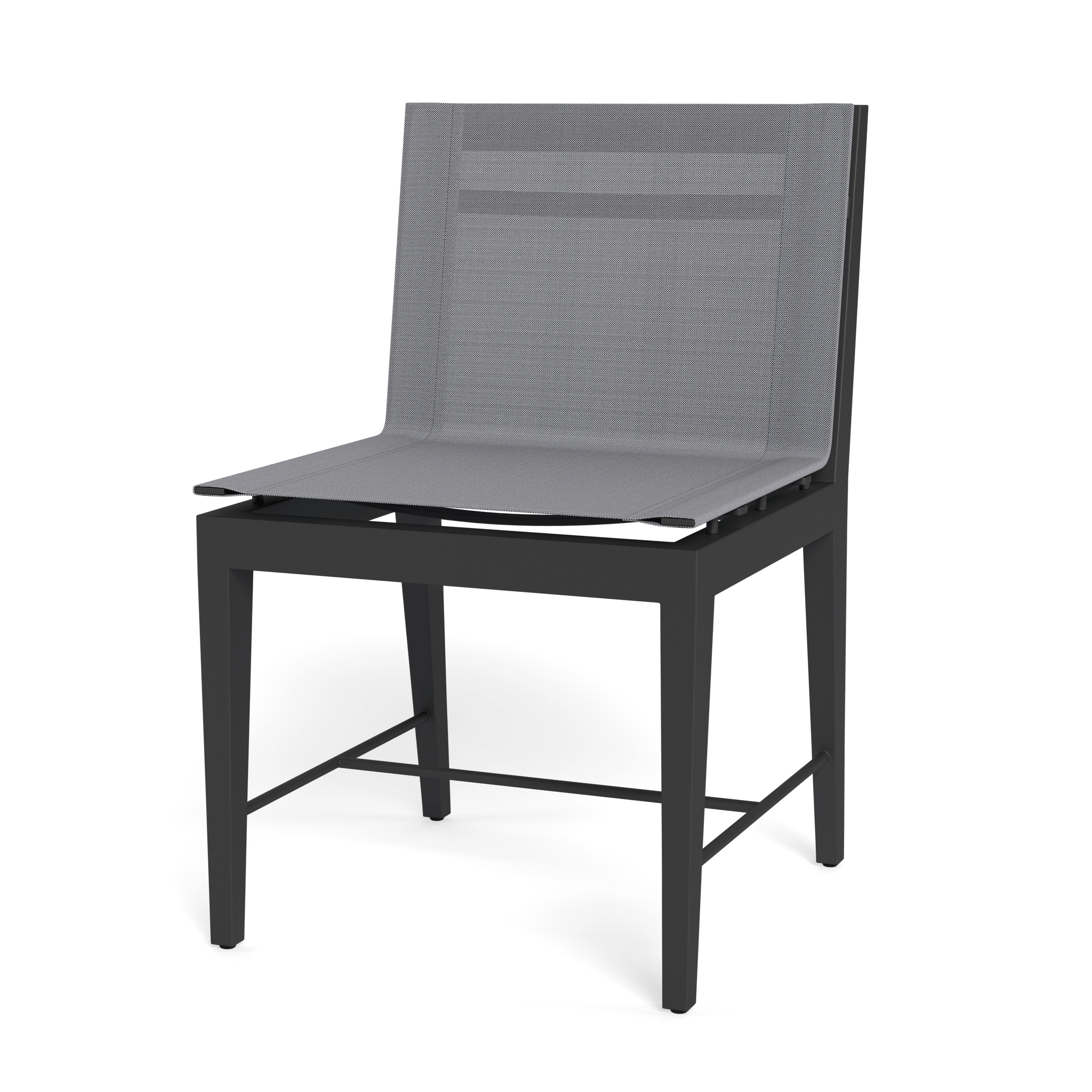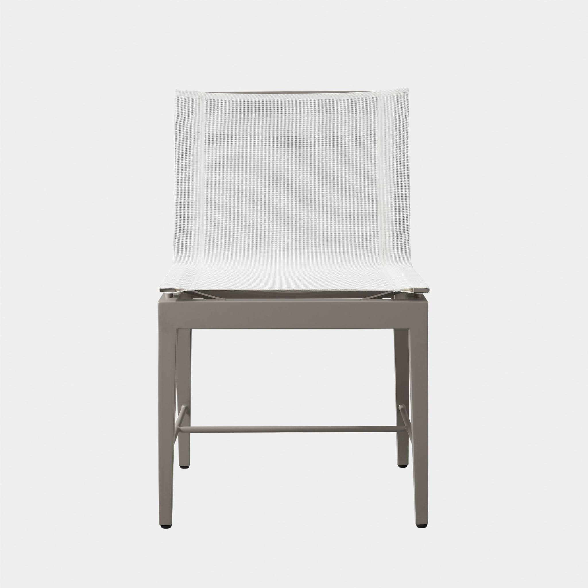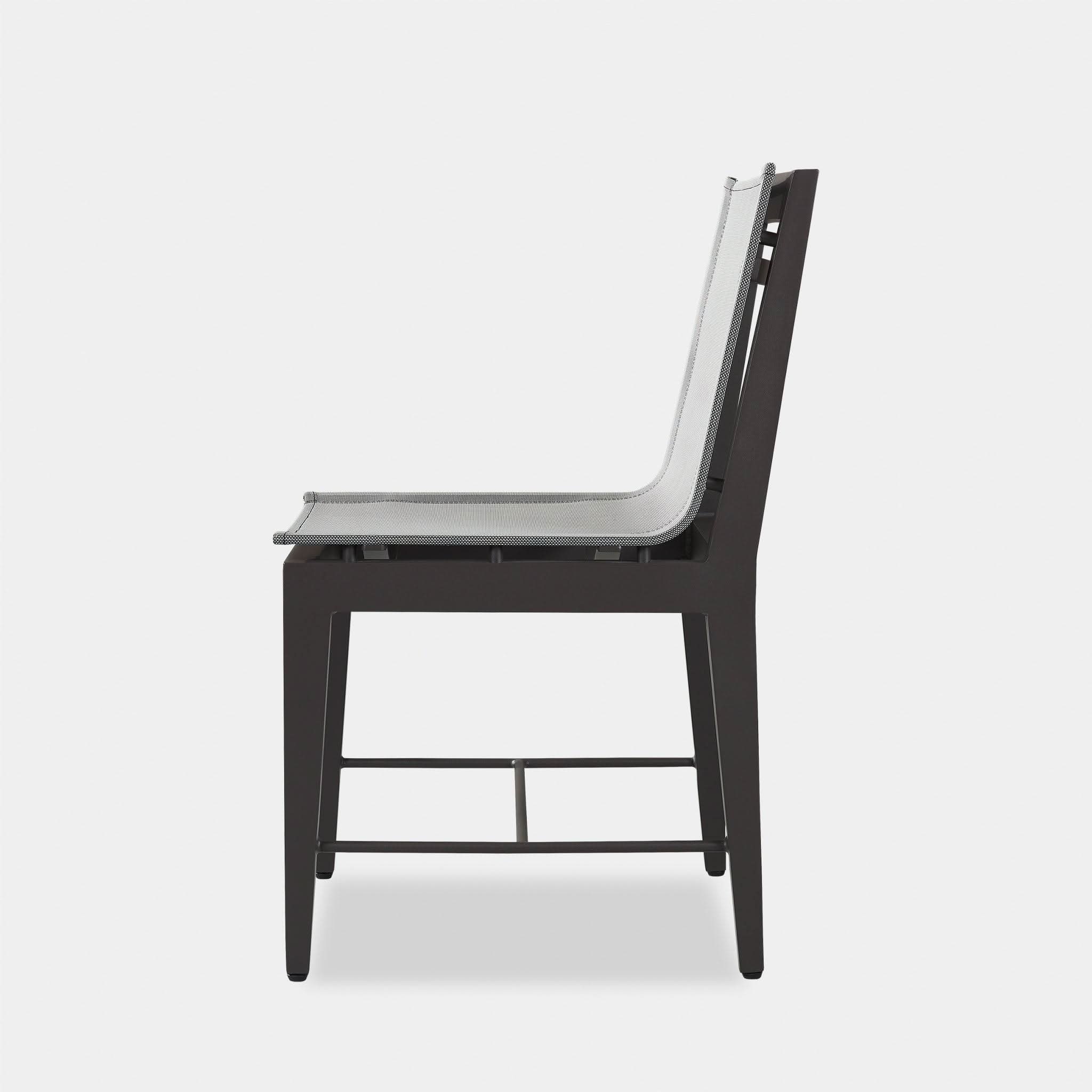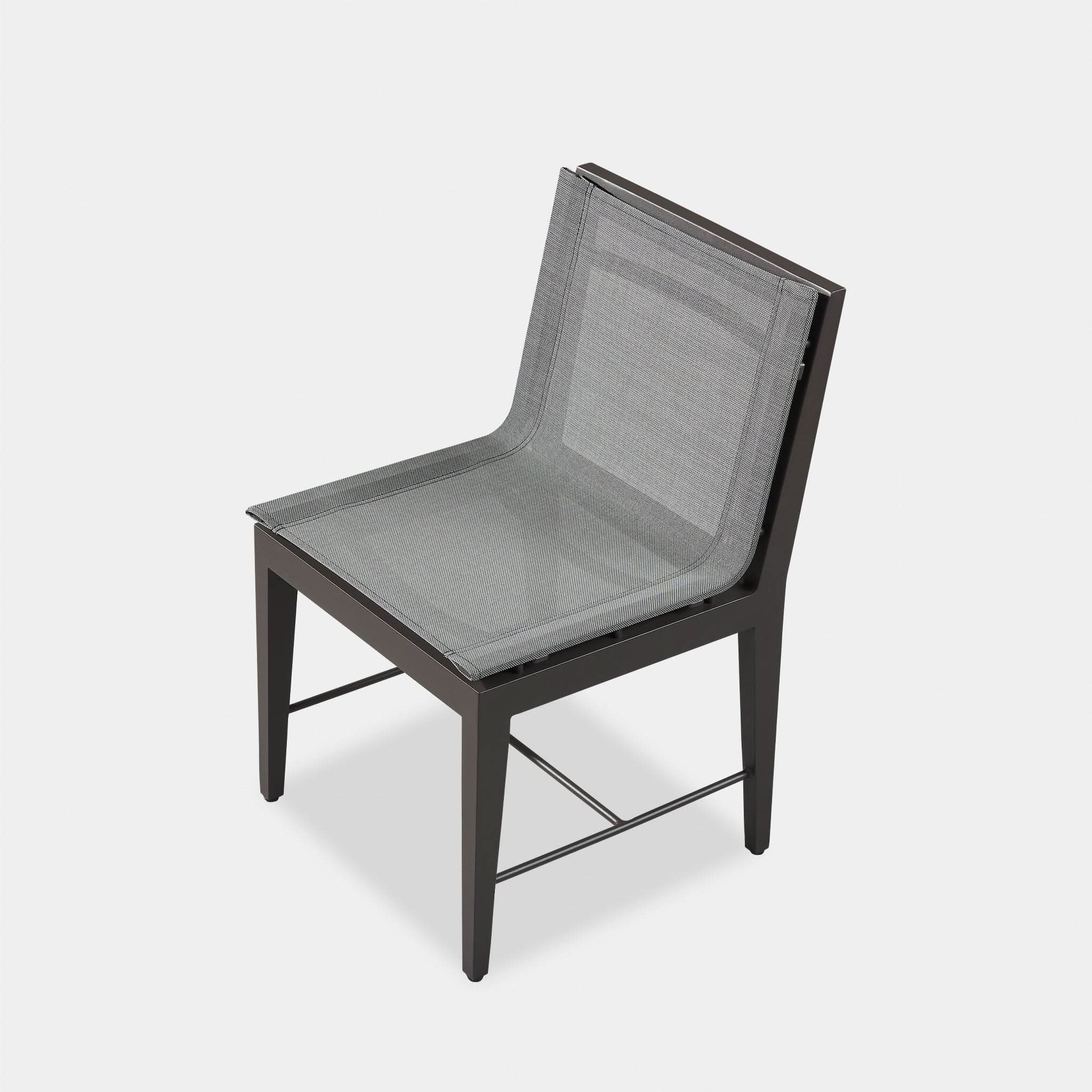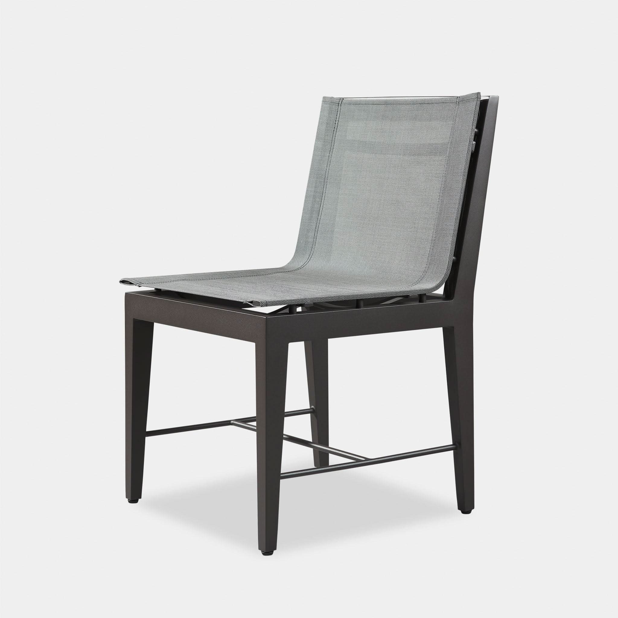 Our Byron Aluminum collection blends sophisticated styling with an architectural play of angles to create exceptional design. A unique take on the typical dining chair, the Byron Aluminum Dining Chair was designed as the perfect outdoor seating — enjoy an all–weather Batyline mesh seat for comfort, supported by a handcrafted powder coated extruded aluminum frame with a matching stretcher at the bottom for visual interest. With a subtle elegance, this highly usable piece instantly enhances any space.