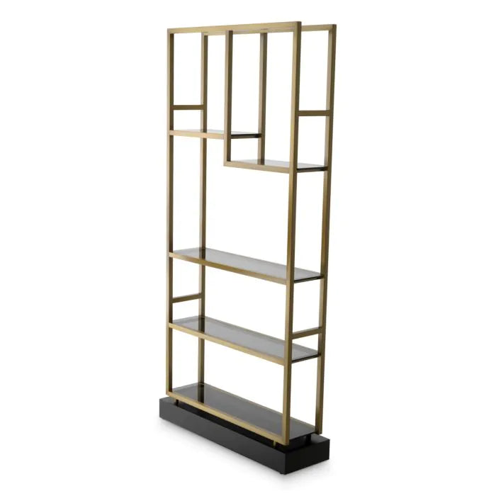 Cabinet Corrado I Brushed brass finish | smoke glass | black veneer base