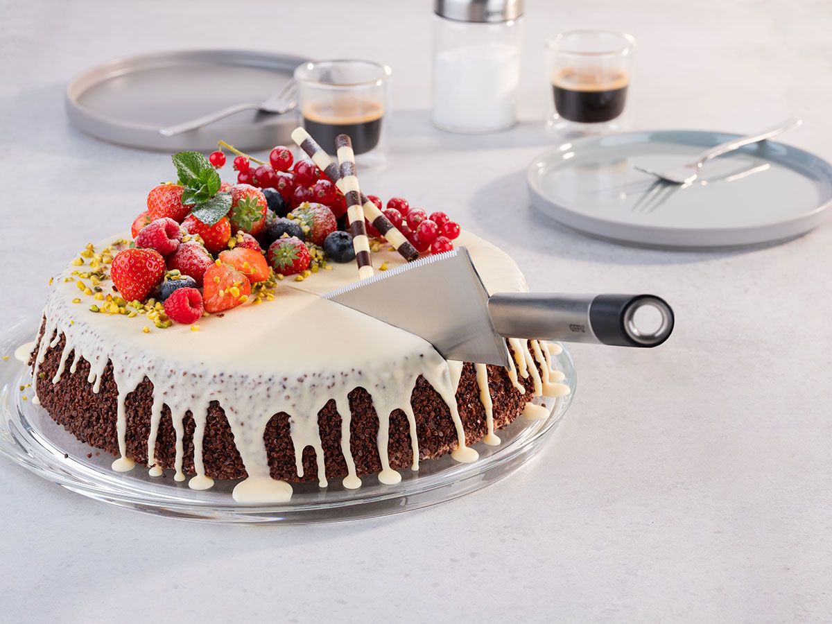 Thanks to the razor-sharp stainless steel cake server with a serrated special blade, pieces of cake or pie as well as delicious...