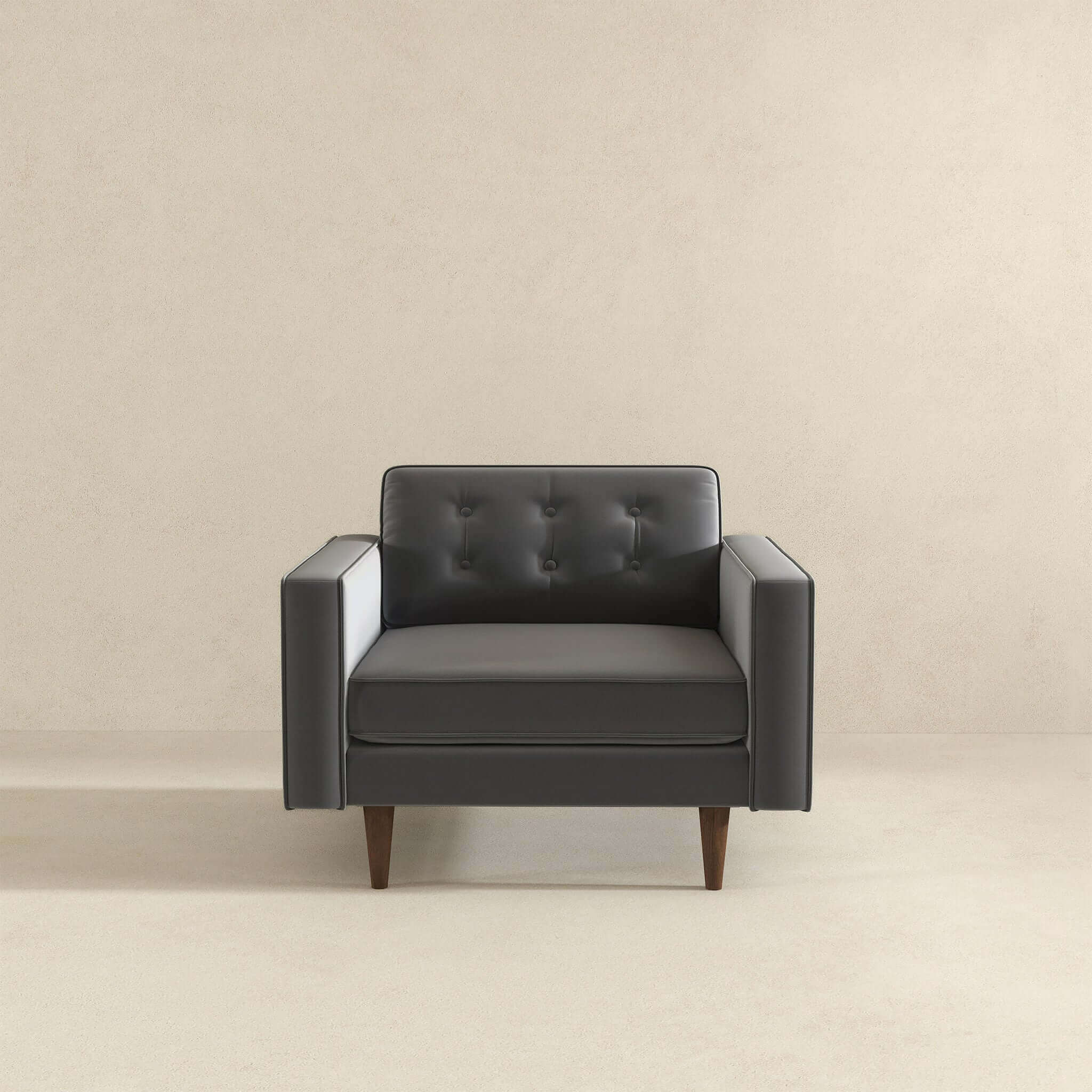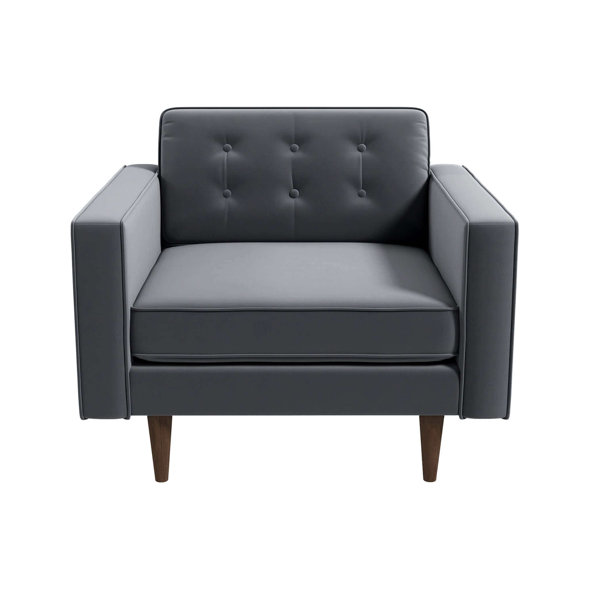 Make a statement in your living room with this mid-century-inspired Casey Mid-Century Modern velvet lounge chair. Founded atop four walnut-finished legs, this piece is crafted with a solid wood frame and high-density foam padding, which lends comfort to the seat. It can be cleaned with a non-abrasive cleaning solution followed by a quick wipe with a microfiber cloth. The removable legs allow for simple delivery in tight spaces. Available in a variety of timeless colors, you're sure to find something that matches your decor.