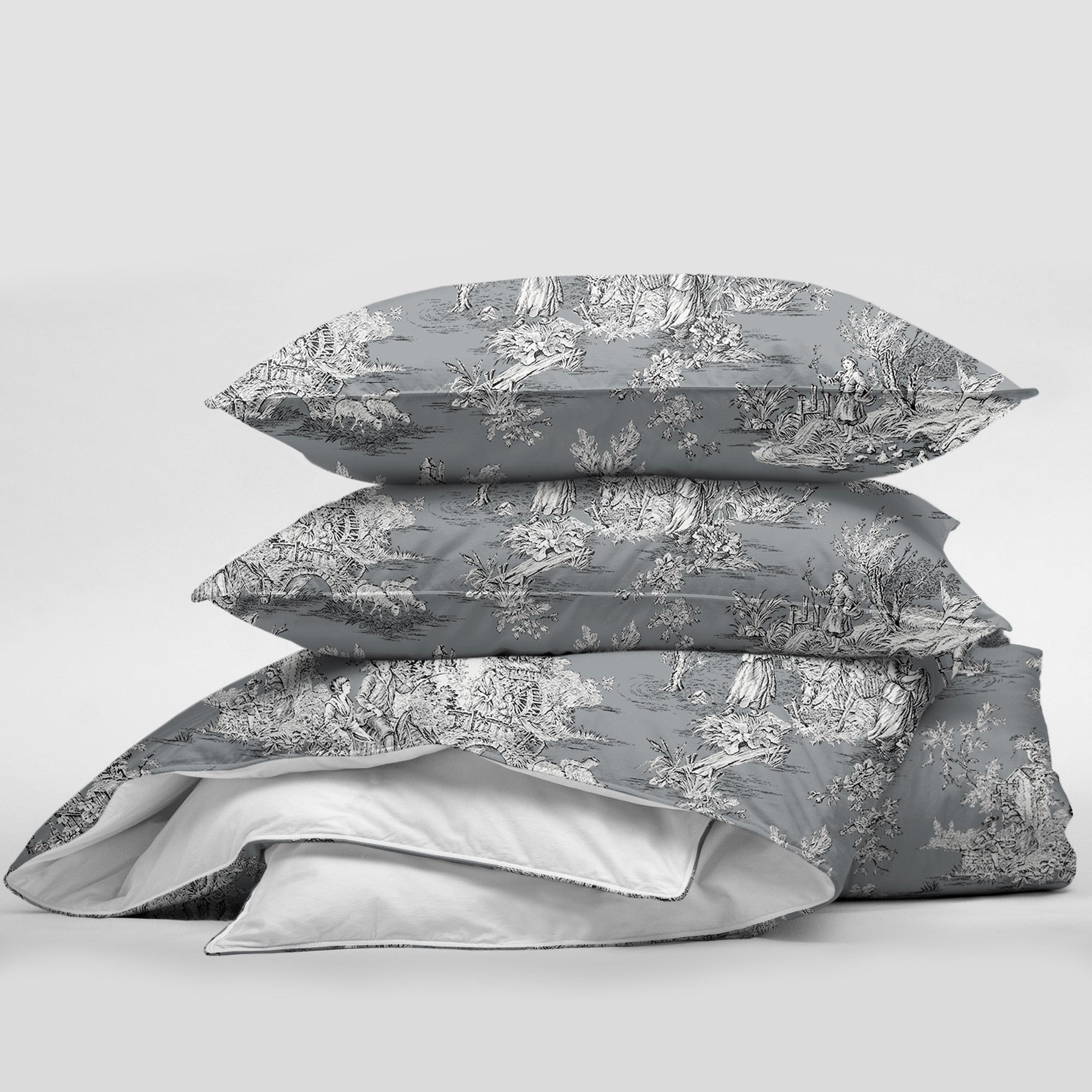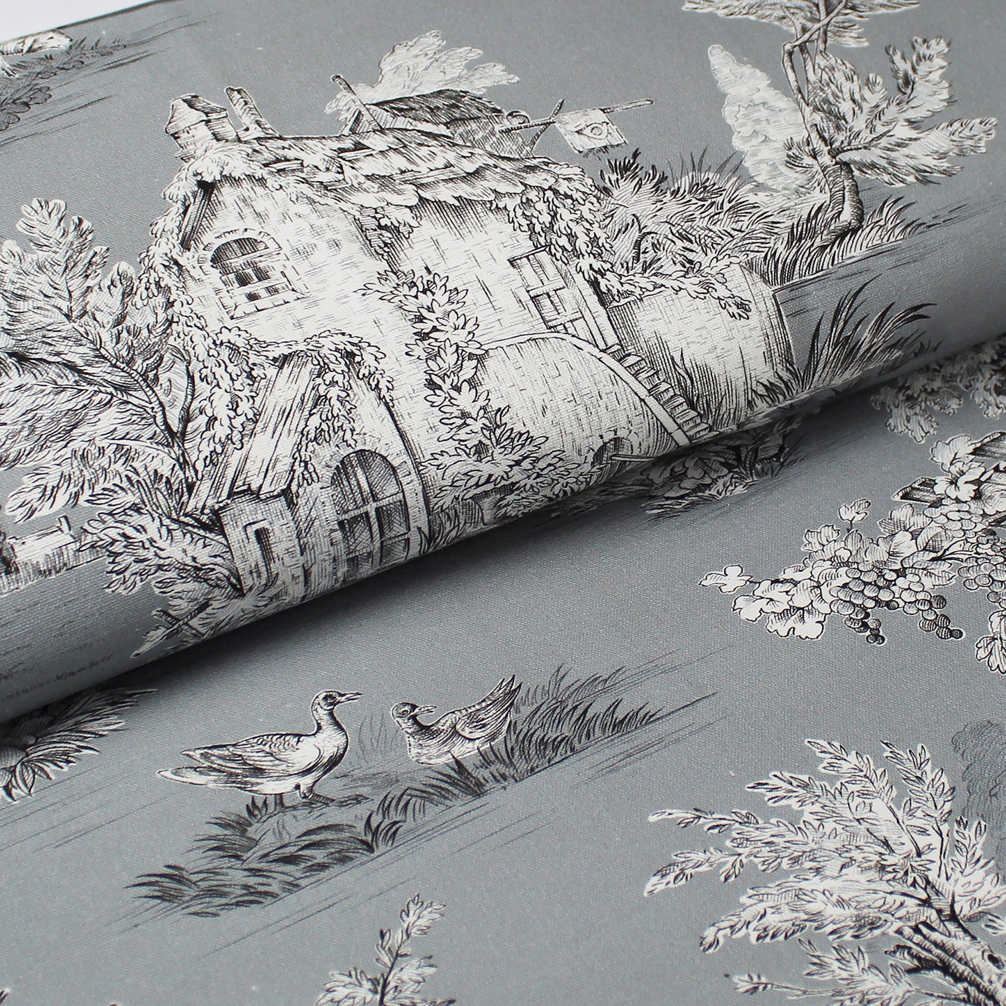Chateau is a timeless French-inspired toile design. Although toile has been around since the 18th century, the two-toned pastoral classic motif can hold its place in modern decor.