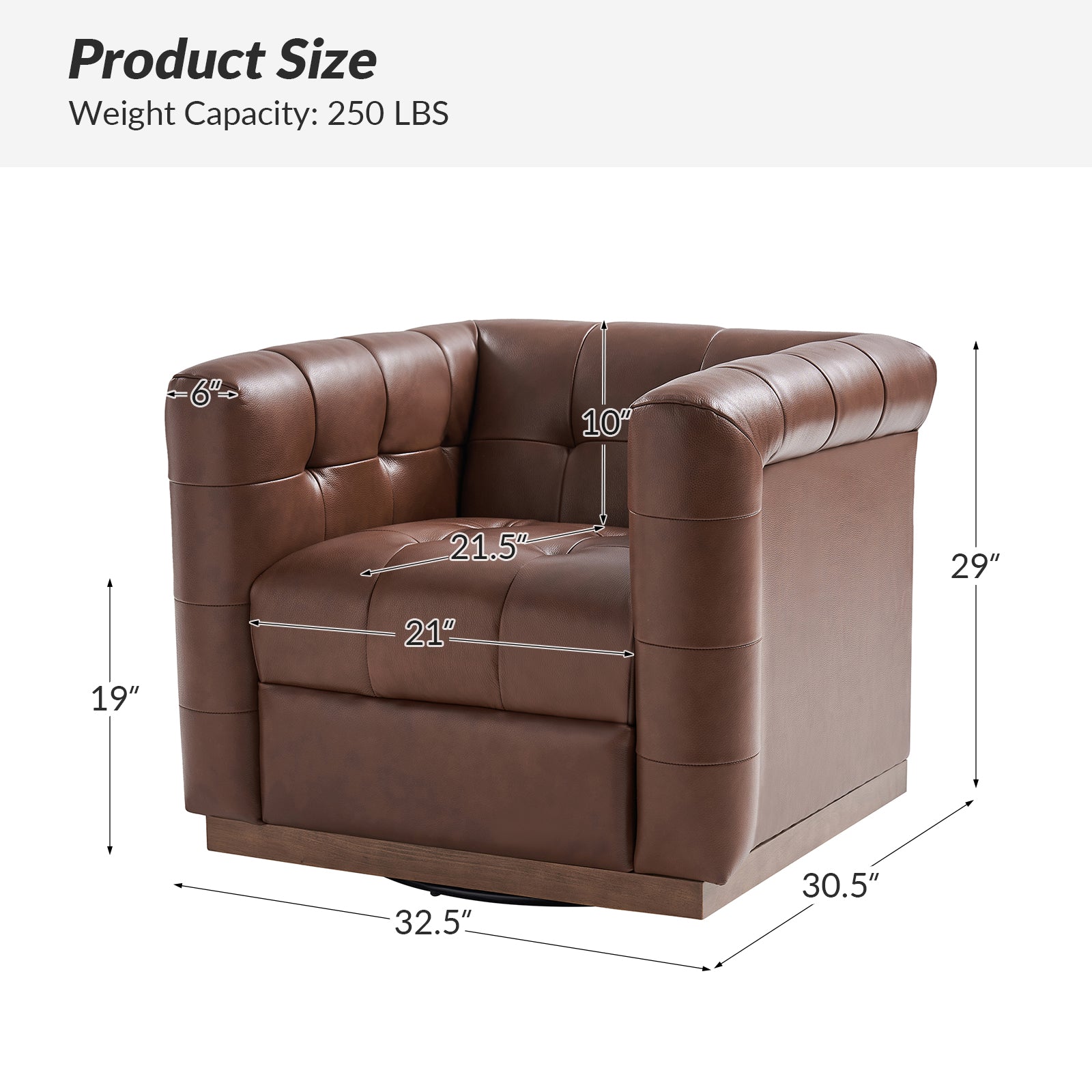 Arnold Genuine Leather Swivel Club Chair BROWN