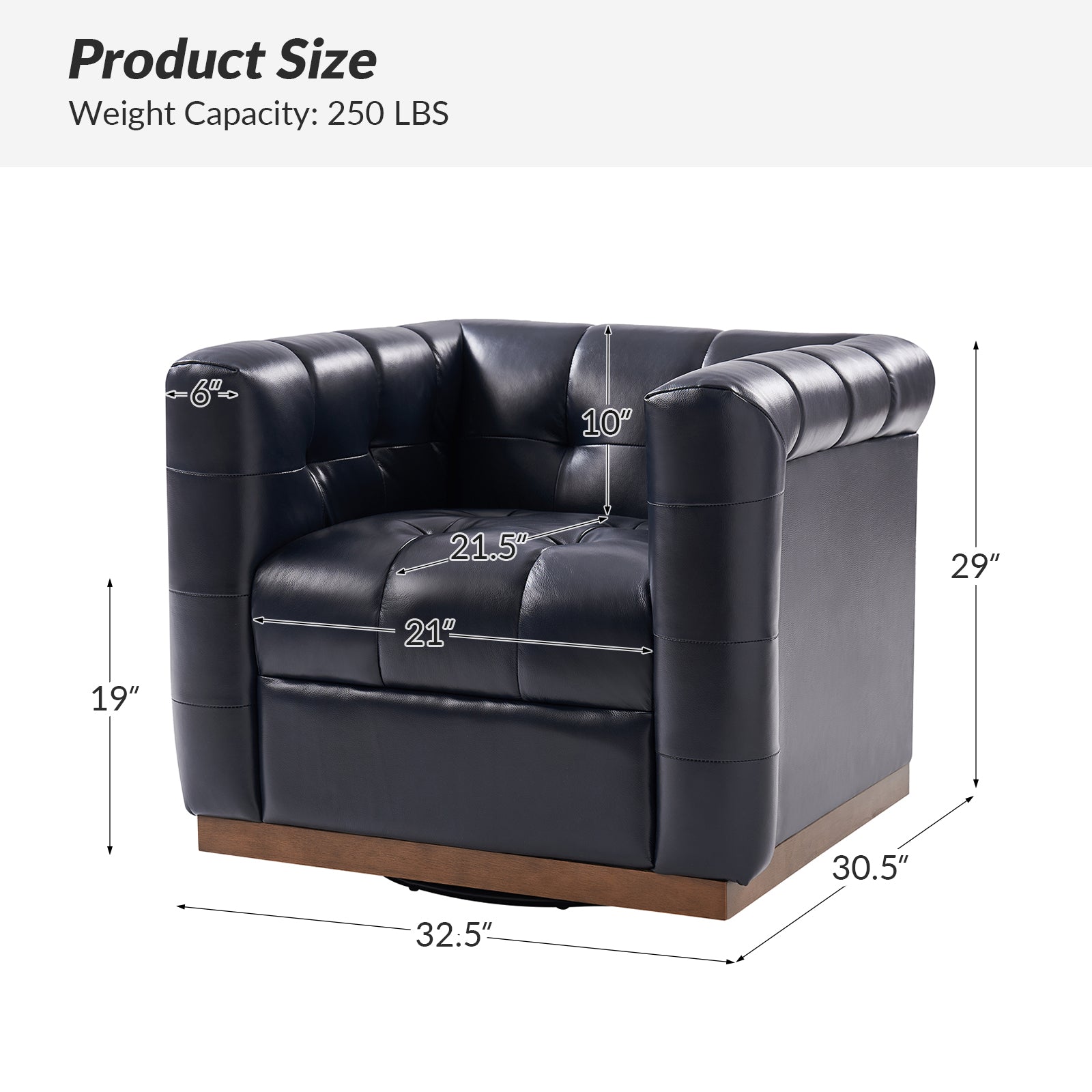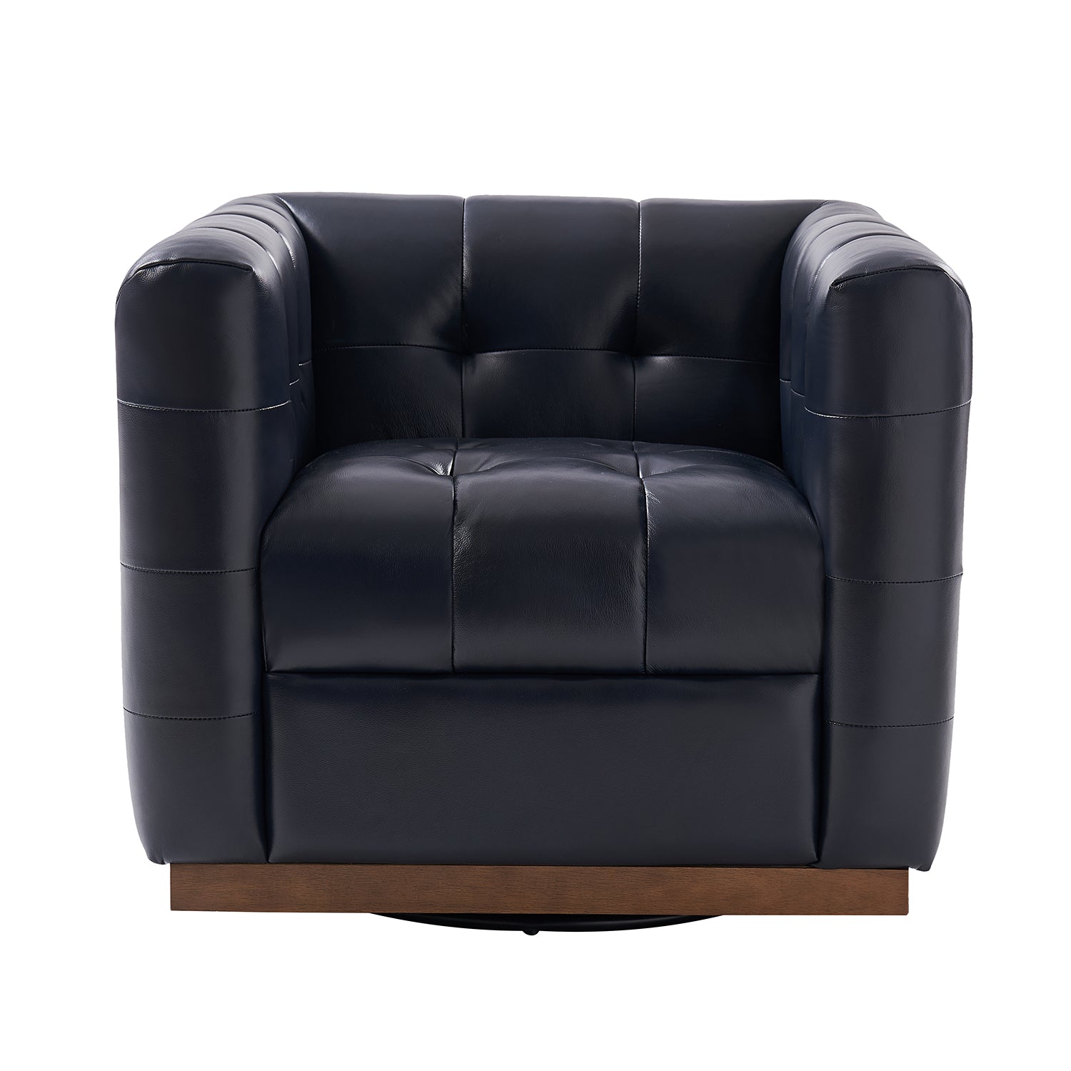 Arnold Genuine Leather Swivel Club Chair NAVY