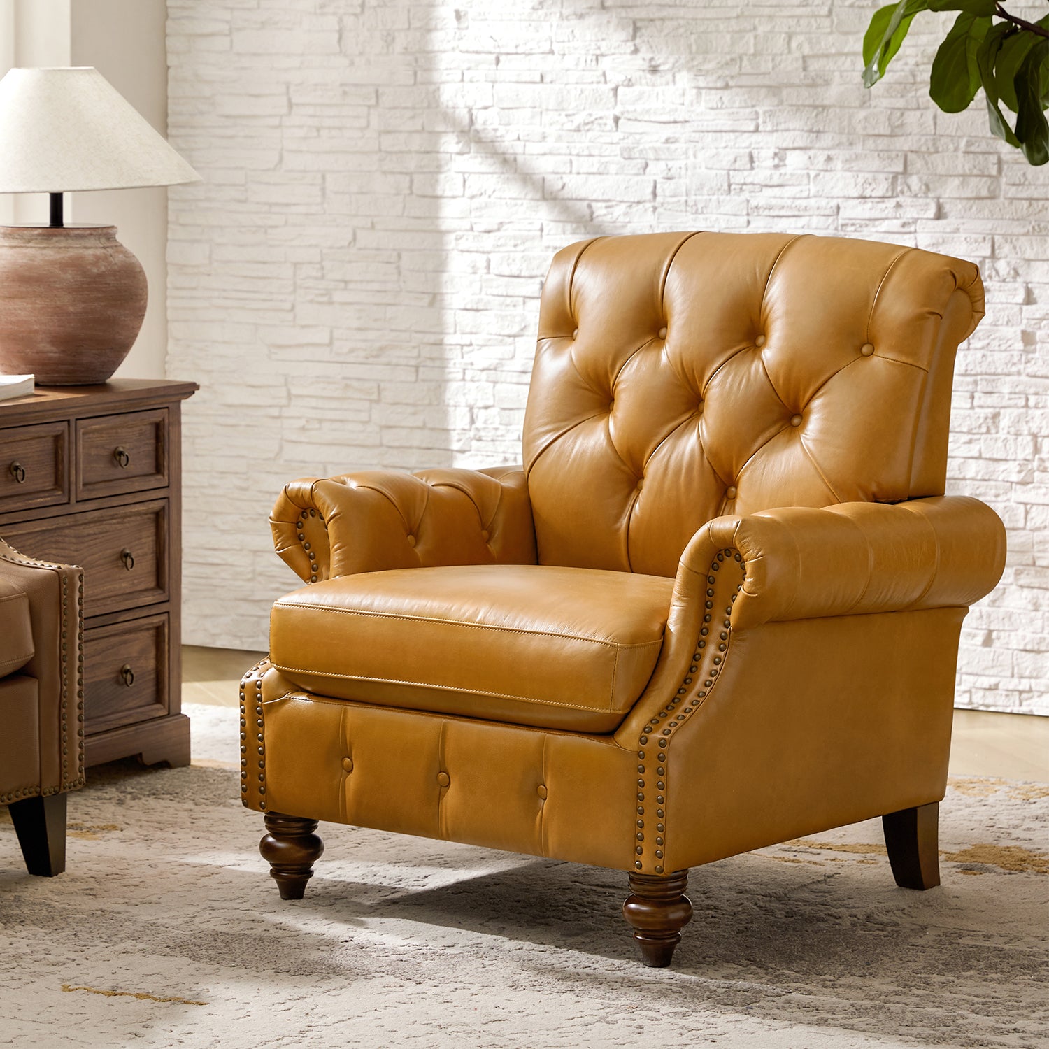 Introducing an exquisite armchair that blends timeless elegance with classic craftsmanship. Upholstered in breathable waxed genuine leather, this piece exudes a traditional...