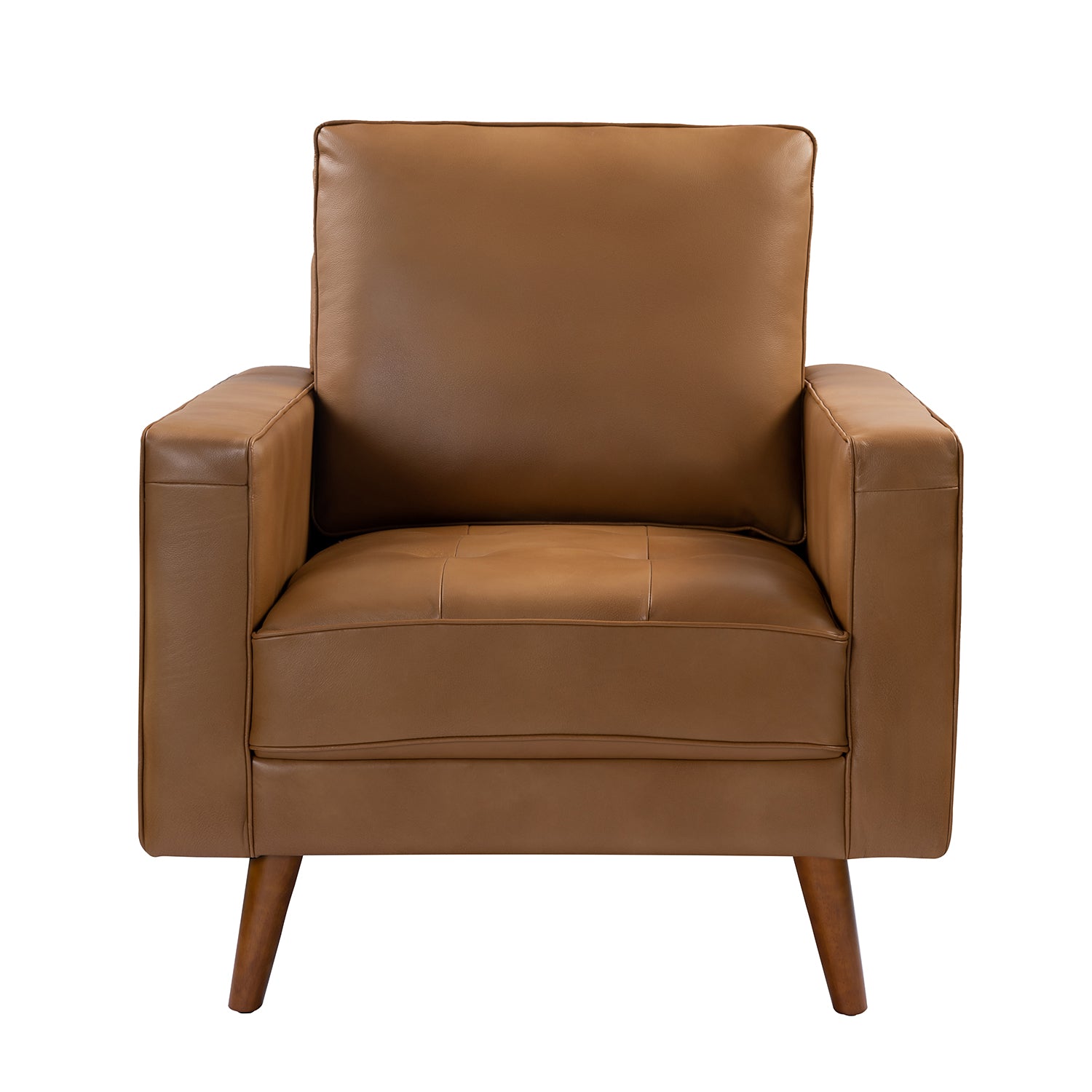 Embrace the embodiment of sophistication with this exquisite mid-century modern armchair. Meticulously crafted from genuine leather, its sumptuous surface boasts the added...