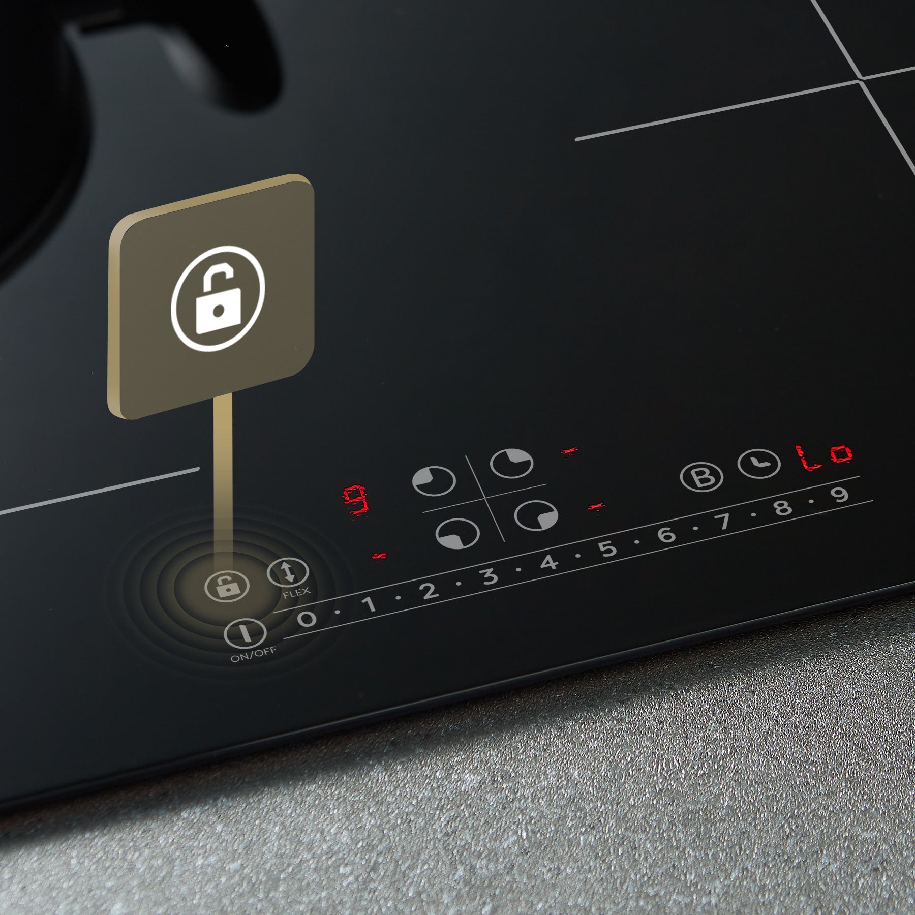 Child safety lock - The induction hob has a child safety lock function that allows you to lock the control panel to prevent any accidental switching while the induction hob is working.