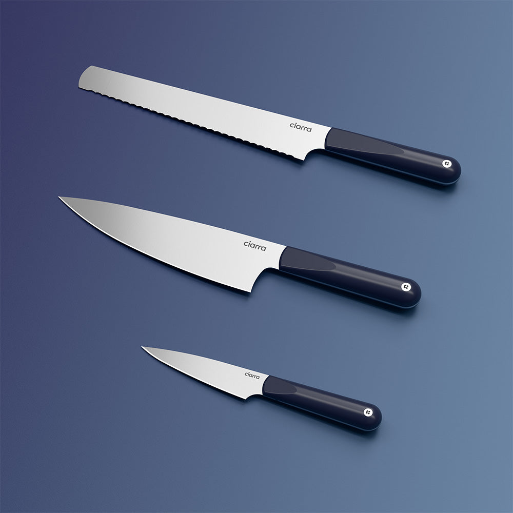 Ciarra Beyond Trio Knife Set with Gift Box, with Chef Knife, Serrated Bread Knife and Utility Knife, High Carbon Stainless Steel with Ergonomic Handle | Midnight Dream