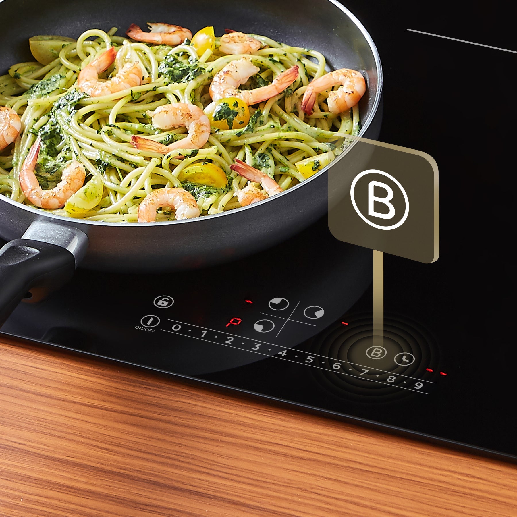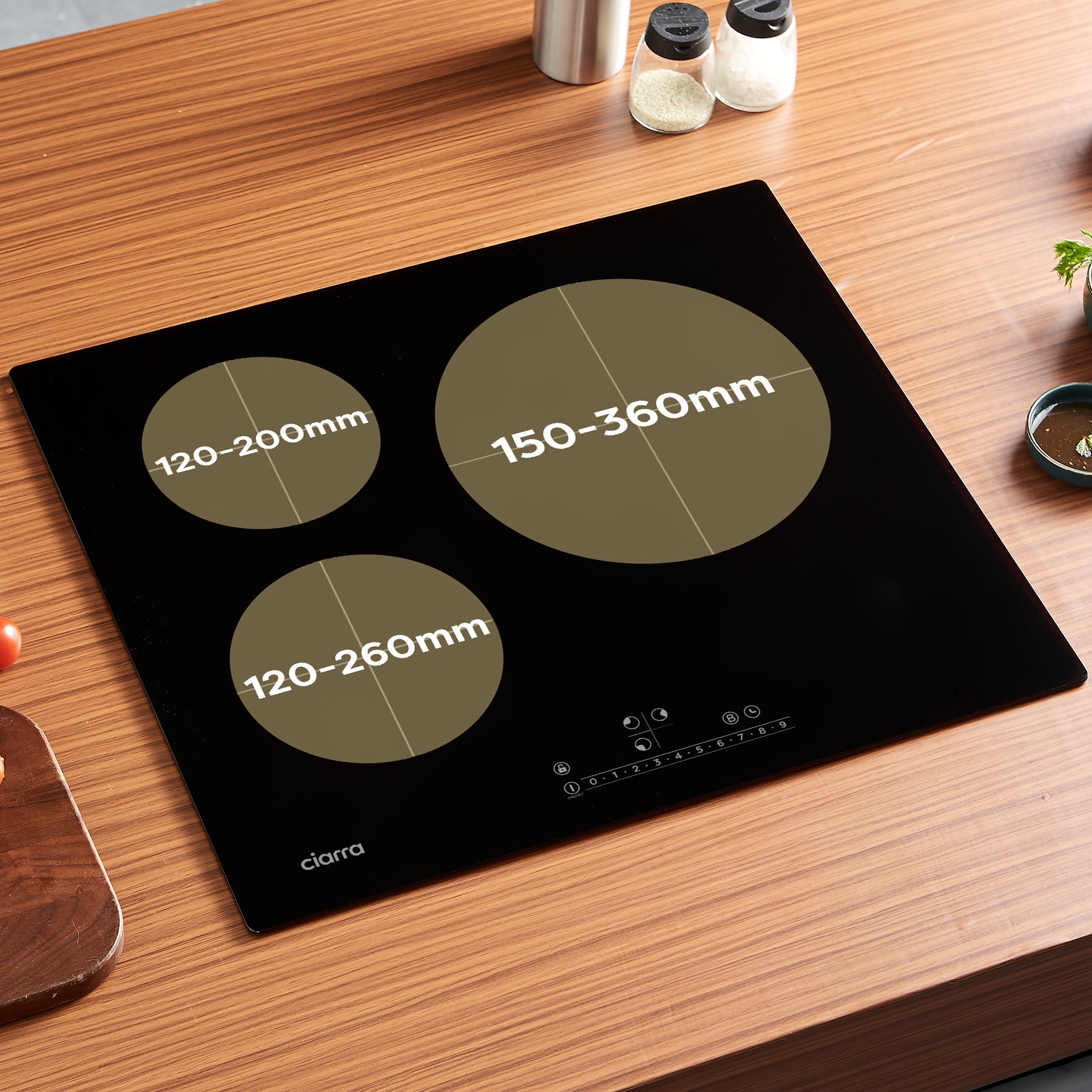 This induction hob has 3 powerful cooking zones with 9 different power levels. One of the cooking zones offers you a bigger serving size and stronger power to cook. It suits a variety of cooking methods from making scrambled eggs for breakfast to some yummy steaks for family dinner.