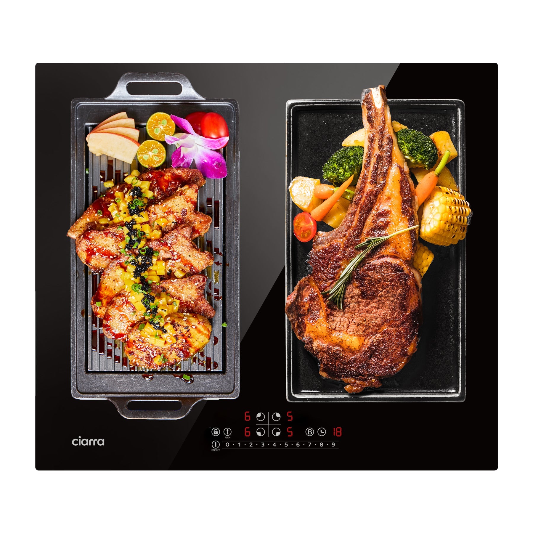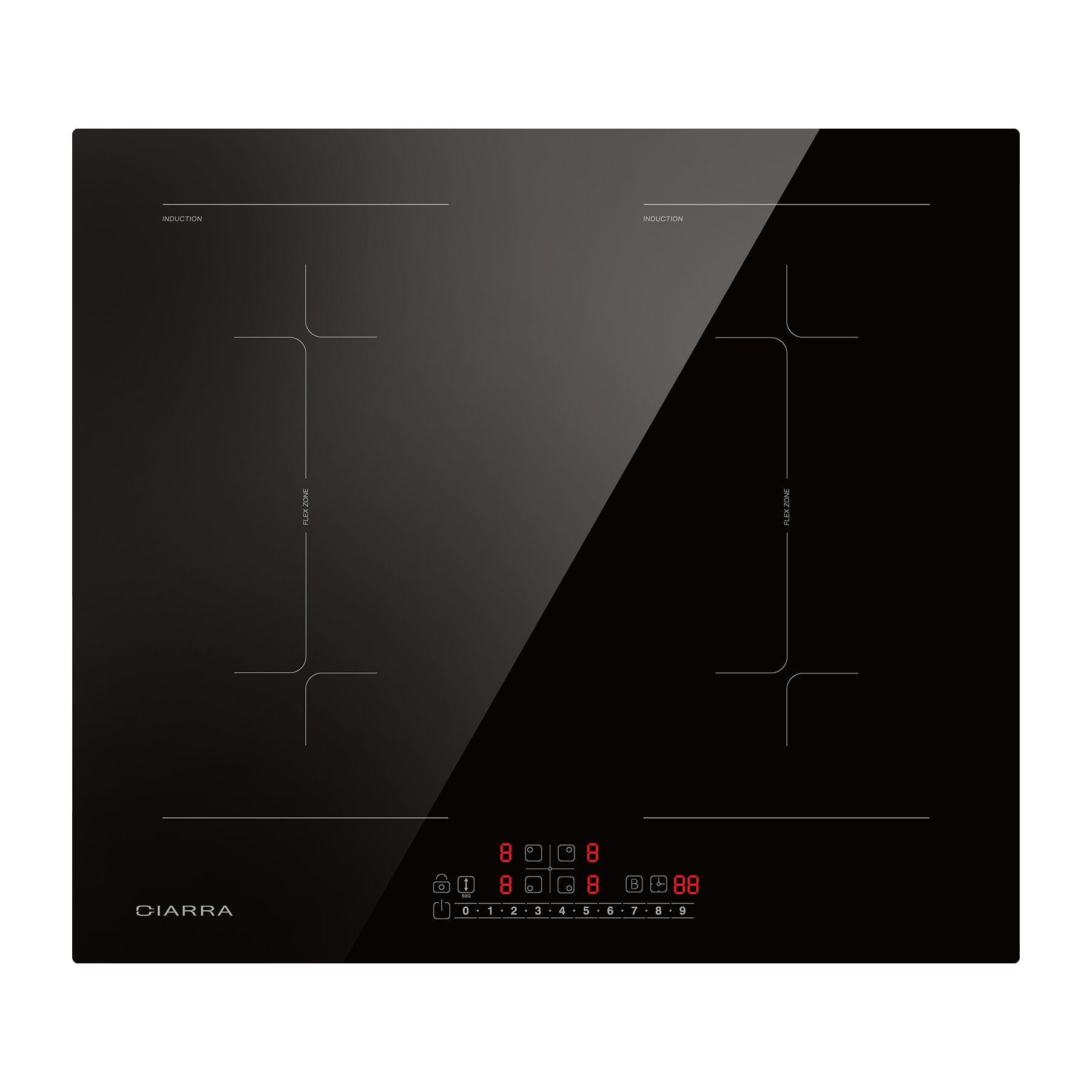 The two cooking zones on the same side can be combined to work as one big flex zone; so you can fit larger or longer cookwares. The cookware can be moved freely within the flex zone area, the induction hob will automatically detect the cookwares, and start working in the previous setting. The flex zone gives your more flexibility when cooking and frying at a simple touch.