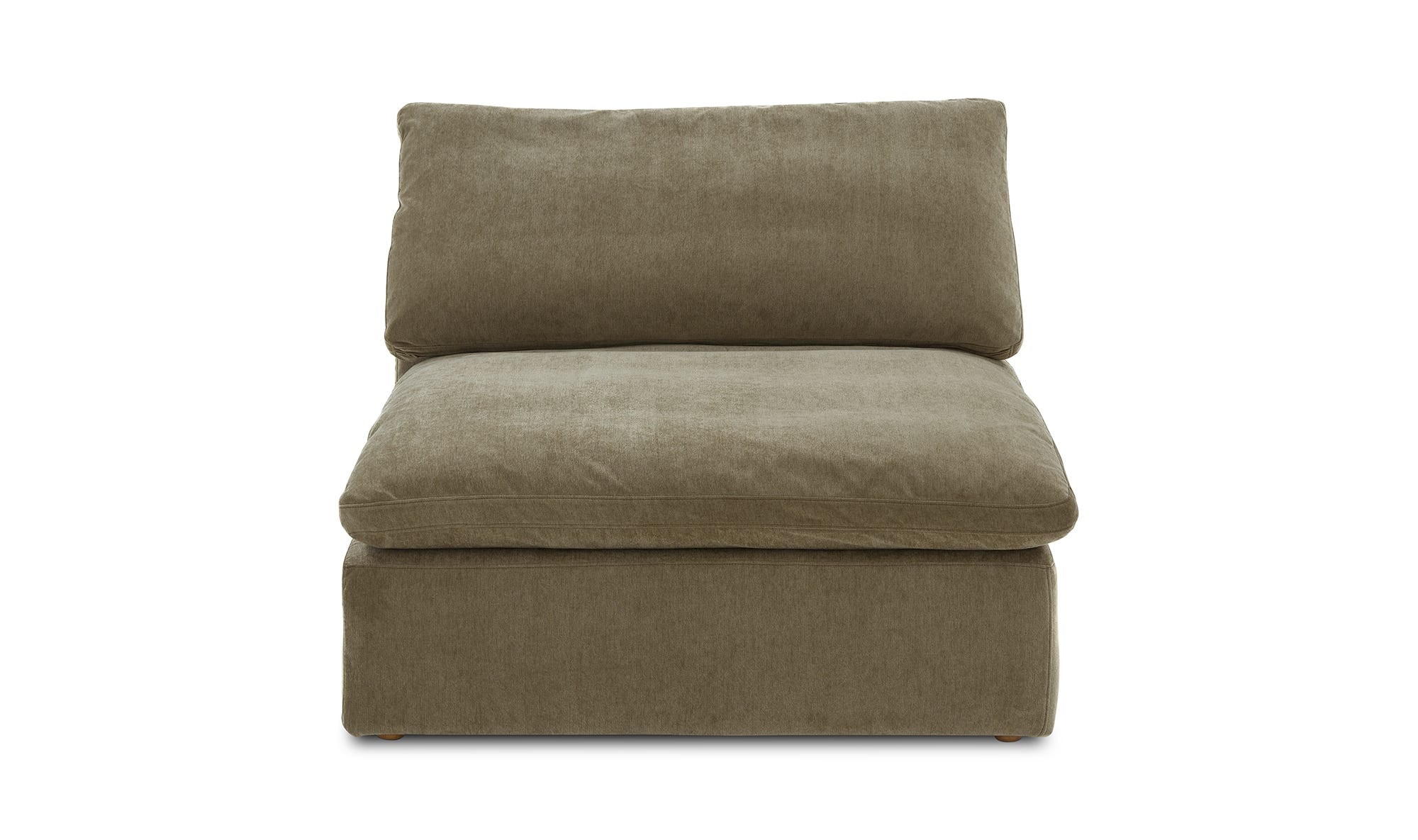 The Clay slipper chair is upholstered in fabric treated with JLA Resist™ performance treatment, which is moisture-repellent, stain resistant and offers barrier protection. Ultra-comfy, its cushions are filled generously with a feather and fiber blend and channeled and double-wrapped to maximize durability, with the top eight inches of cushioning filled with foam.