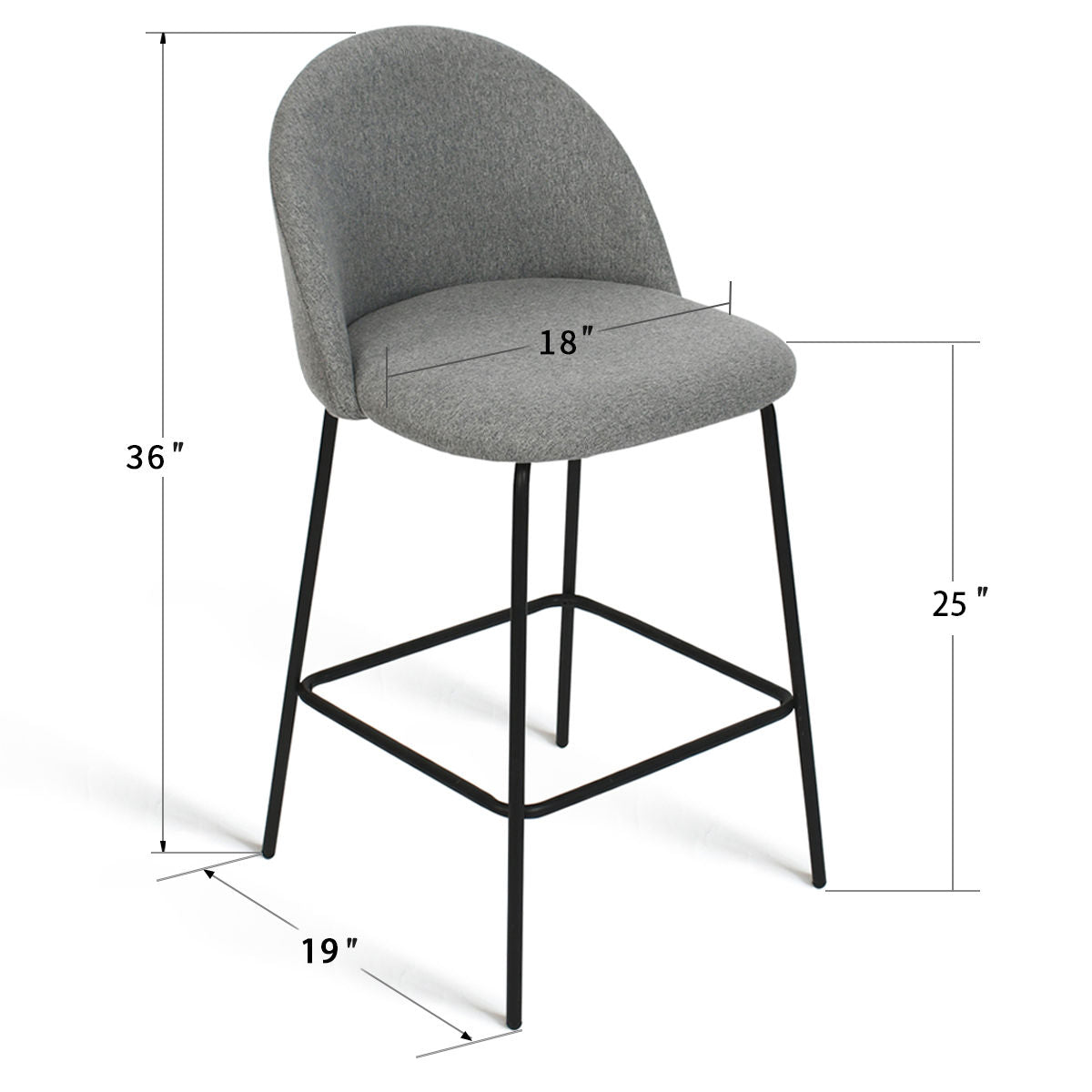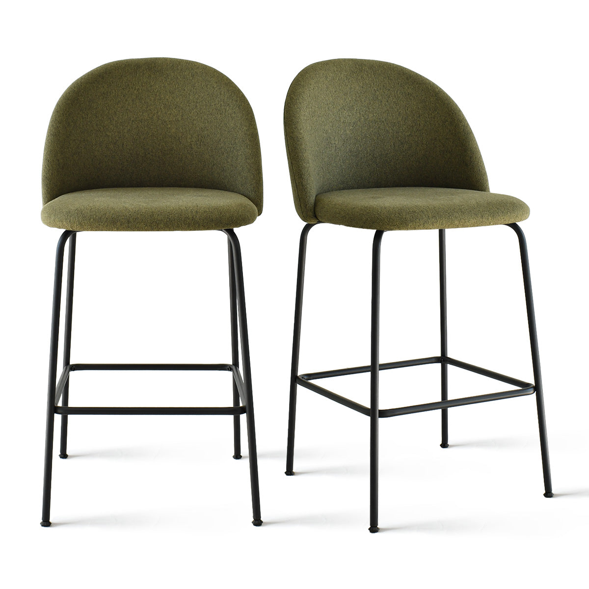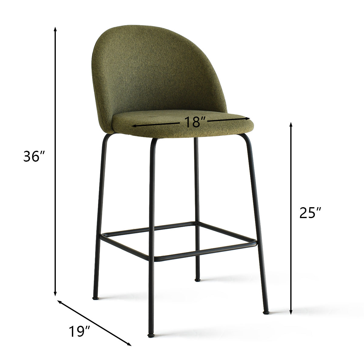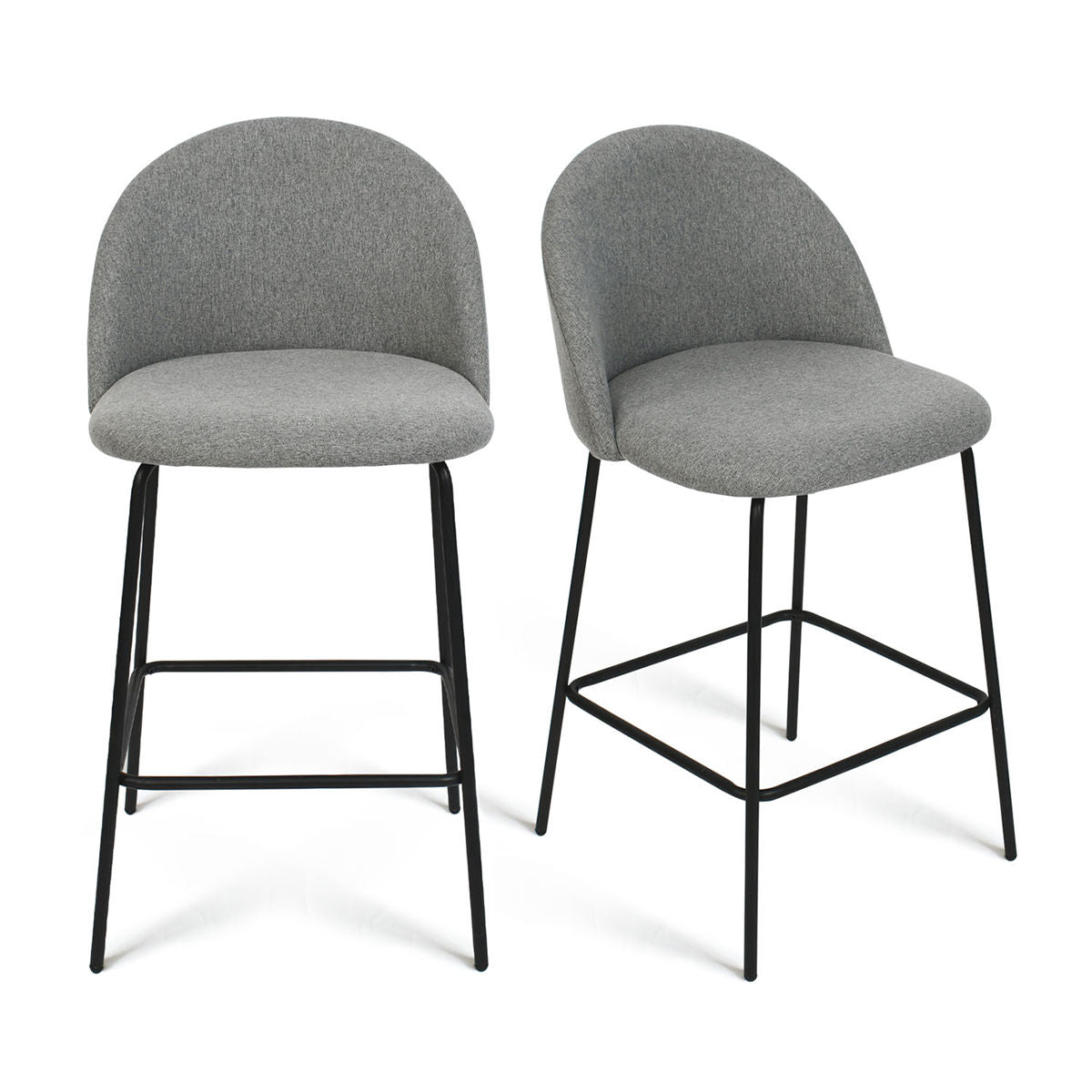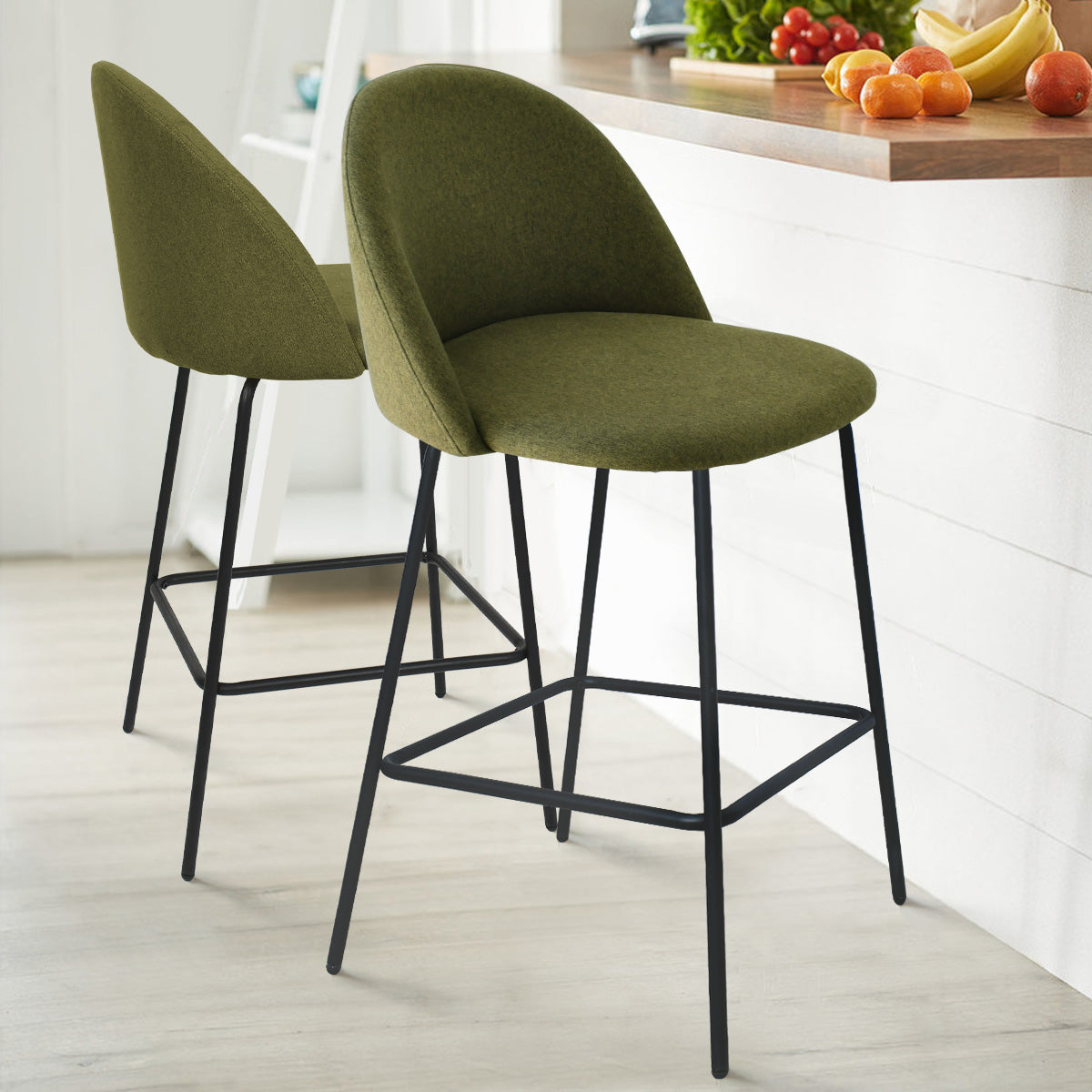 Bring a modern vibe to your kitchen or dining area with this pair of rounded, bucket-style stools. Contoured seats are foam-padded and upholstered in easy-care polyester. Slim black metal legs are braced with tubular stretchers for stability that also doubles as a footrest, while plastic glides help protect floors from scratches and scuffs. When dinner’s done—or the workday wraps—simply slide them under the counter or table to save space.