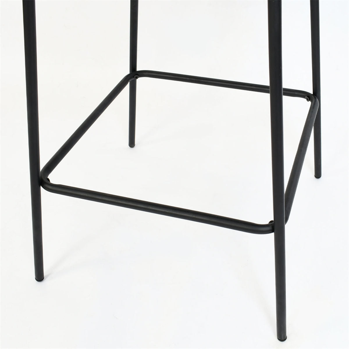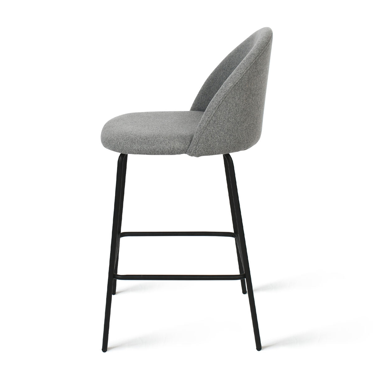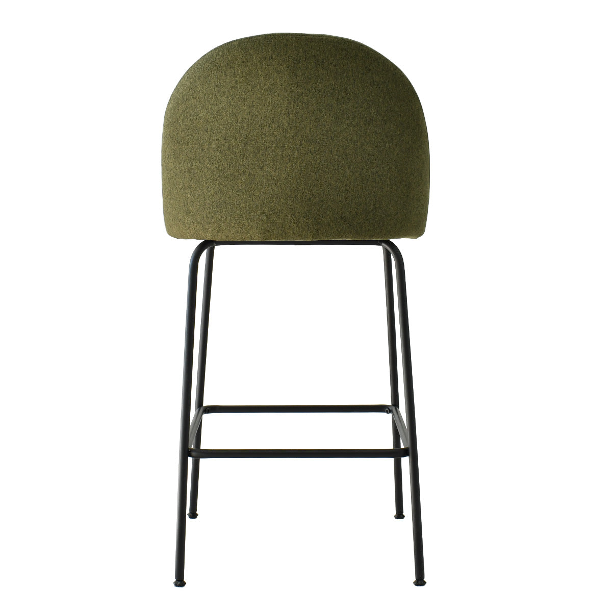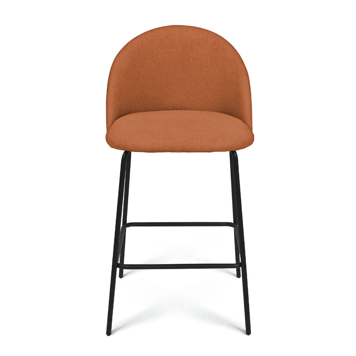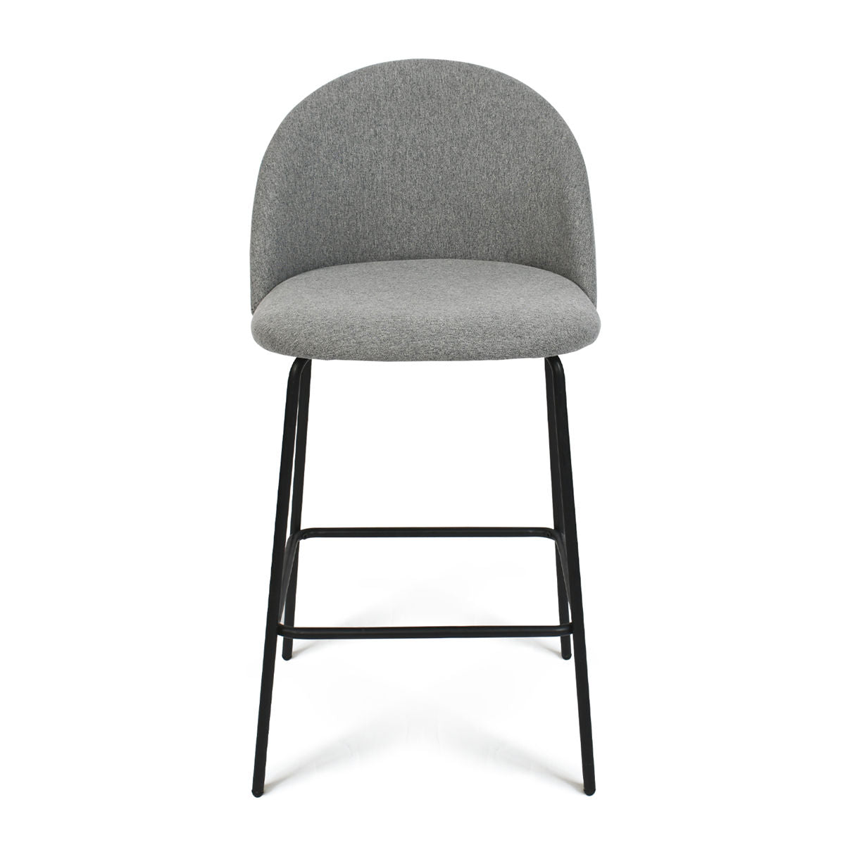 Bring a modern vibe to your kitchen or dining area with this pair of rounded, bucket-style stools. Contoured seats are foam-padded and upholstered in easy-care polyester. Slim black metal legs are braced with tubular stretchers for stability that also doubles as a footrest, while plastic glides help protect floors from scratches and scuffs. When dinner’s done—or the workday wraps—simply slide them under the counter or table to save space.