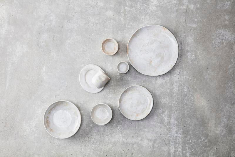Indulge in Collection No. 2, a captivating Cloud Terre collection inspired by Mediterranean architecture. Its brushed surface creates a layered aesthetic in two shades of white, revealing terra cotta tones beneath. Elevate your dining experience with high-performance pieces that embrace sophistication and durability to make every meal a feast to remember.