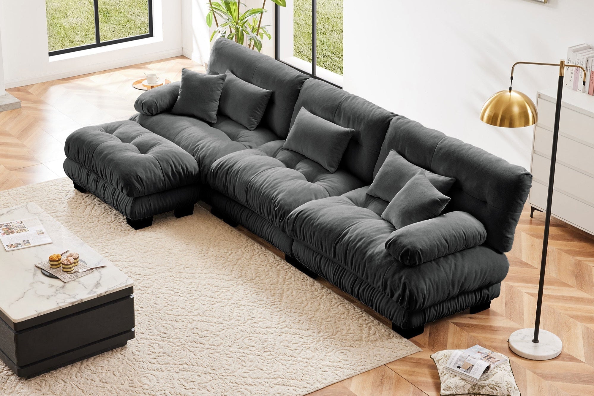 Packaging Size | Box 1 – Qty: 1: 36.7" × 21.66" × 7.09" Box 2 – Qty: 1: 36.7" × 29.6" × 9.85" Box 3 – Qty: 1: 44.5" × 29.6" × 9.85" Box 4 – Qty: 1: 44.5" × 29.6" × 9.85" |