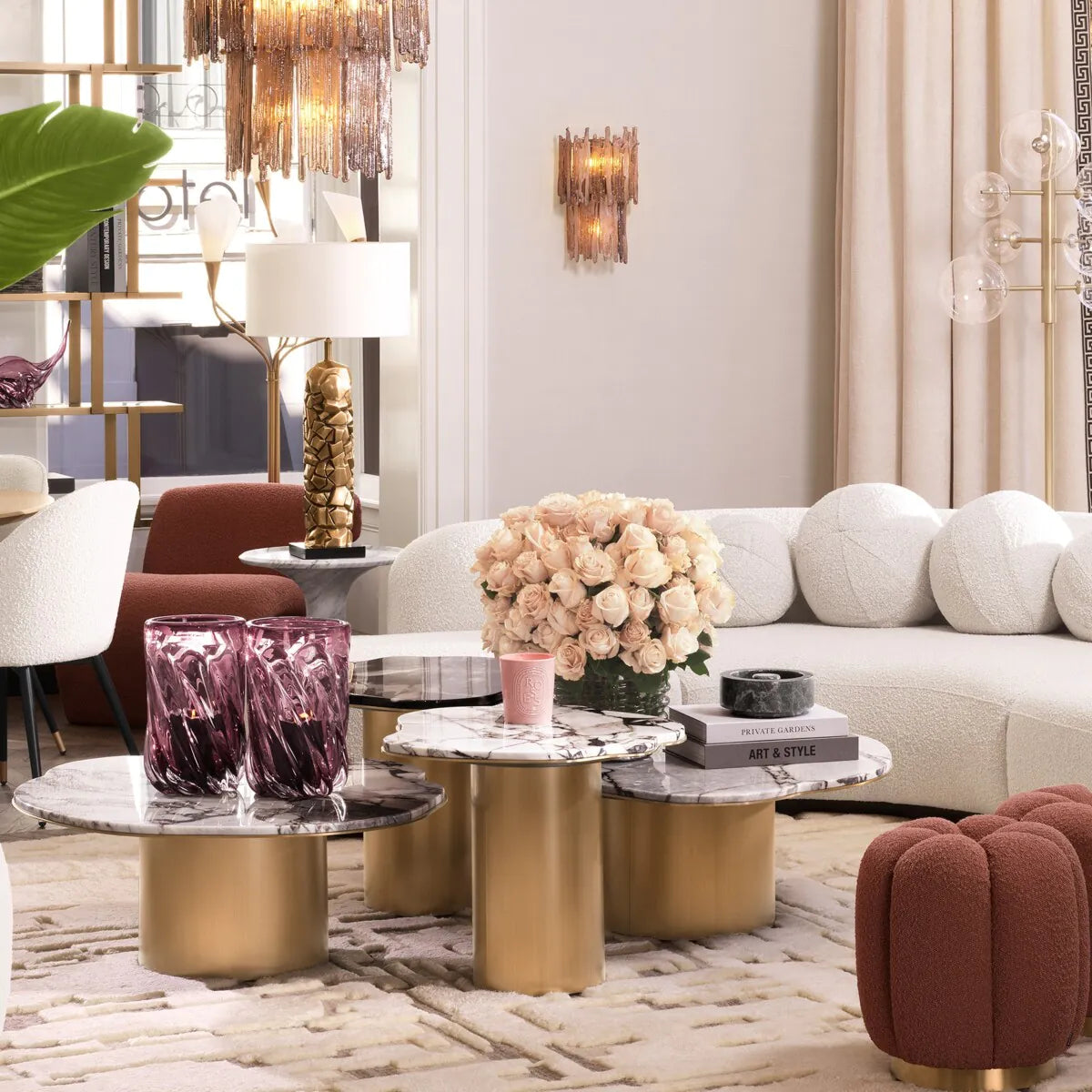Indulge in the opulent allure of the Shapiro Coffee Table. This masterpiece boasts a marble top that exudes elegance and natural beauty....