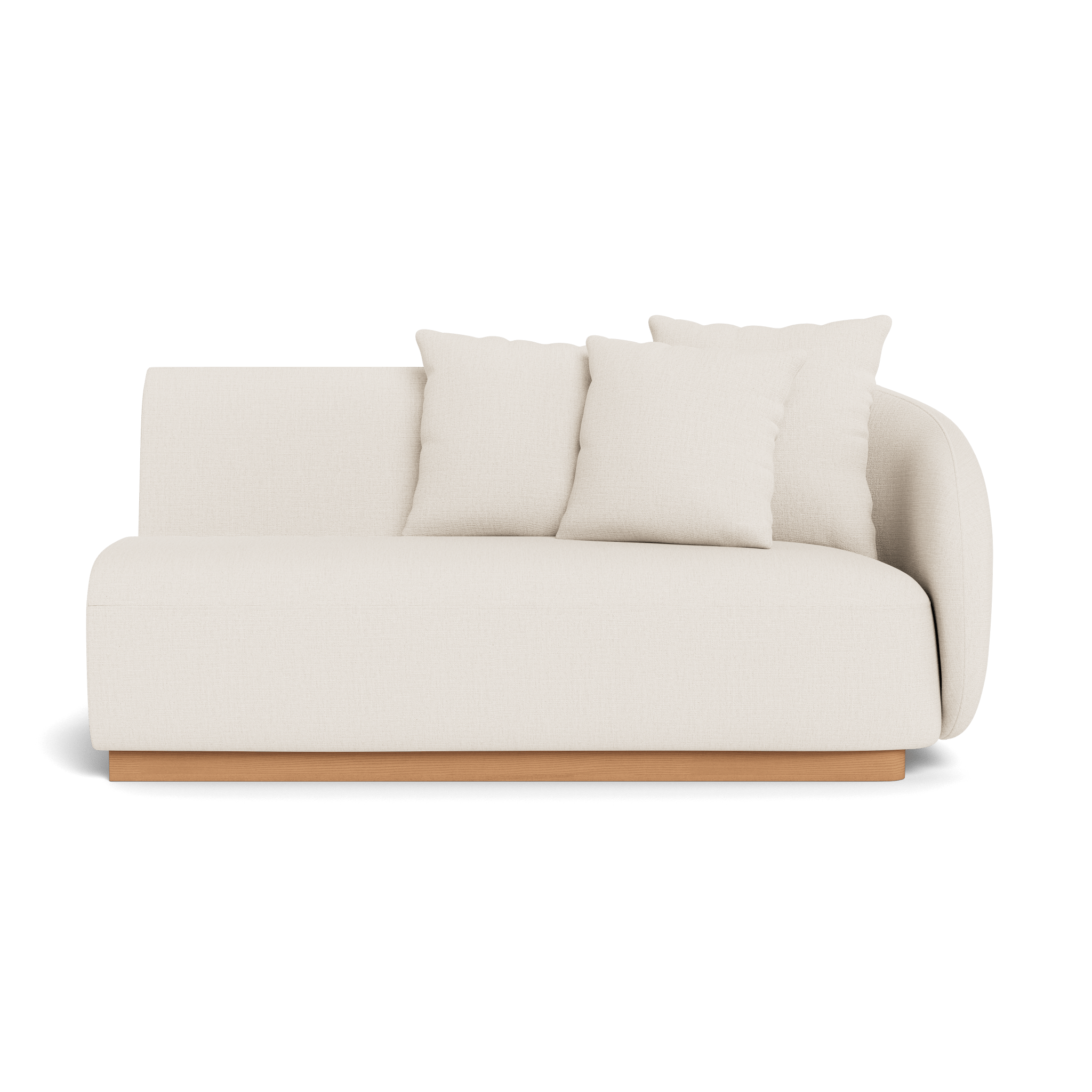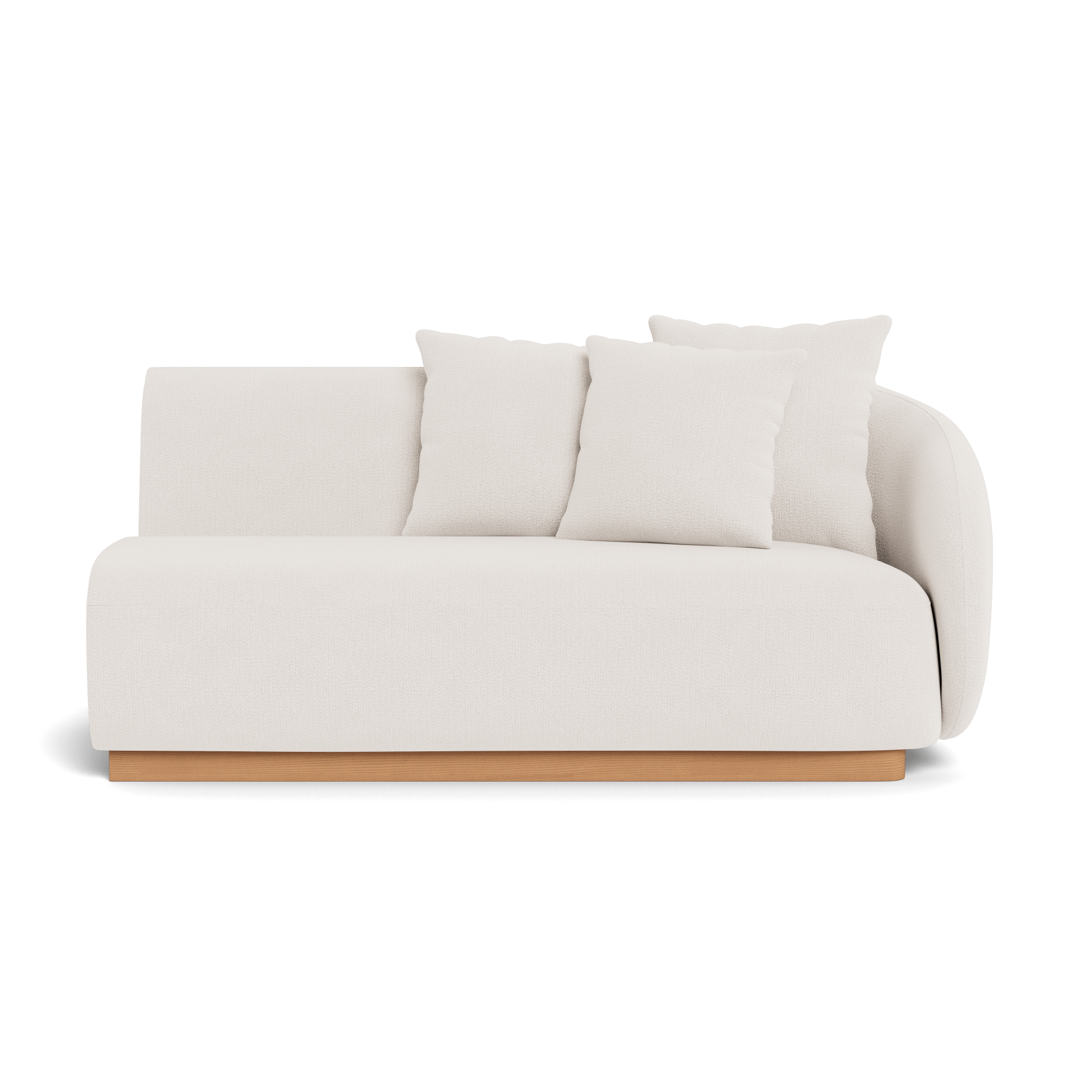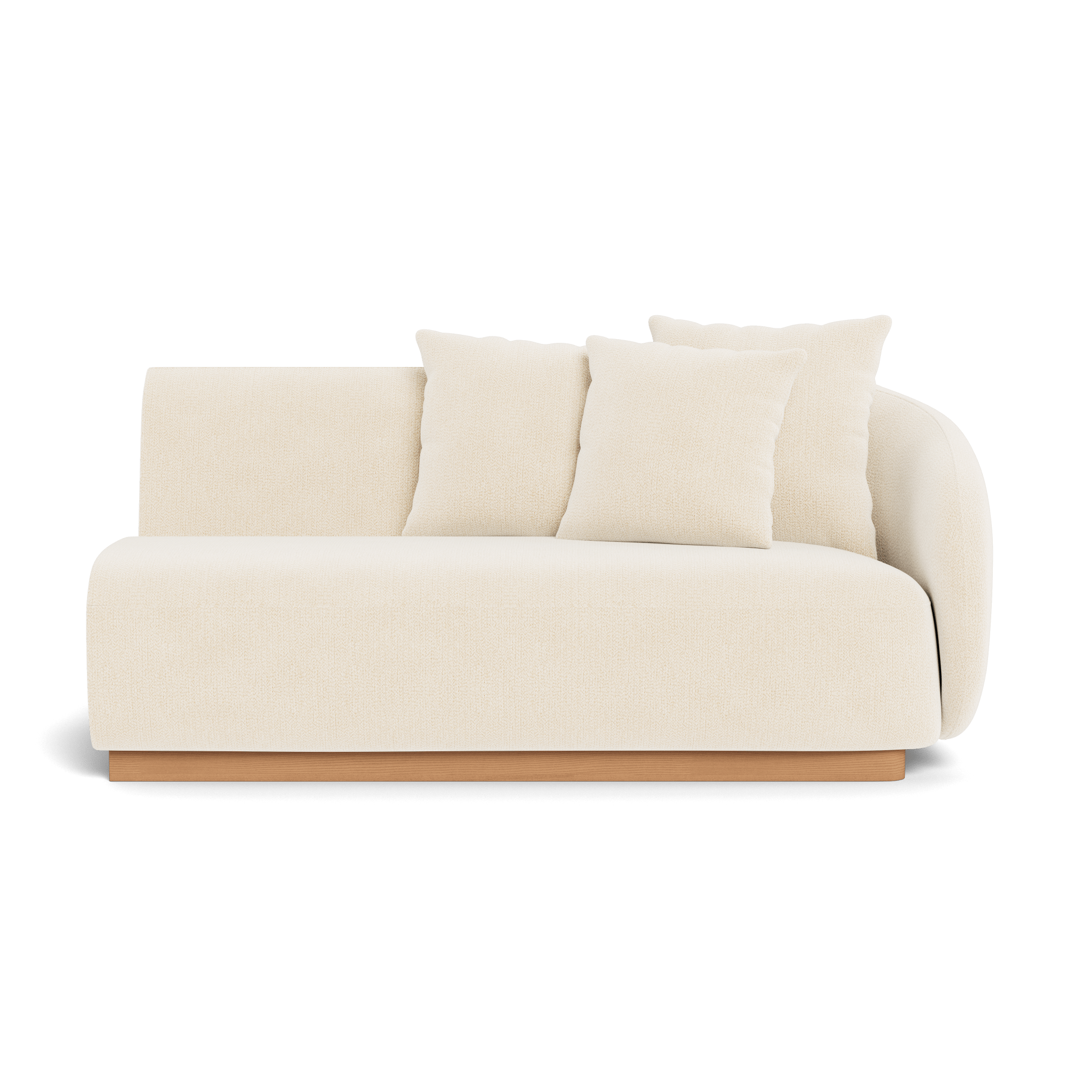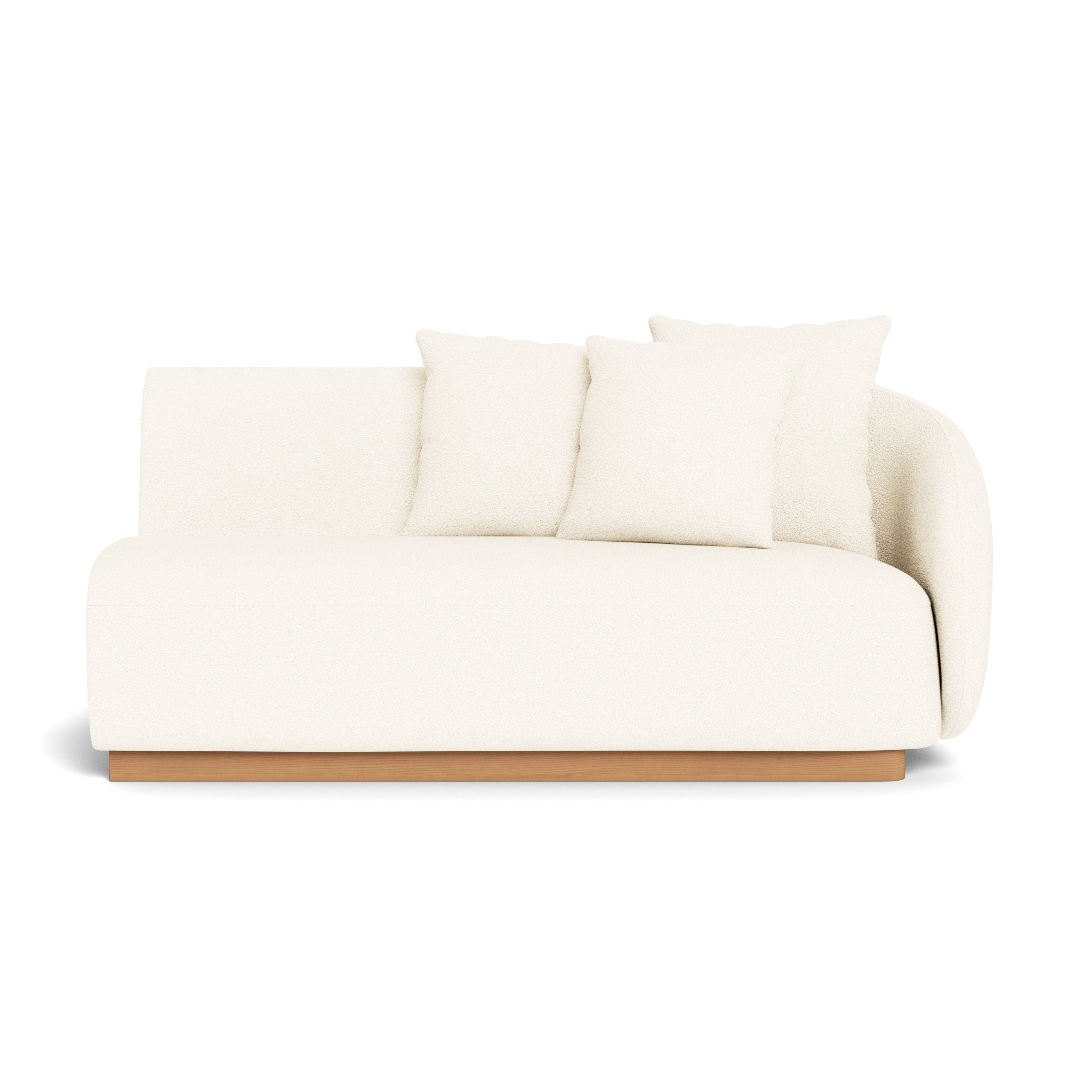 A nod to the iconic Italian elegance of Lake Como, our Como collection refines the traditions of fine Italian tailoring for a natural setting with organically–inspired signature curves and luxe outdoor upholstery. The barrel–backed Como 2 Seat 1 Arm Right channels the high design and comfort of an indoor piece — expertly upholstered in performance textiles in Riviera Ivory over quick–dry foam on a solid teak base in Natural. Engineered for a supported sink–in feel with a tight seat, this outdoor sectional sofa is an elevated take on comfort. Pair it with an opposite Curved Chaise to create a true seating moment.