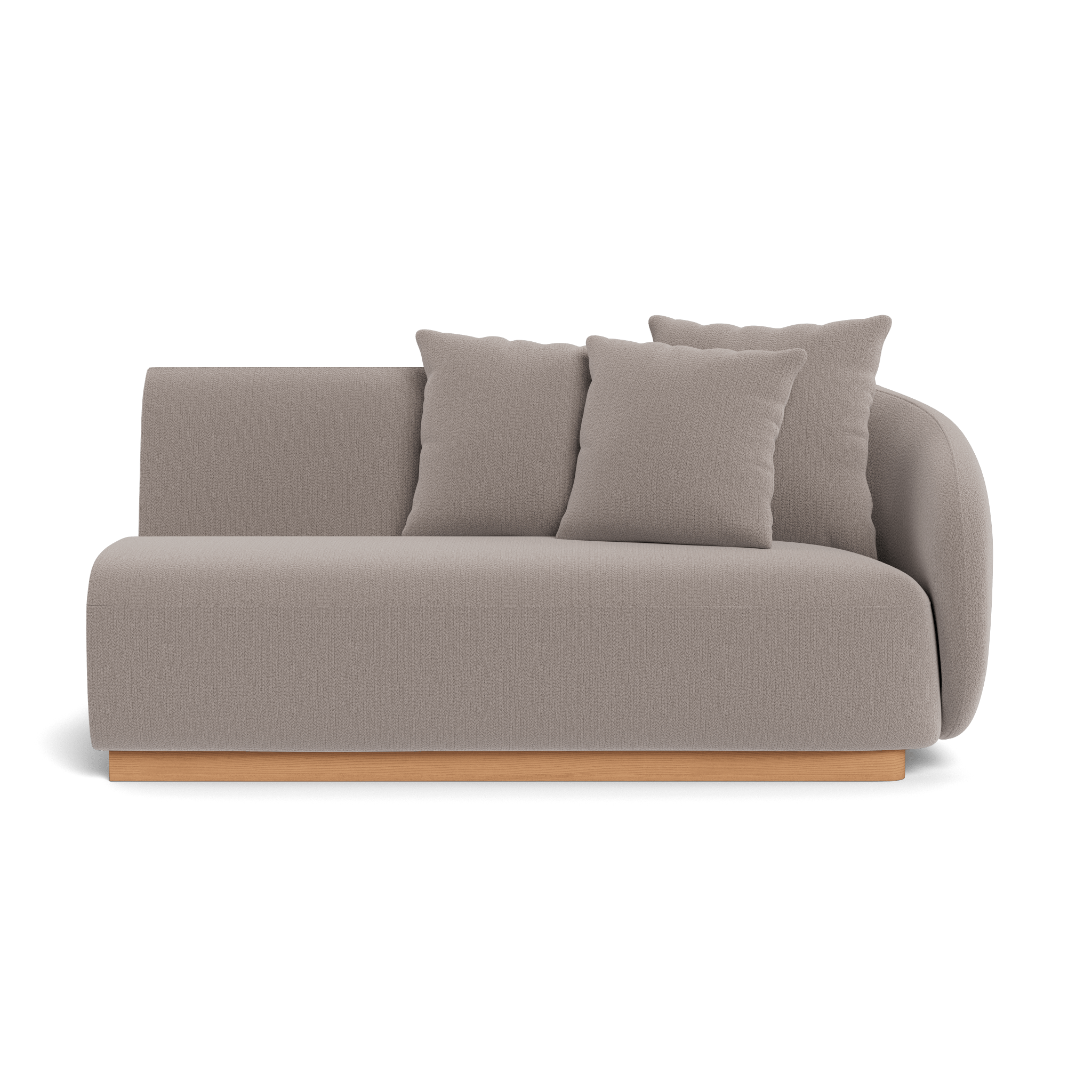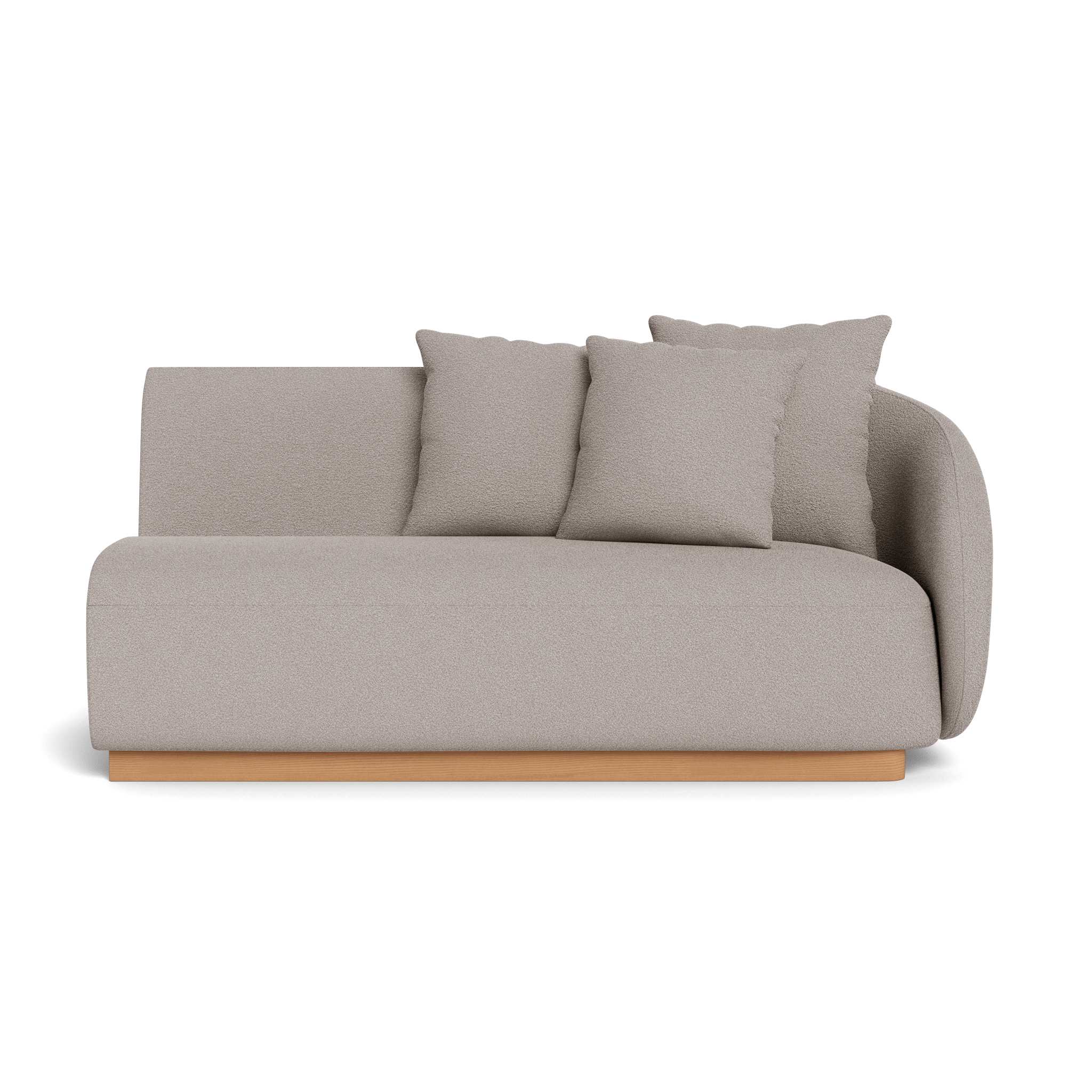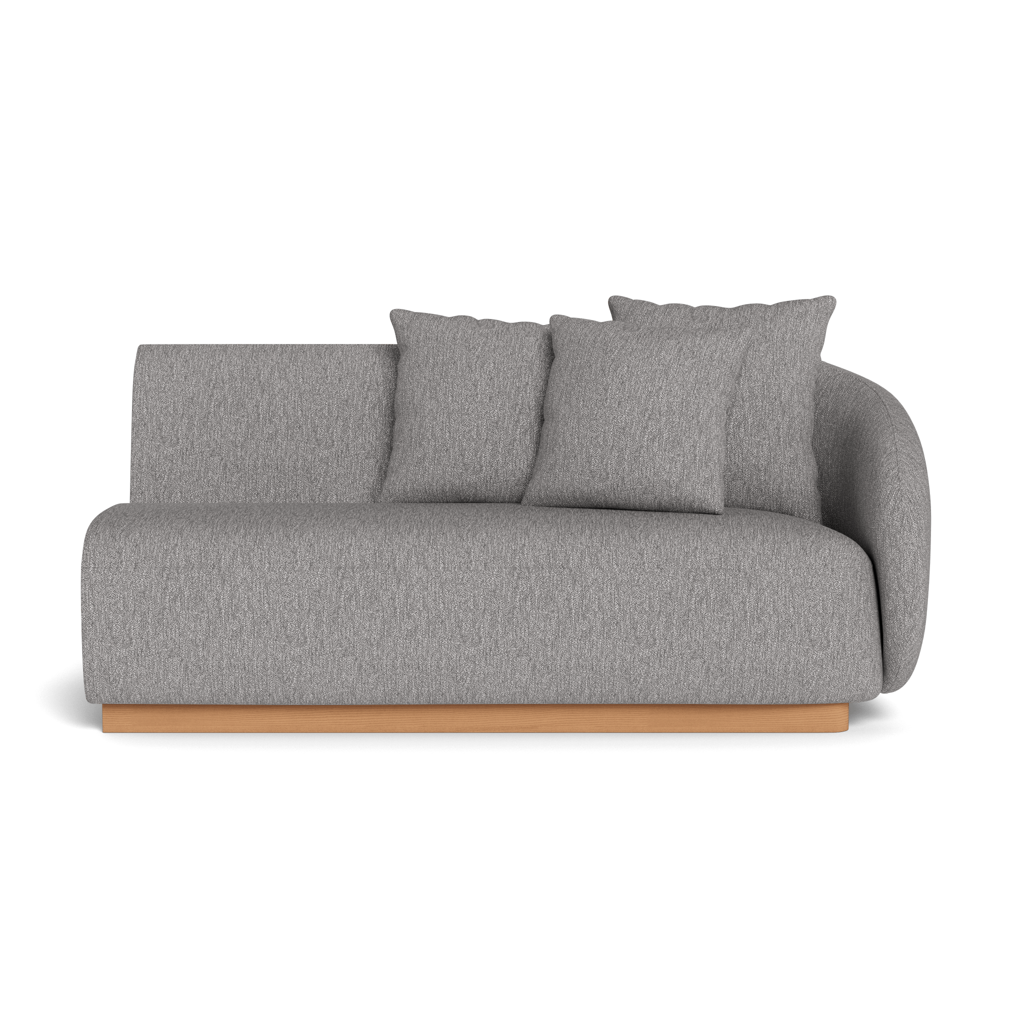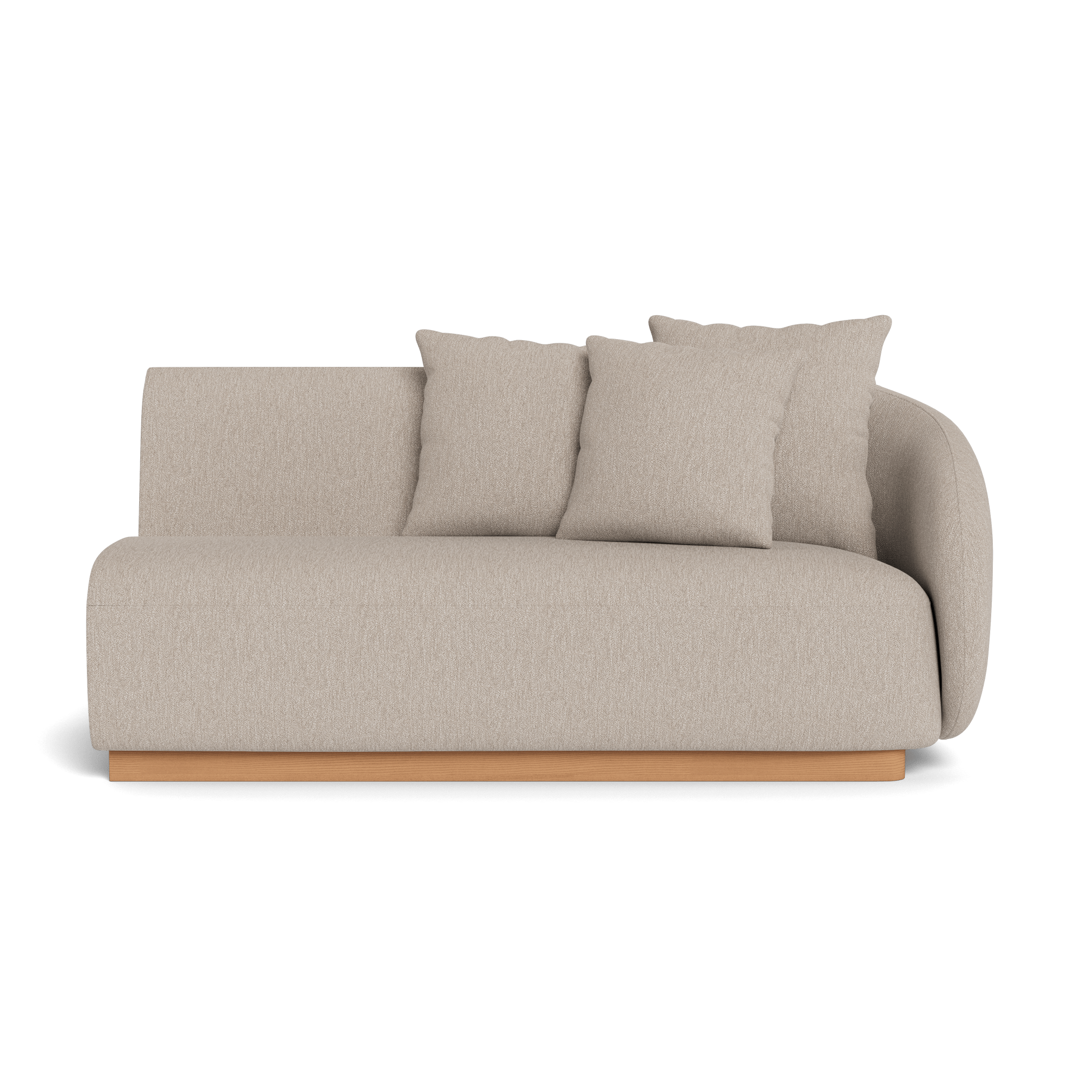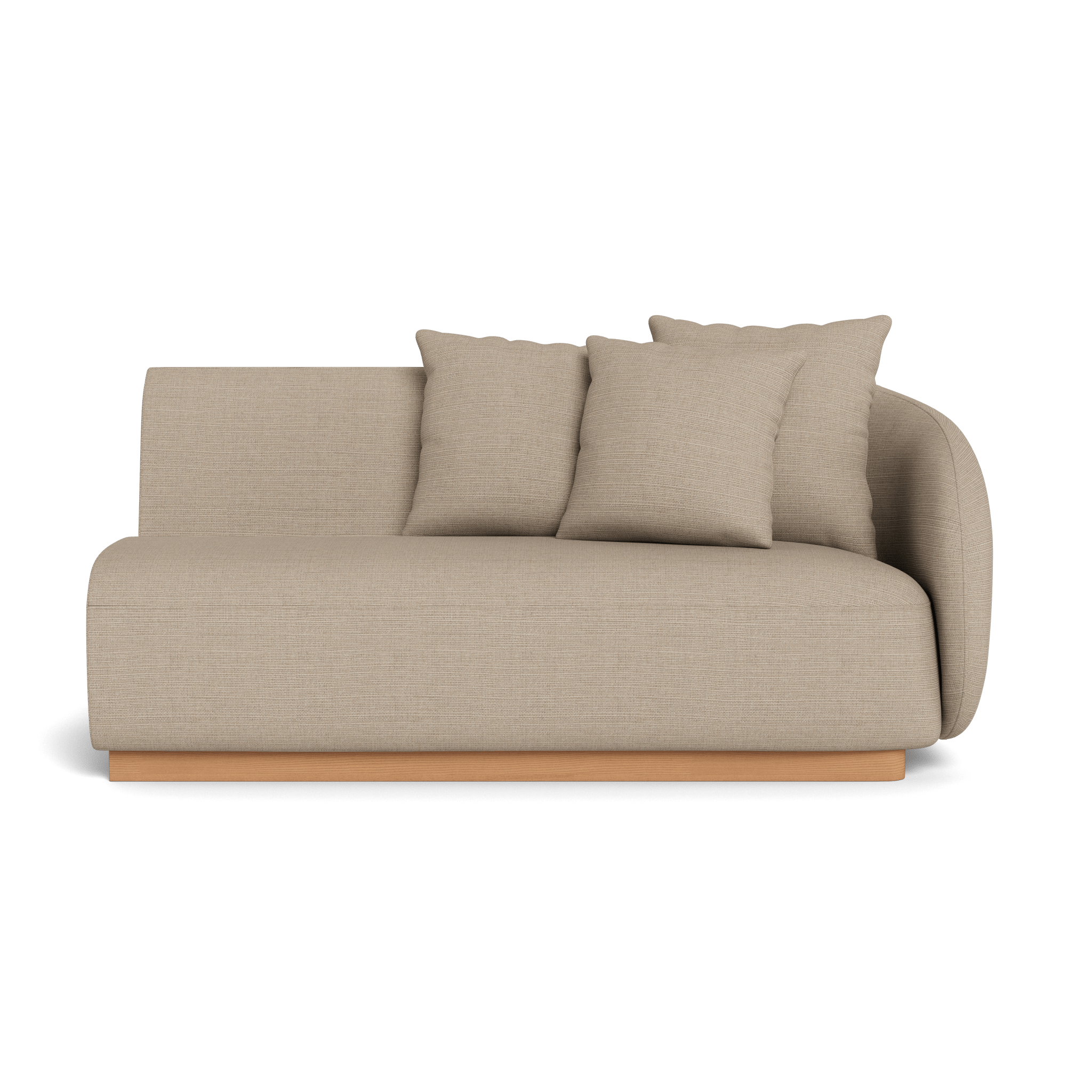 A nod to the iconic Italian elegance of Lake Como, our Como collection refines the traditions of fine Italian tailoring for a natural setting with organically–inspired signature curves and luxe outdoor upholstery. The barrel–backed Como 2 Seat 1 Arm Right channels the high design and comfort of an indoor piece — expertly upholstered in performance textiles in Riviera Ivory over quick–dry foam on a solid teak base in Natural. Engineered for a supported sink–in feel with a tight seat, this outdoor sectional sofa is an elevated take on comfort. Pair it with an opposite Curved Chaise to create a true seating moment.