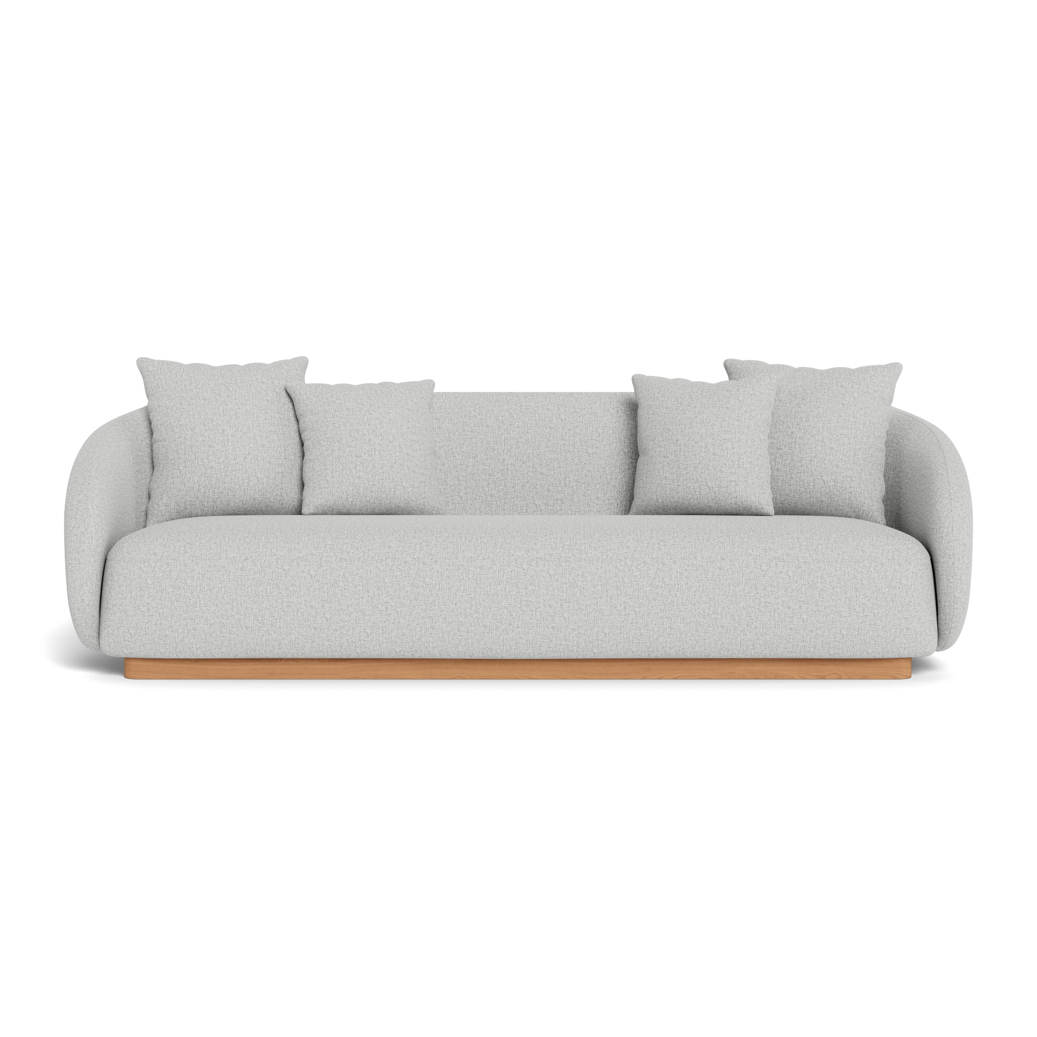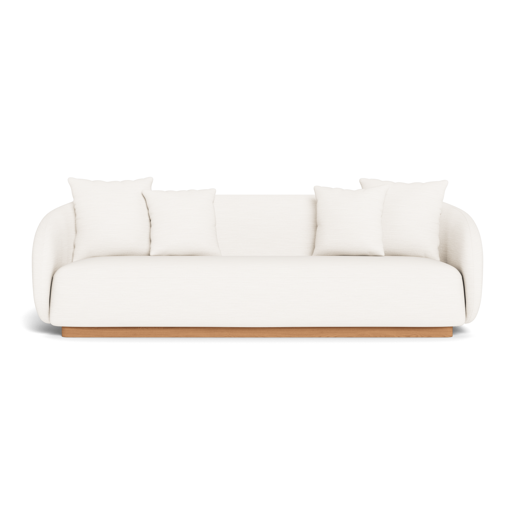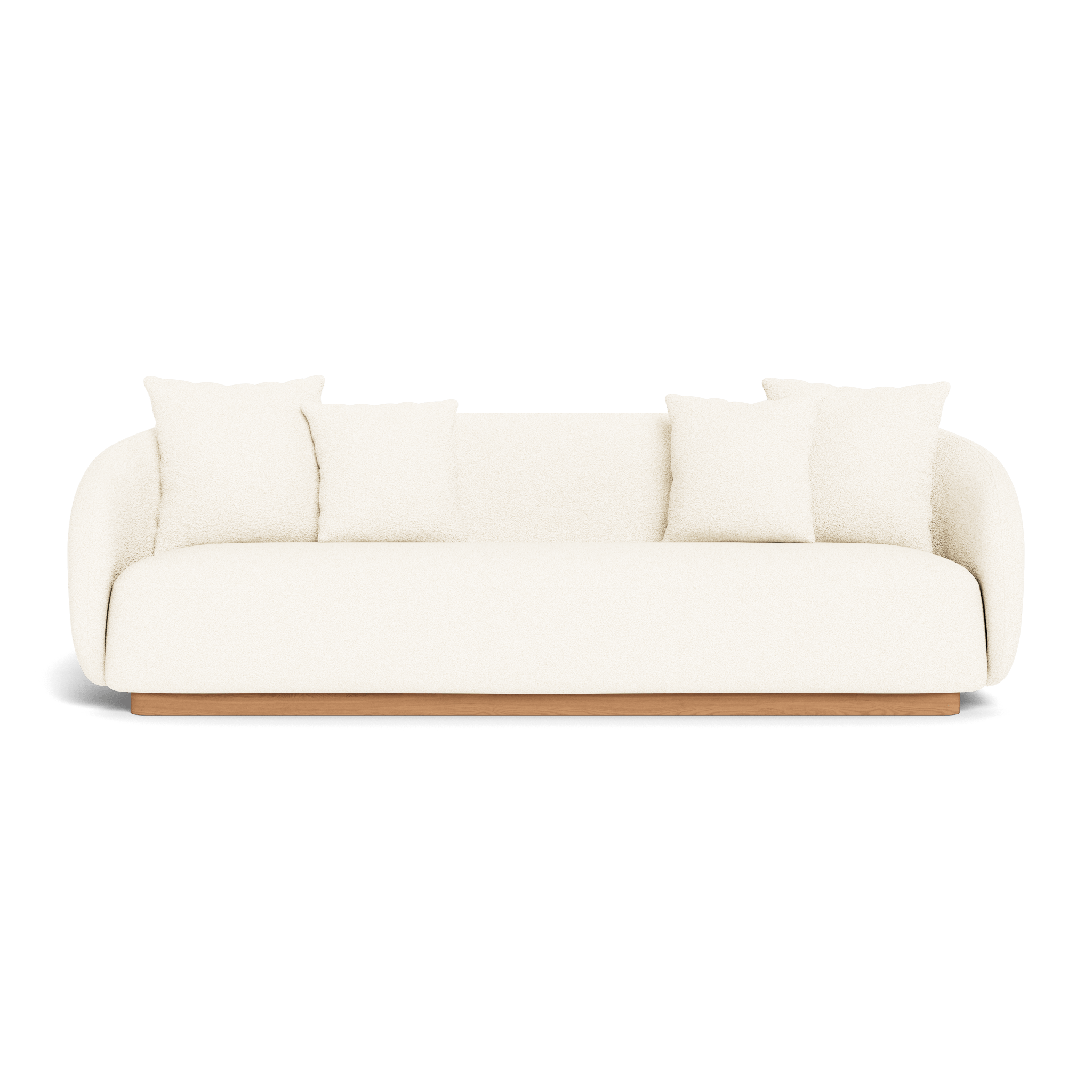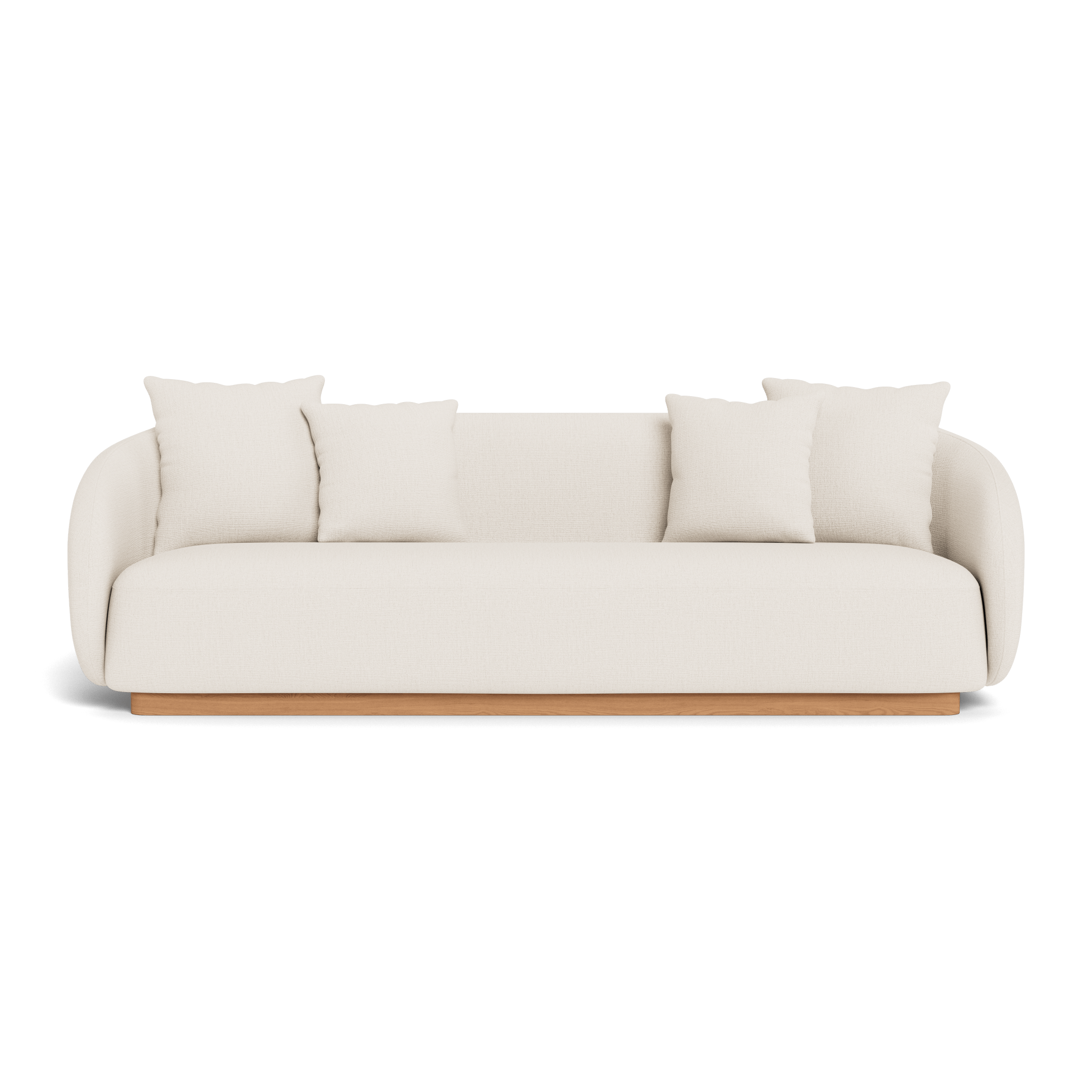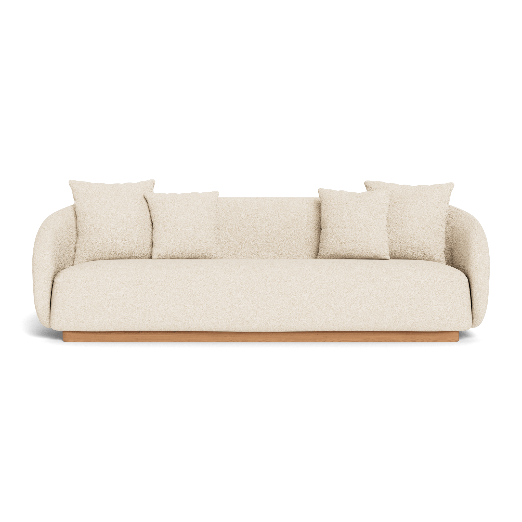 A nod to the iconic Italian elegance of Lake Como, our Como collection refines the traditions of fine Italian tailoring for a natural setting with organically–inspired signature curves and luxe outdoor upholstery. The barrel–backed Como 3 Seat Sofa channels the high design and comfort of an indoor piece — expertly upholstered in performance textiles in Riviera Ivory over quick–dry foam on a solid teak base in Natural. Engineered for a supported sink–in feel with a tight seat, this outdoor sofa is an elevated take on comfort.