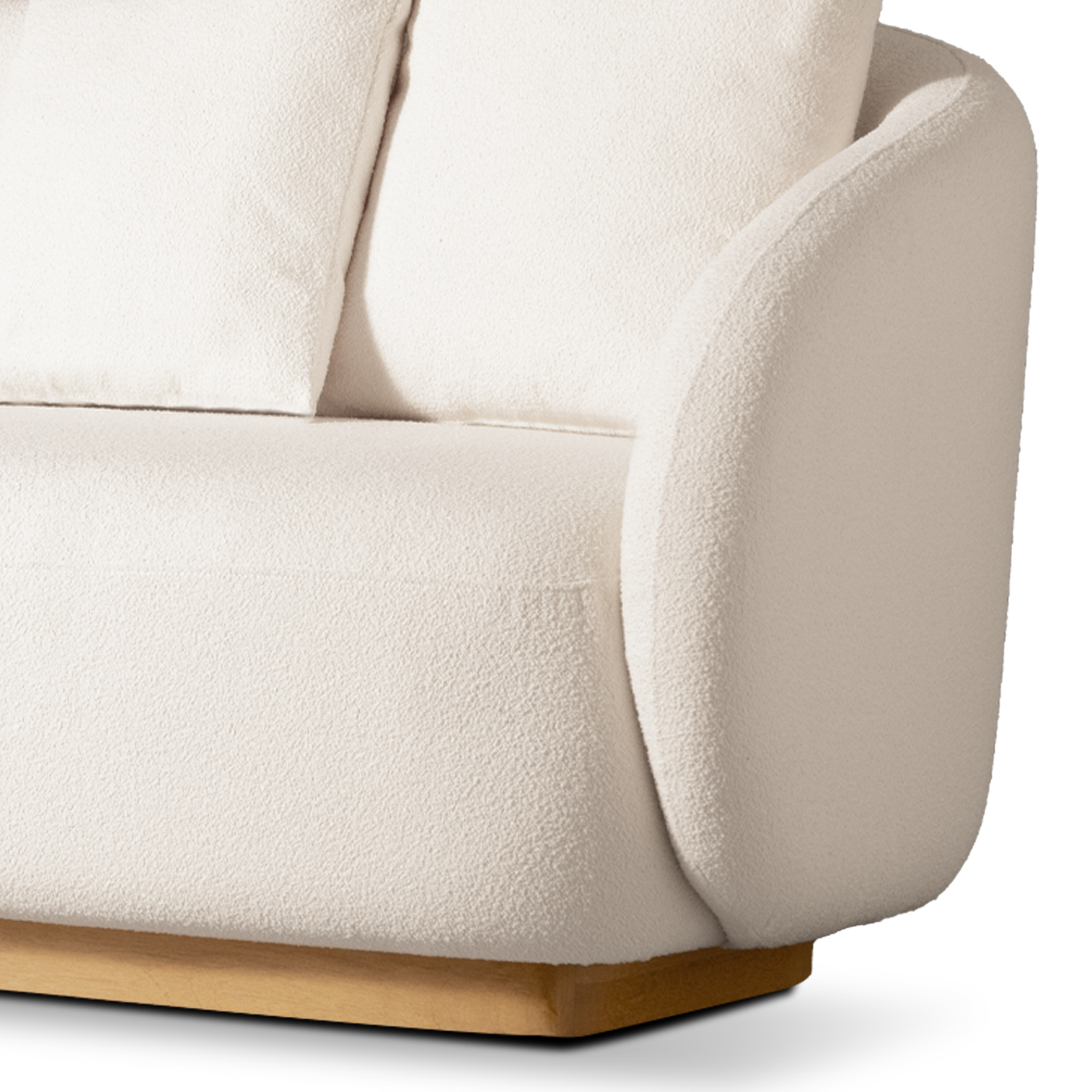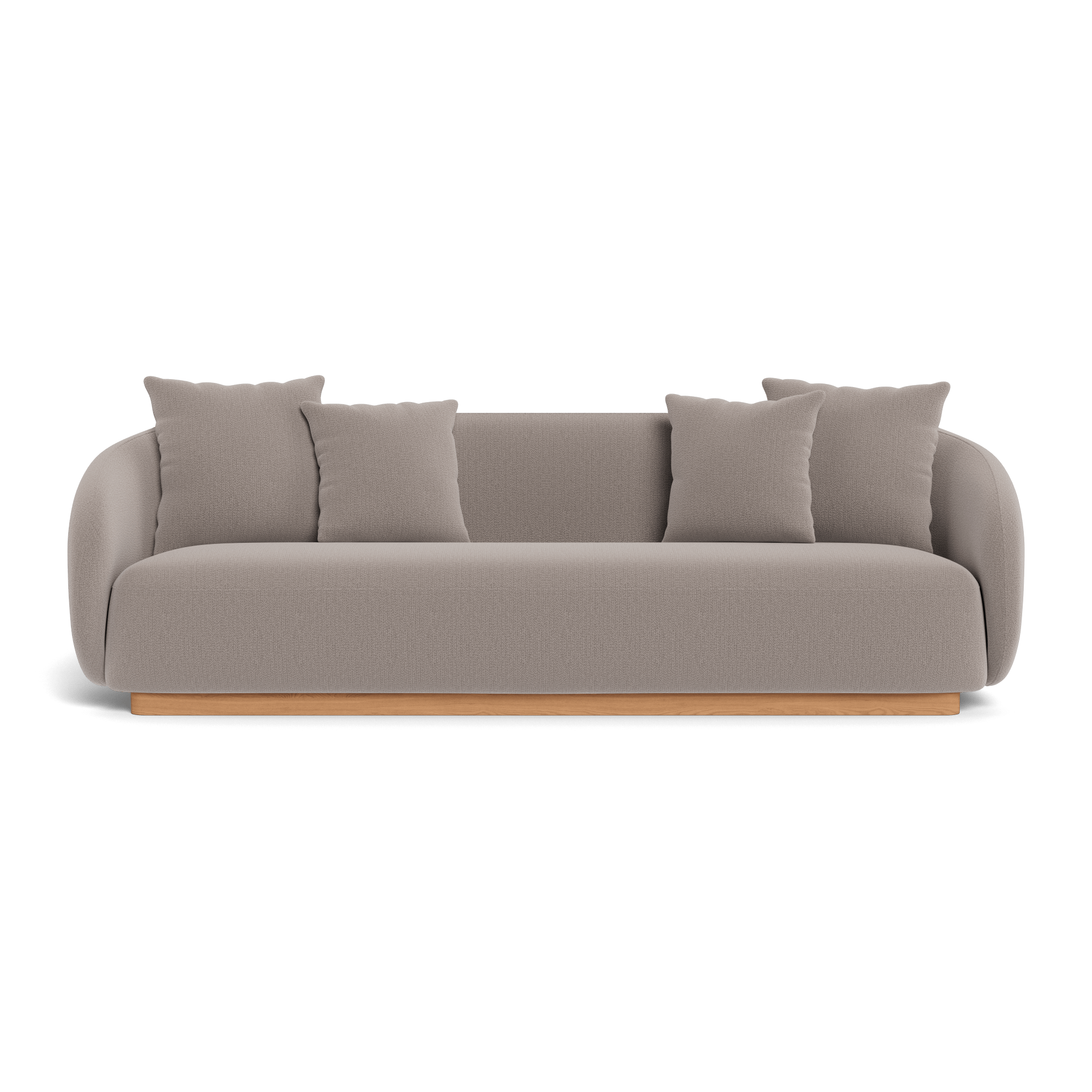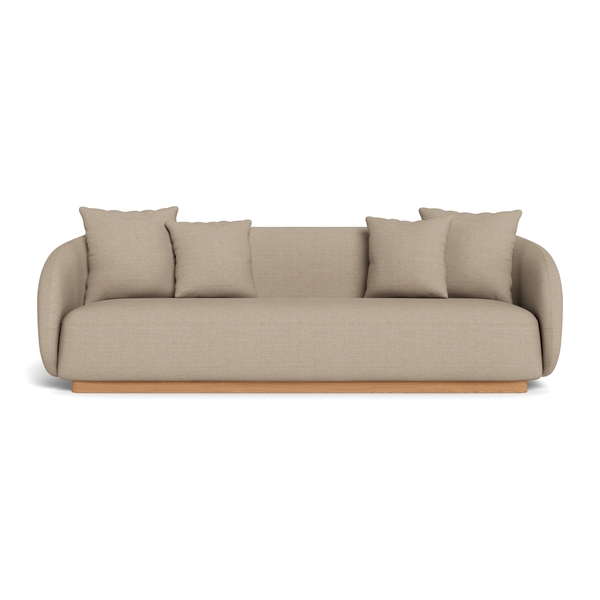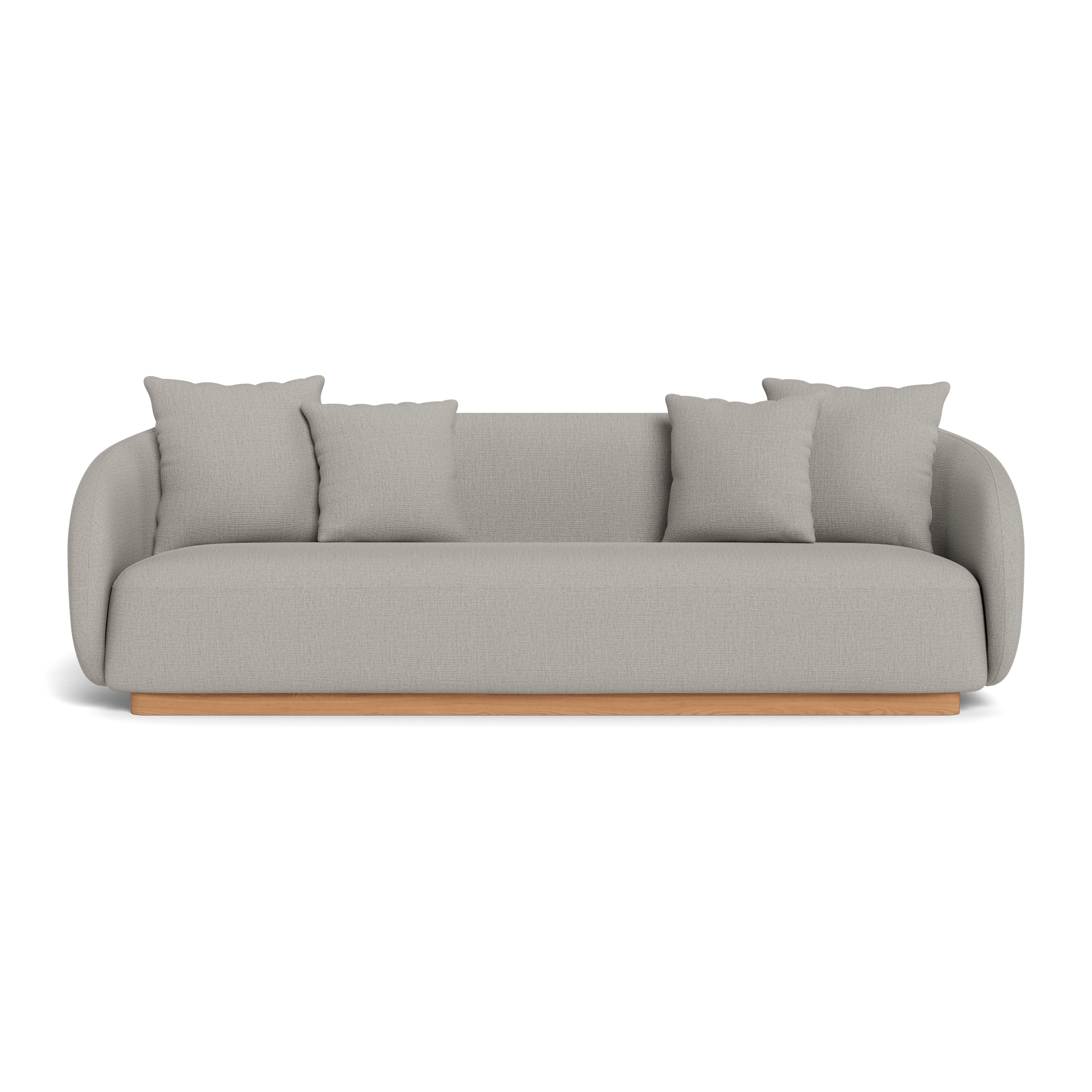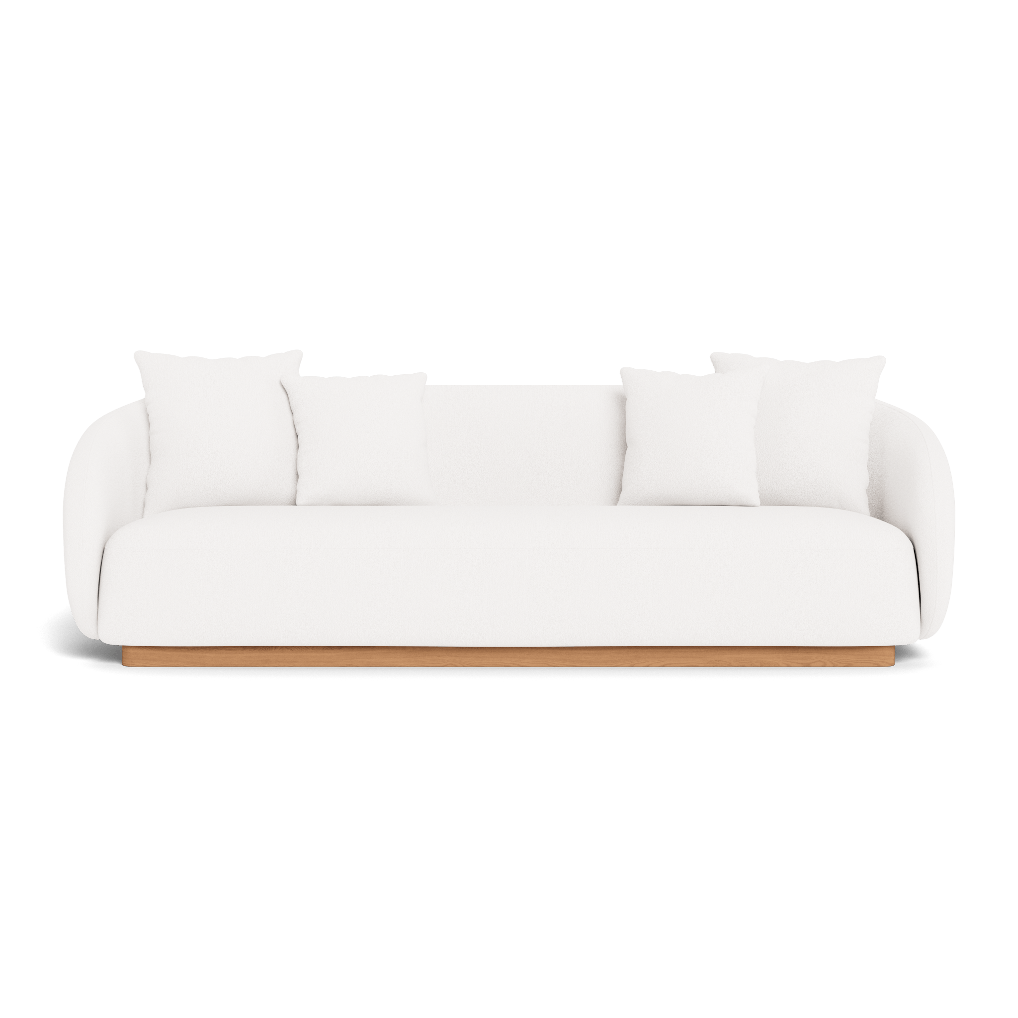 A nod to the iconic Italian elegance of Lake Como, our Como collection refines the traditions of fine Italian tailoring for a natural setting with organically–inspired signature curves and luxe outdoor upholstery. The barrel–backed Como 3 Seat Sofa channels the high design and comfort of an indoor piece — expertly upholstered in performance textiles in Riviera Ivory over quick–dry foam on a solid teak base in Natural. Engineered for a supported sink–in feel with a tight seat, this outdoor sofa is an elevated take on comfort.