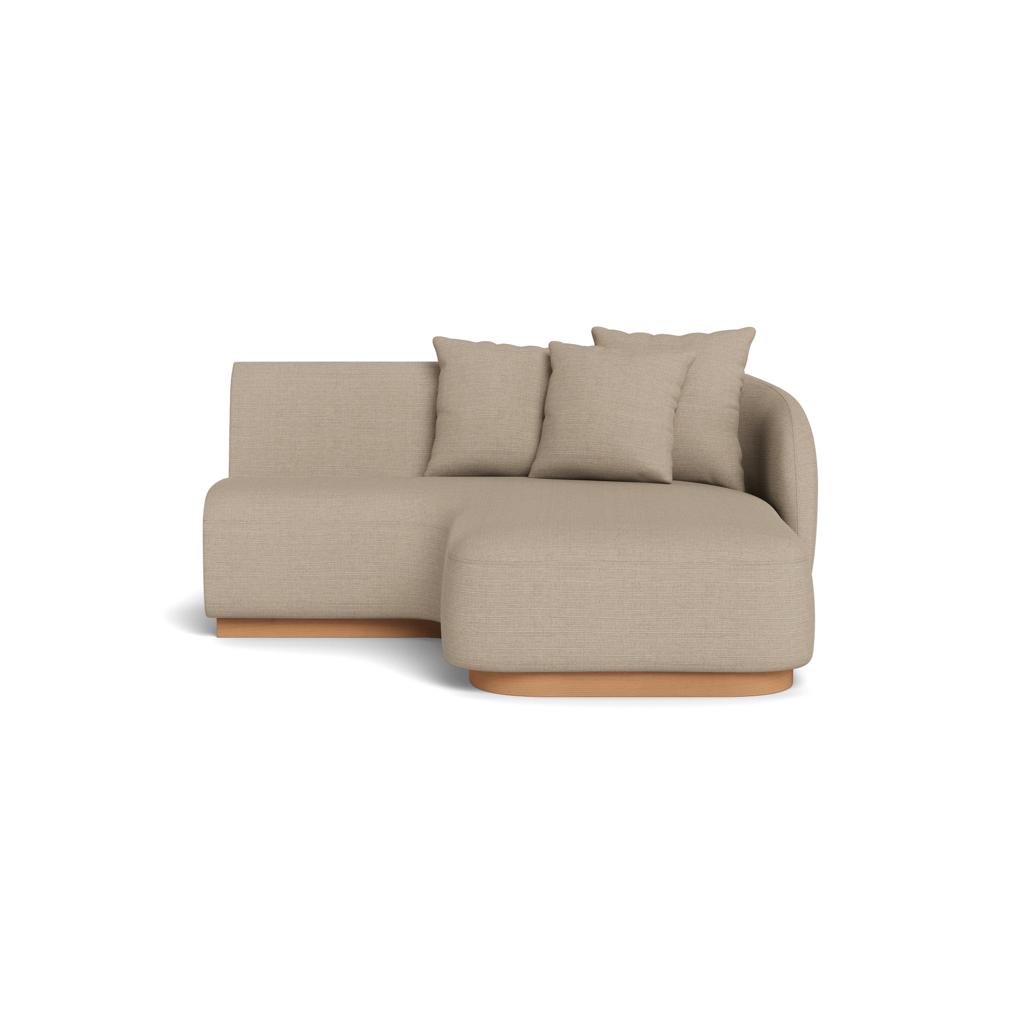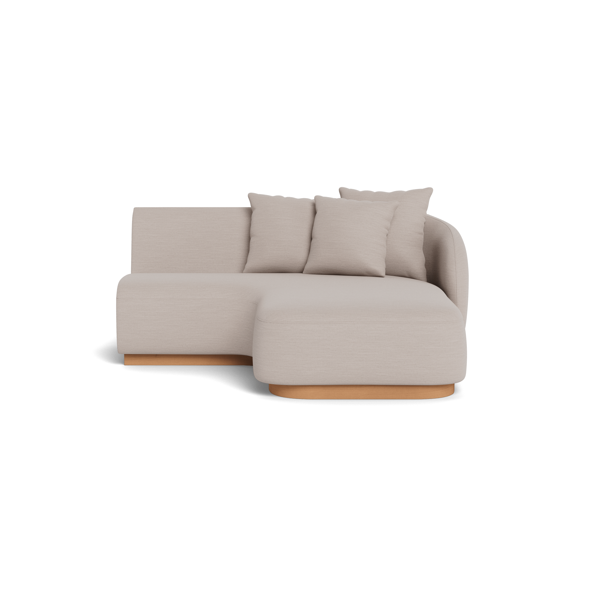 A nod to the iconic Italian elegance of Lake Como, our Como collection refines the traditions of fine Italian tailoring for a natural setting with organically–inspired signature curves and luxe outdoor upholstery. The barrel–backed Como Curved Chaise Right channels the high design and comfort of an indoor piece — expertly upholstered in performance textiles in Riviera Ivory over quick–dry foam on a solid teak base in Natural. Engineered for a supported sink–in feel with a tight seat, this outdoor sectional sofa is an elevated take on comfort. Pair it with an opposite 2 Seat 1 Arm to create a true seating moment.