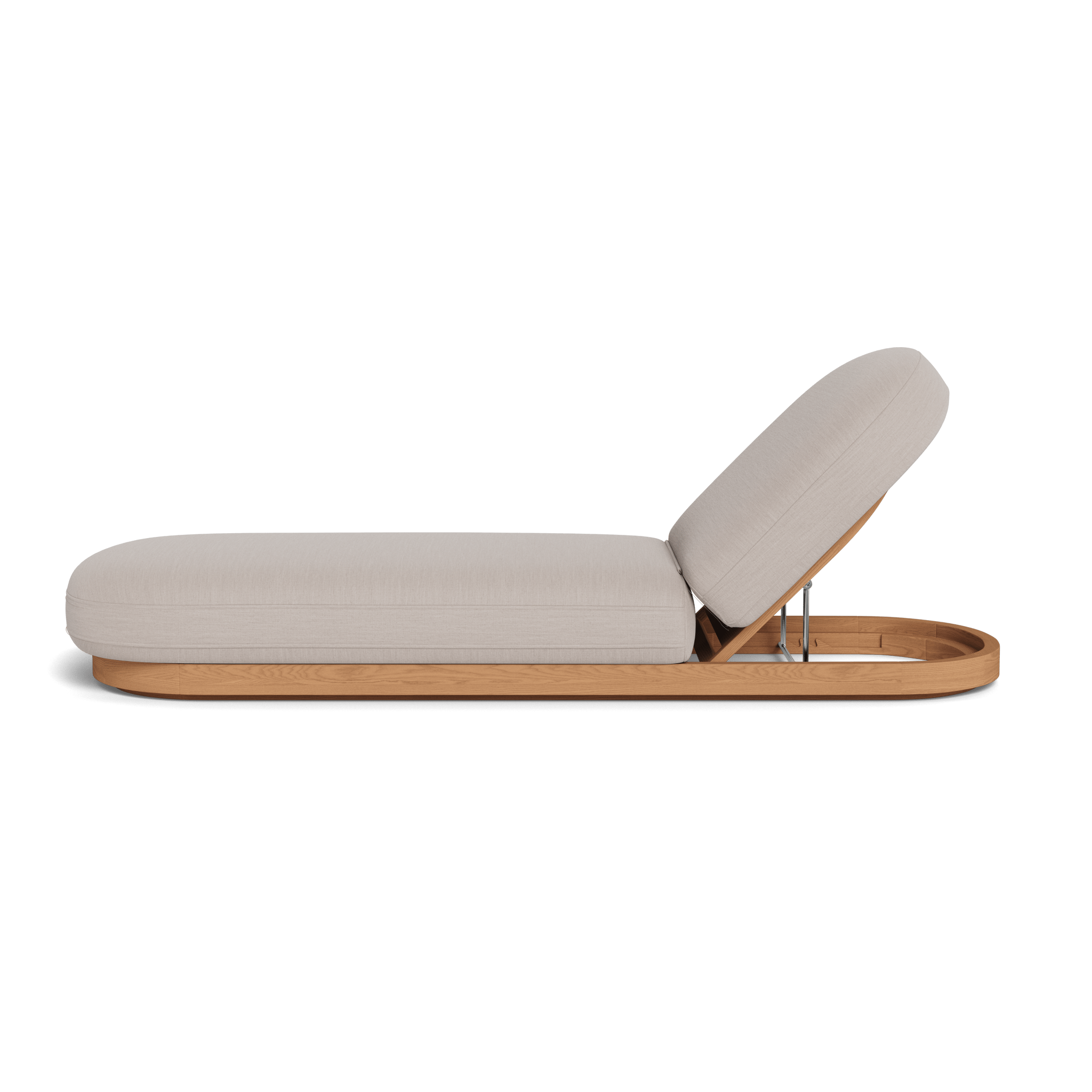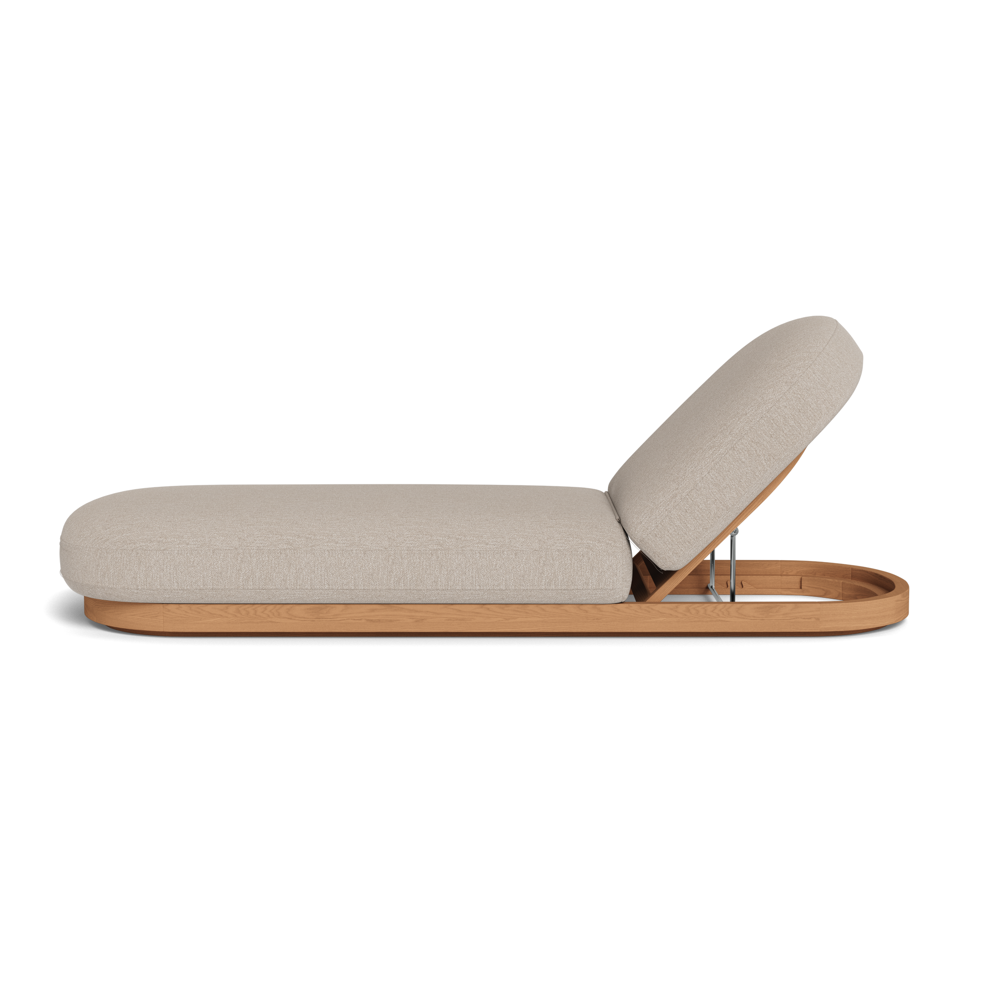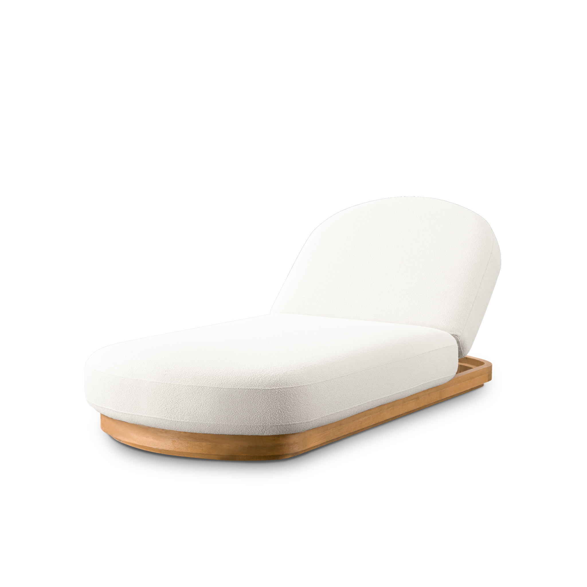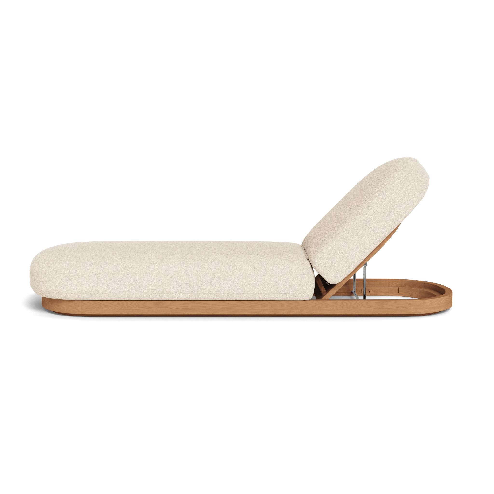 A nod to the iconic Italian elegance of Lake Como, our Como collection refines the traditions of fine Italian tailoring for a natural setting with organically–inspired signature curves and luxe outdoor upholstery. The subtly pill–shaped Como Sun Lounge channels the high design and comfort of an indoor piece — expertly upholstered in performance textiles in Riviera Ivory over quick–dry foam on a solid teak base in Natural. Engineered for a supported sink–in feel, this outdoor chaise is an elevated take on comfort. An adjustable back allows you to discover the perfect lounging incline.