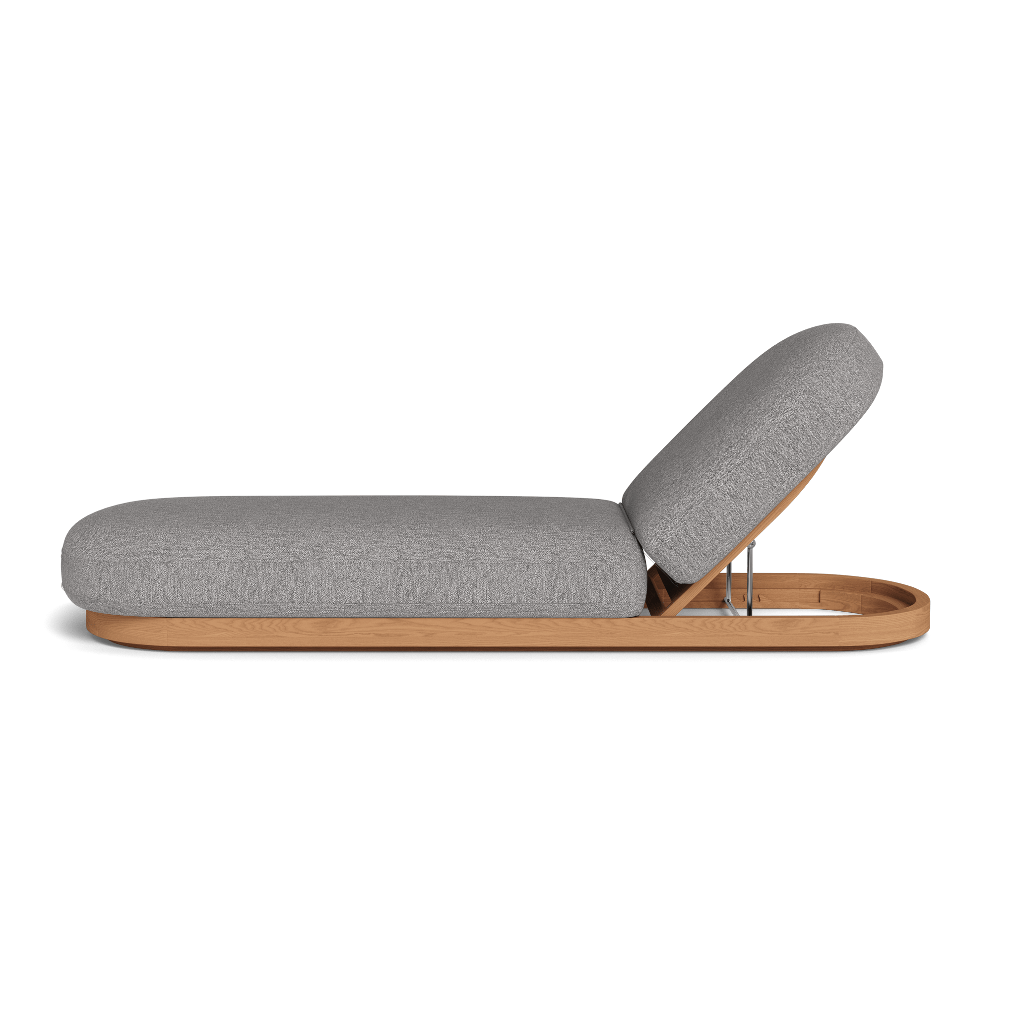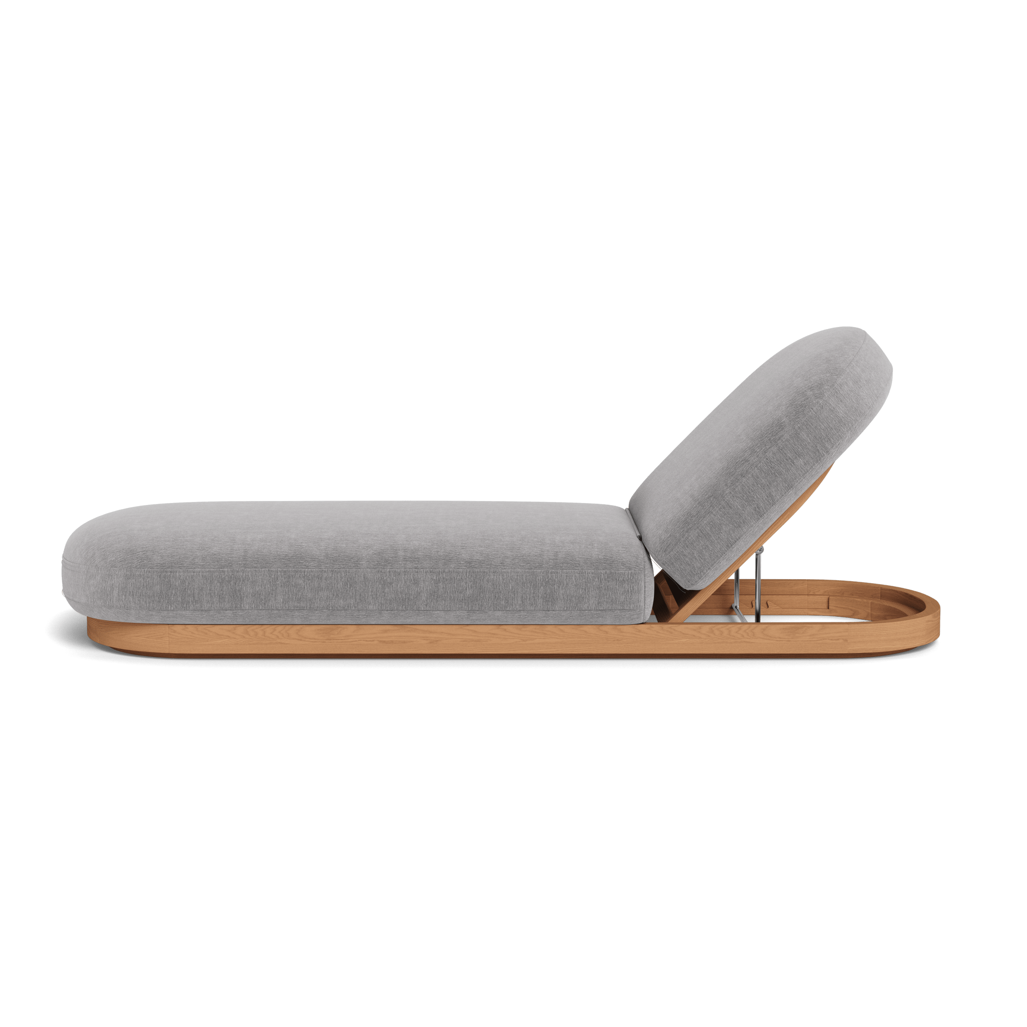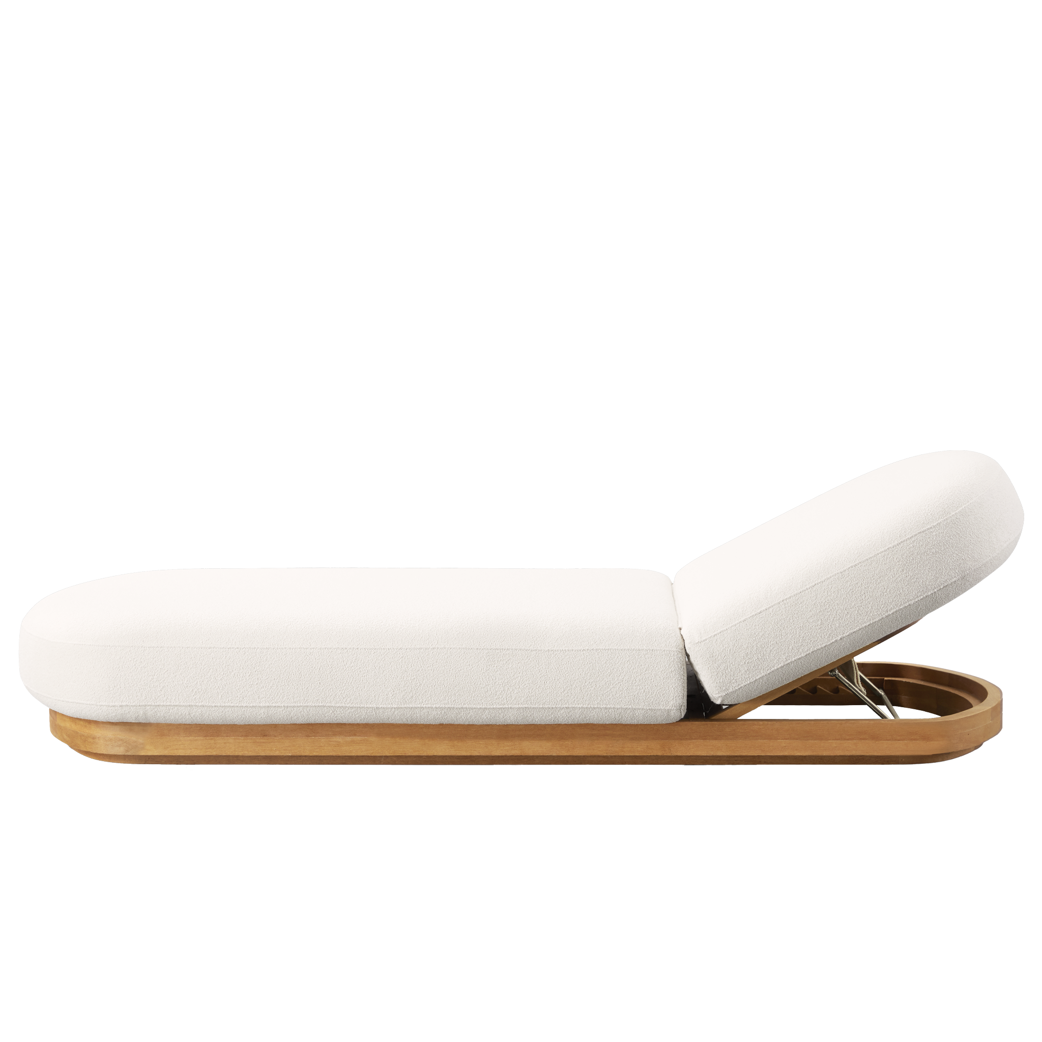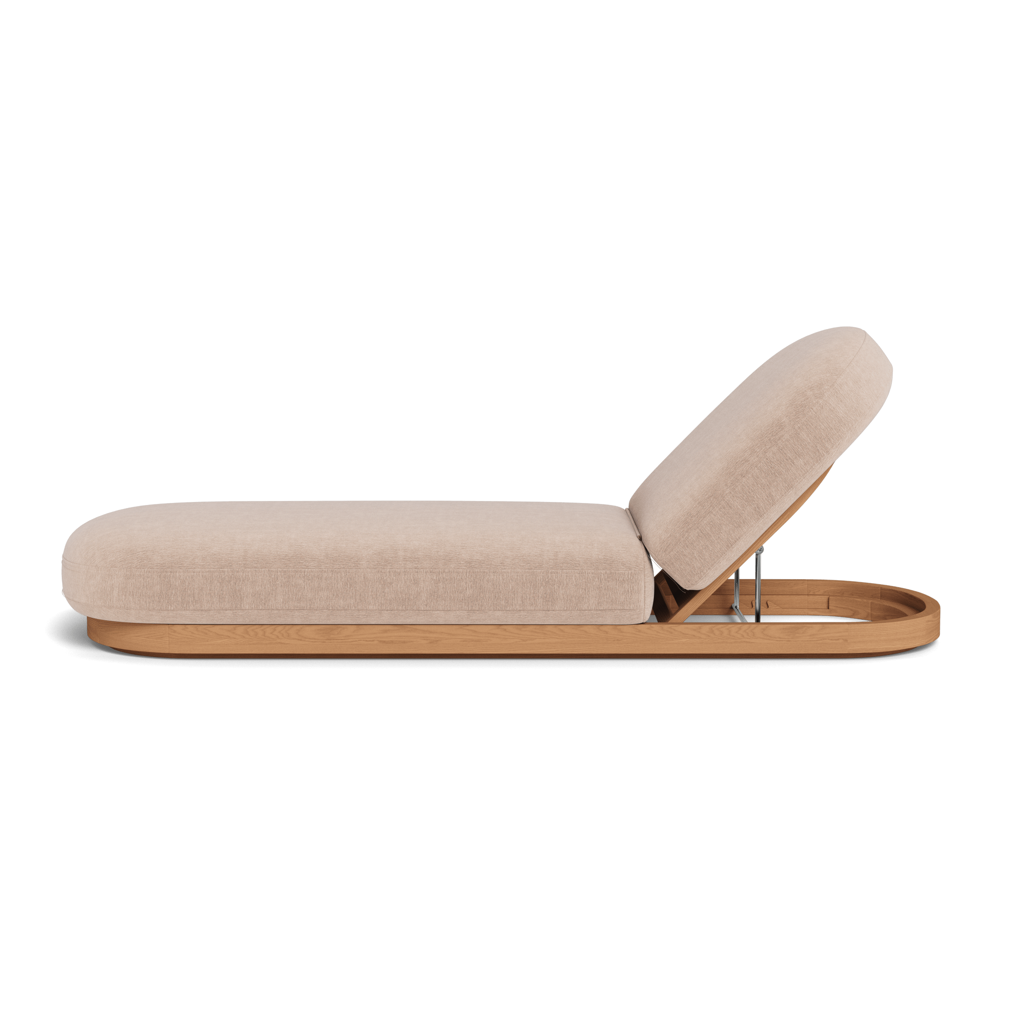 A nod to the iconic Italian elegance of Lake Como, our Como collection refines the traditions of fine Italian tailoring for a natural setting with organically–inspired signature curves and luxe outdoor upholstery. The subtly pill–shaped Como Sun Lounge channels the high design and comfort of an indoor piece — expertly upholstered in performance textiles in Riviera Ivory over quick–dry foam on a solid teak base in Natural. Engineered for a supported sink–in feel, this outdoor chaise is an elevated take on comfort. An adjustable back allows you to discover the perfect lounging incline.