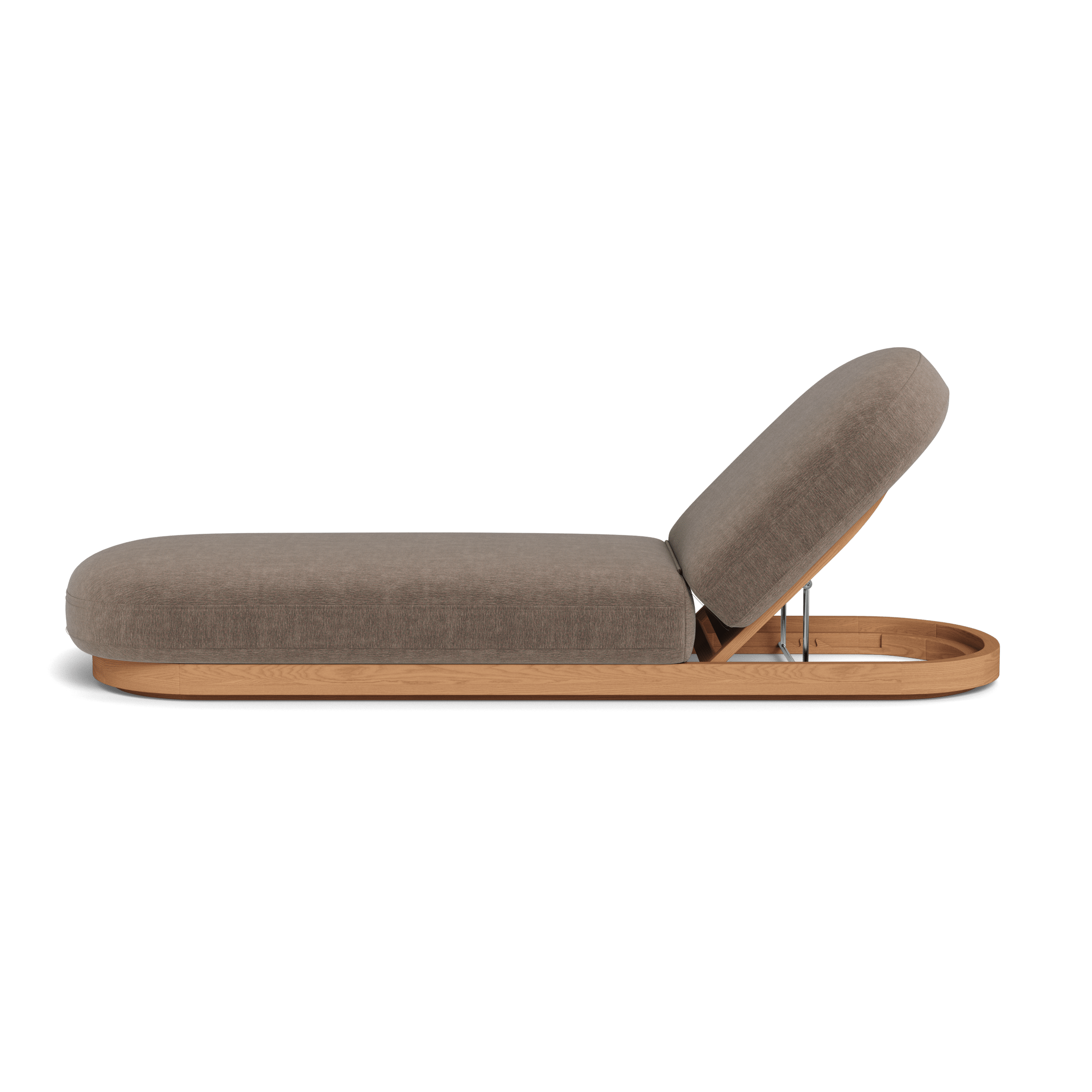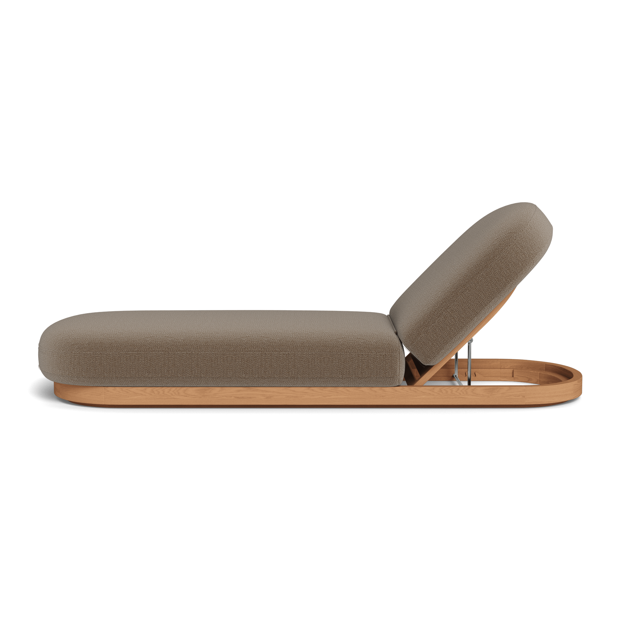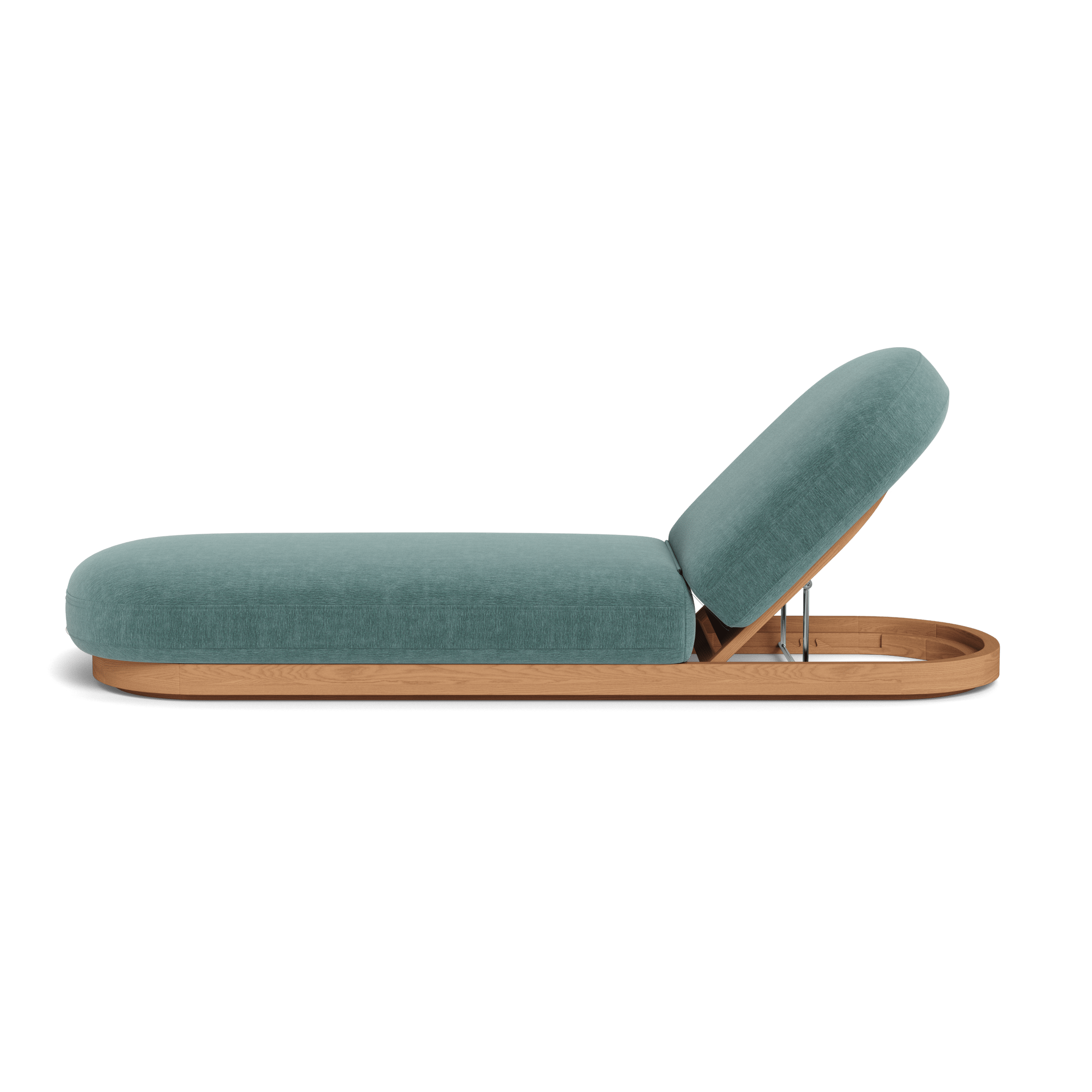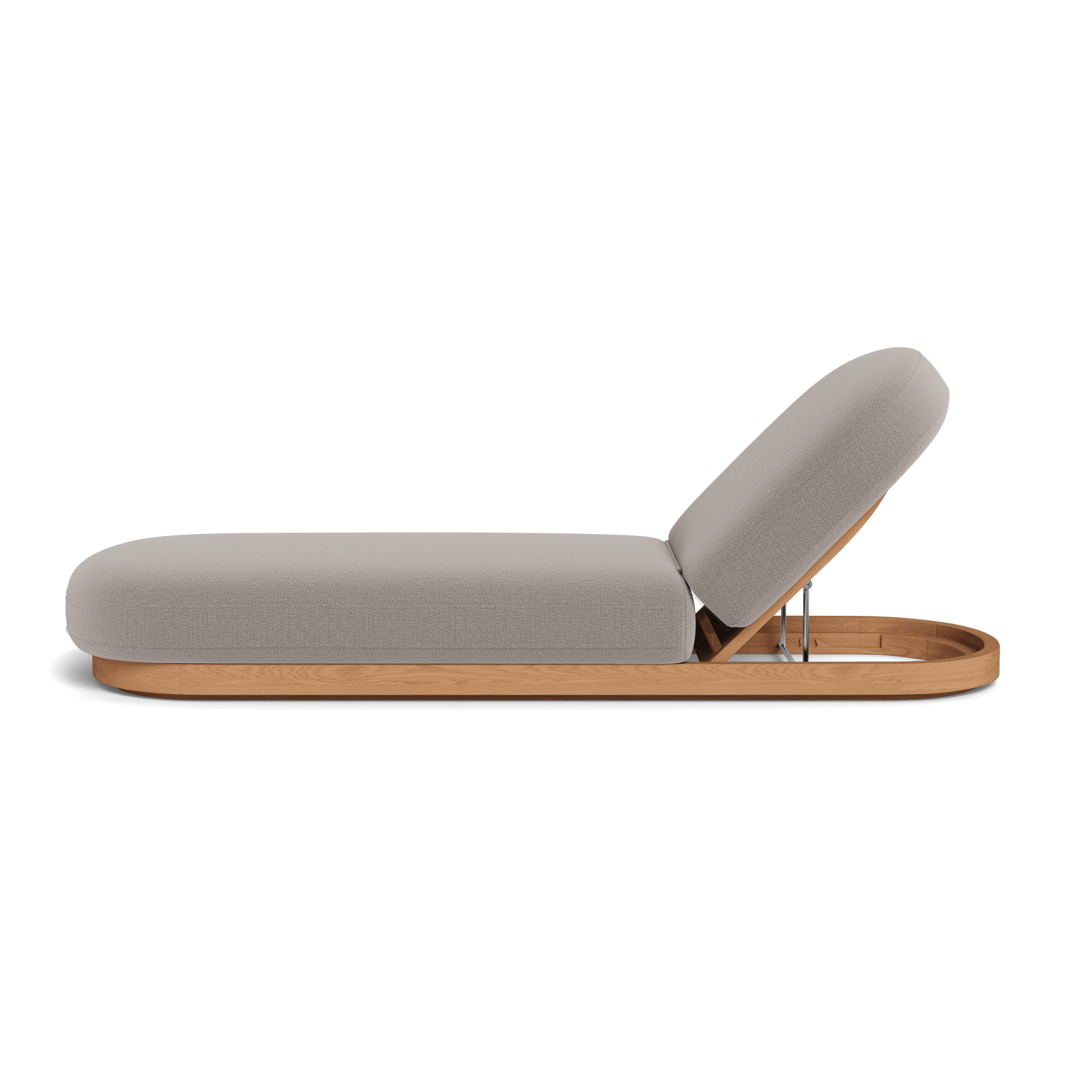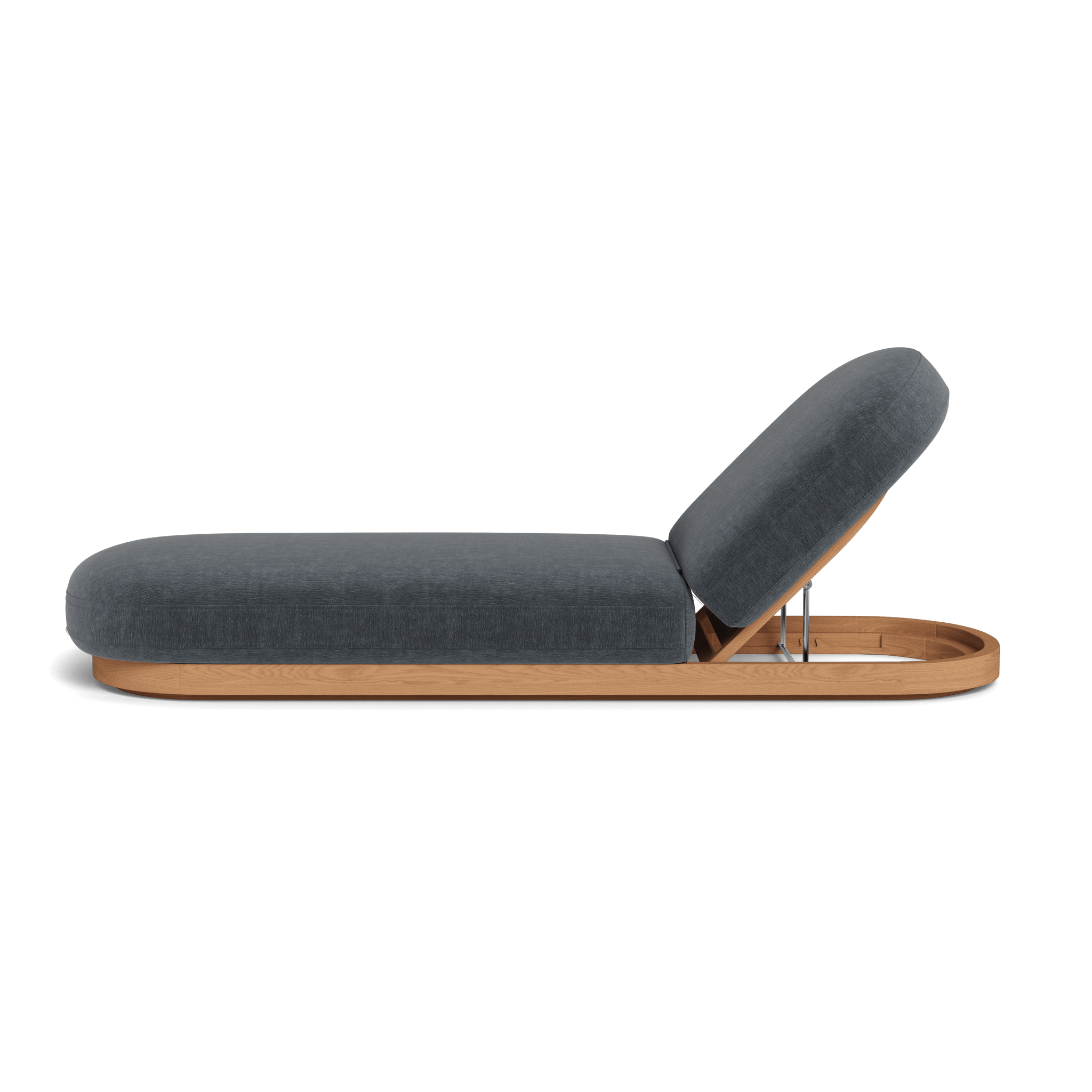A nod to the iconic Italian elegance of Lake Como, our Como collection refines the traditions of fine Italian tailoring for a natural setting with organically–inspired signature curves and luxe outdoor upholstery. The subtly pill–shaped Como Sun Lounge channels the high design and comfort of an indoor piece — expertly upholstered in performance textiles in Riviera Ivory over quick–dry foam on a solid teak base in Natural. Engineered for a supported sink–in feel, this outdoor chaise is an elevated take on comfort. An adjustable back allows you to discover the perfect lounging incline.