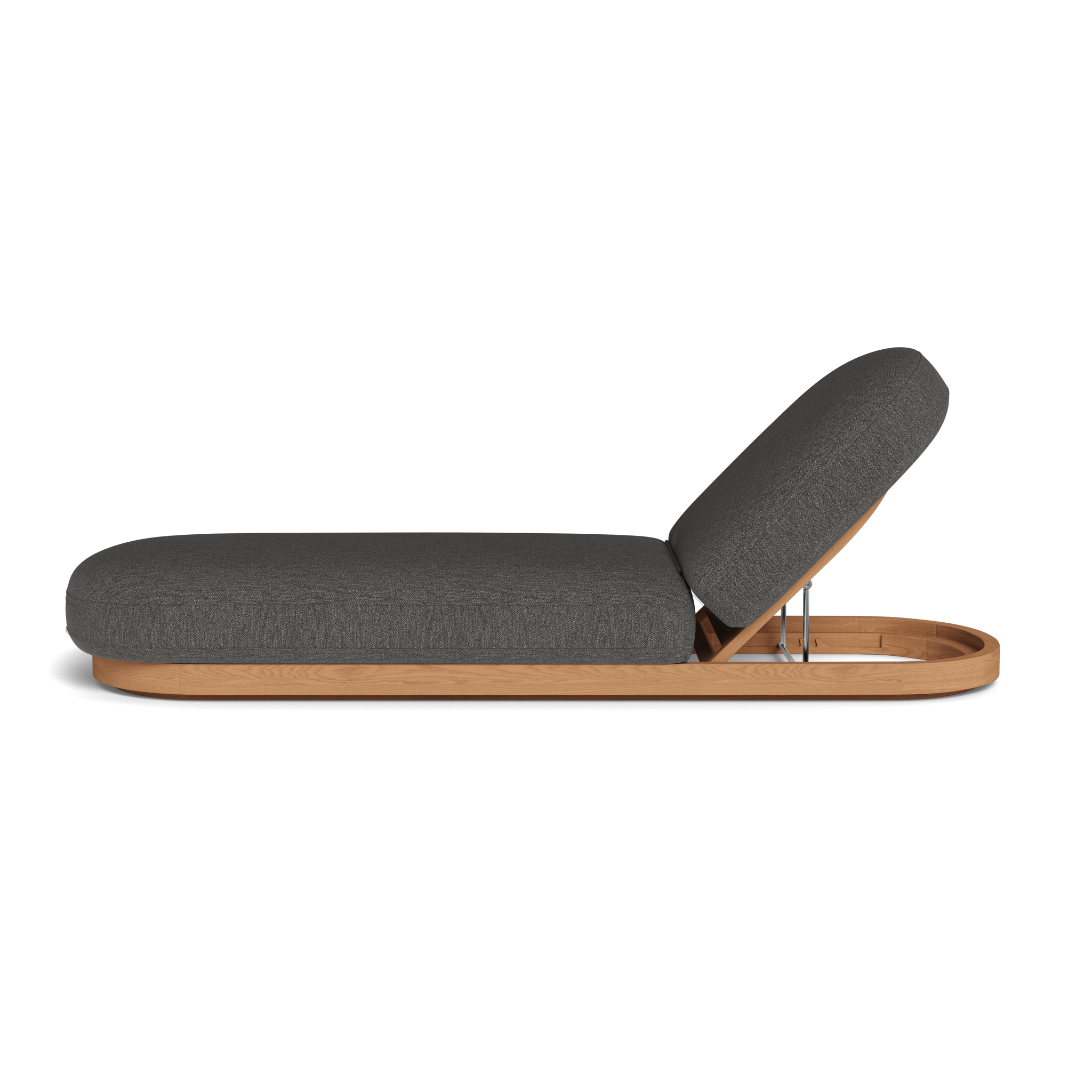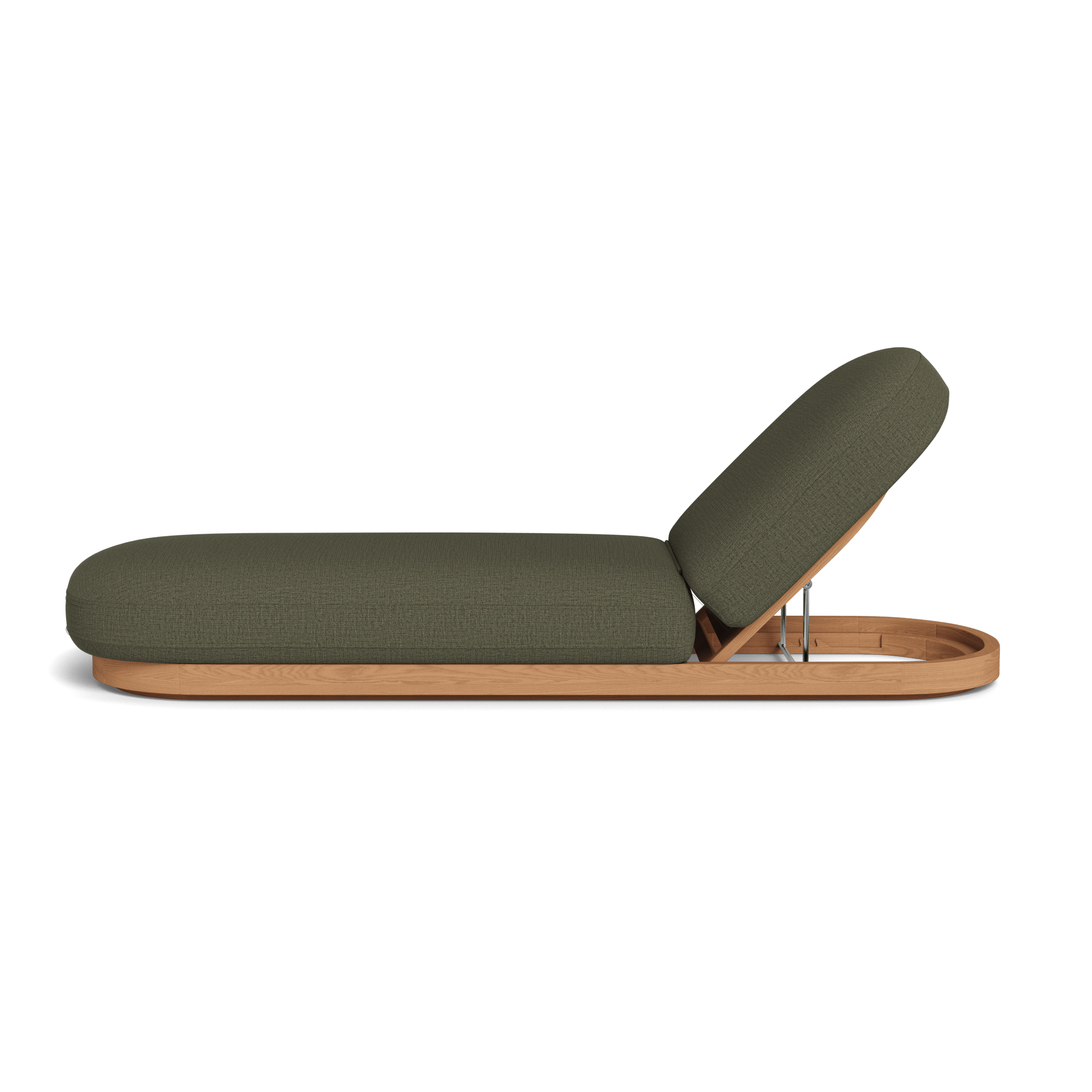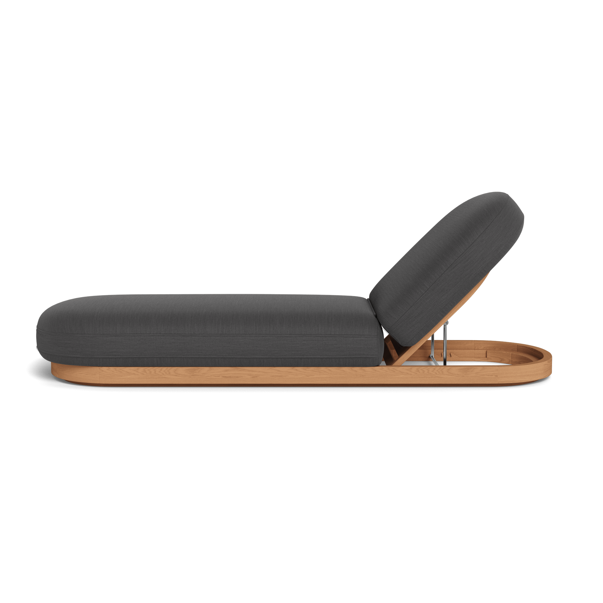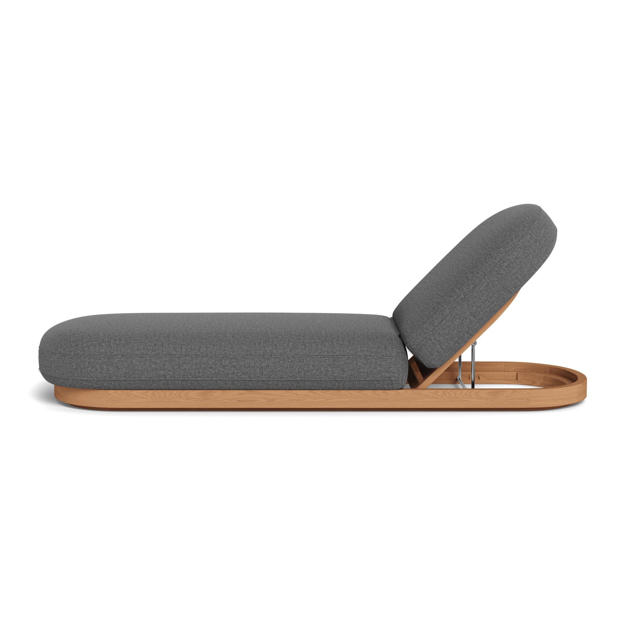 A nod to the iconic Italian elegance of Lake Como, our Como collection refines the traditions of fine Italian tailoring for a natural setting with organically–inspired signature curves and luxe outdoor upholstery. The subtly pill–shaped Como Sun Lounge channels the high design and comfort of an indoor piece — expertly upholstered in performance textiles in Riviera Ivory over quick–dry foam on a solid teak base in Natural. Engineered for a supported sink–in feel, this outdoor chaise is an elevated take on comfort. An adjustable back allows you to discover the perfect lounging incline.