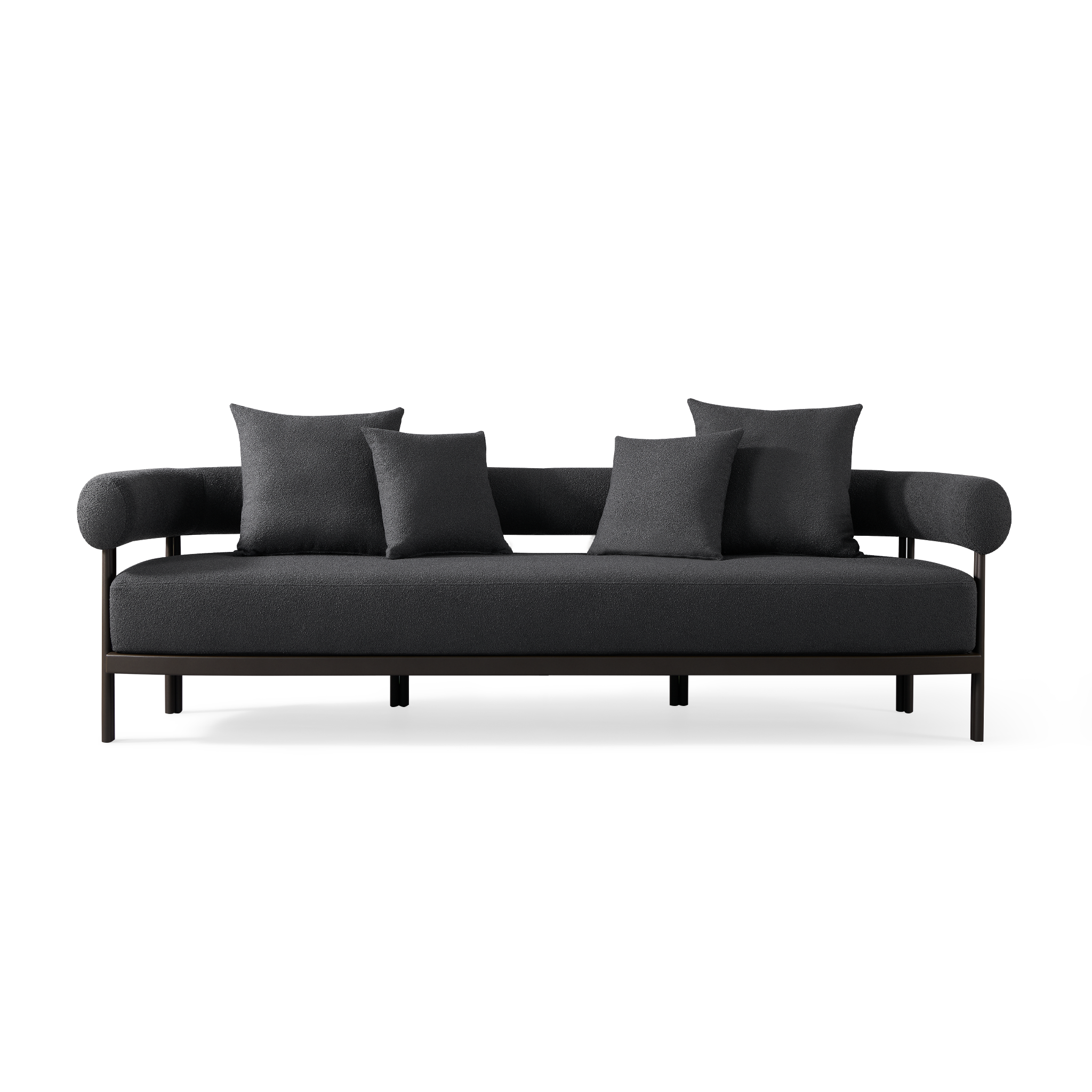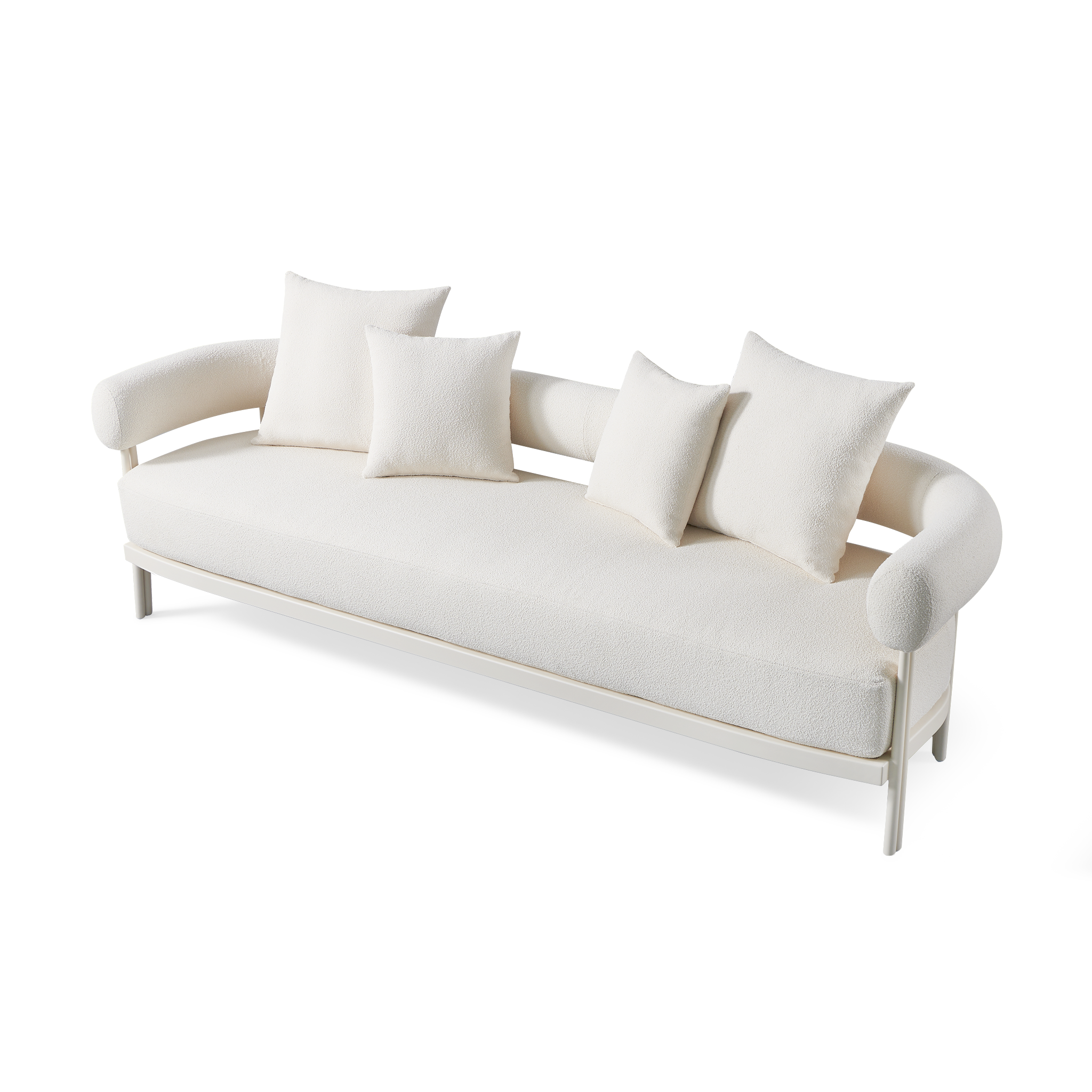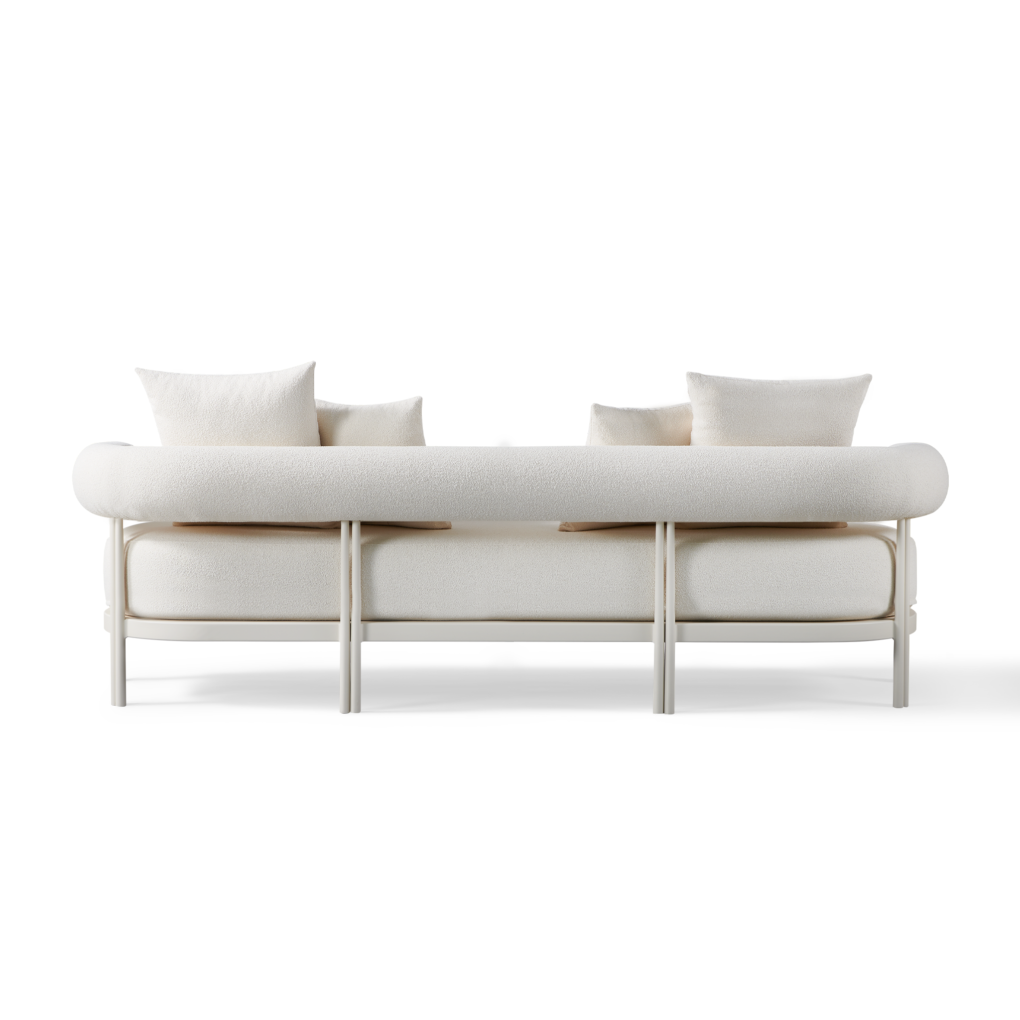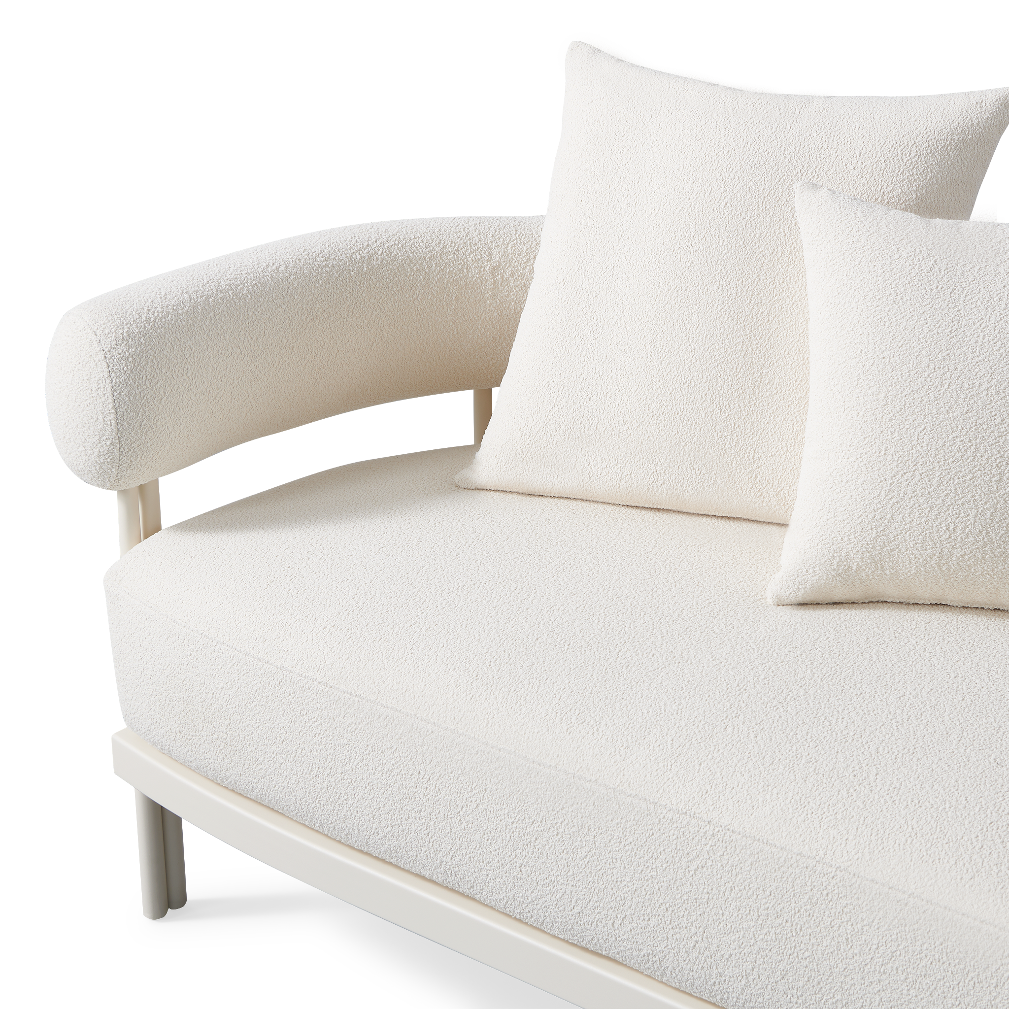 Influenced by modern Australian architecture and landscapes, our sophisticated Cove Luxe collection featureswith special details like double cylindrical legs and curved edges – refined with luxurious upholstered bolster backs – that create soft sculptural silhouettes. The Cove Luxe 3 Seat Sofa is contemporary comfort — featuring a powder coated aluminum frame in Aluminum Bone with an architectural double leg detail. Enjoy a signature sculpted bolster back with a plush all–weather bench cushion in Copacabana Natural for lounging. With a sleek and efficient footprint, this outdoor sofa is a versatile design element for any space.