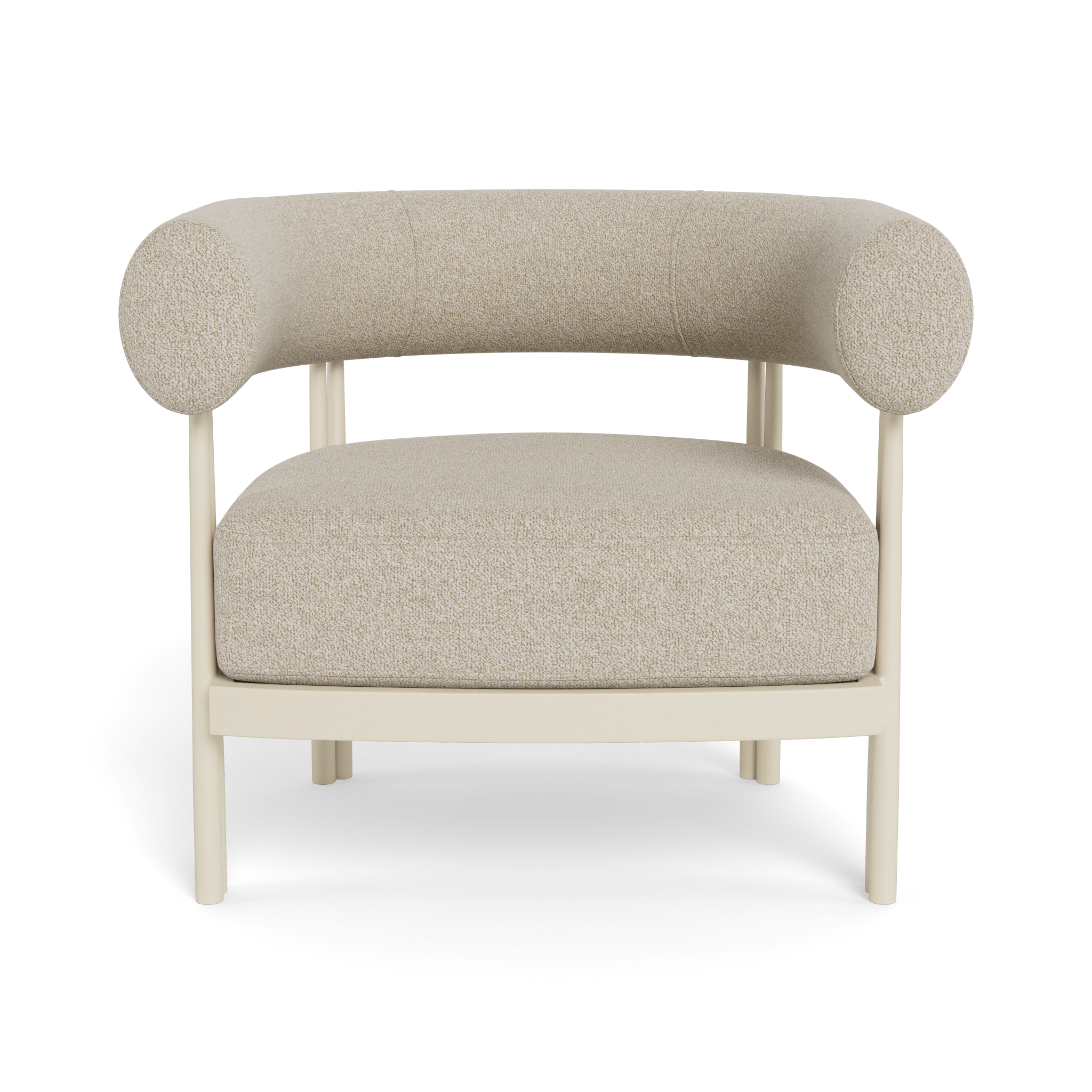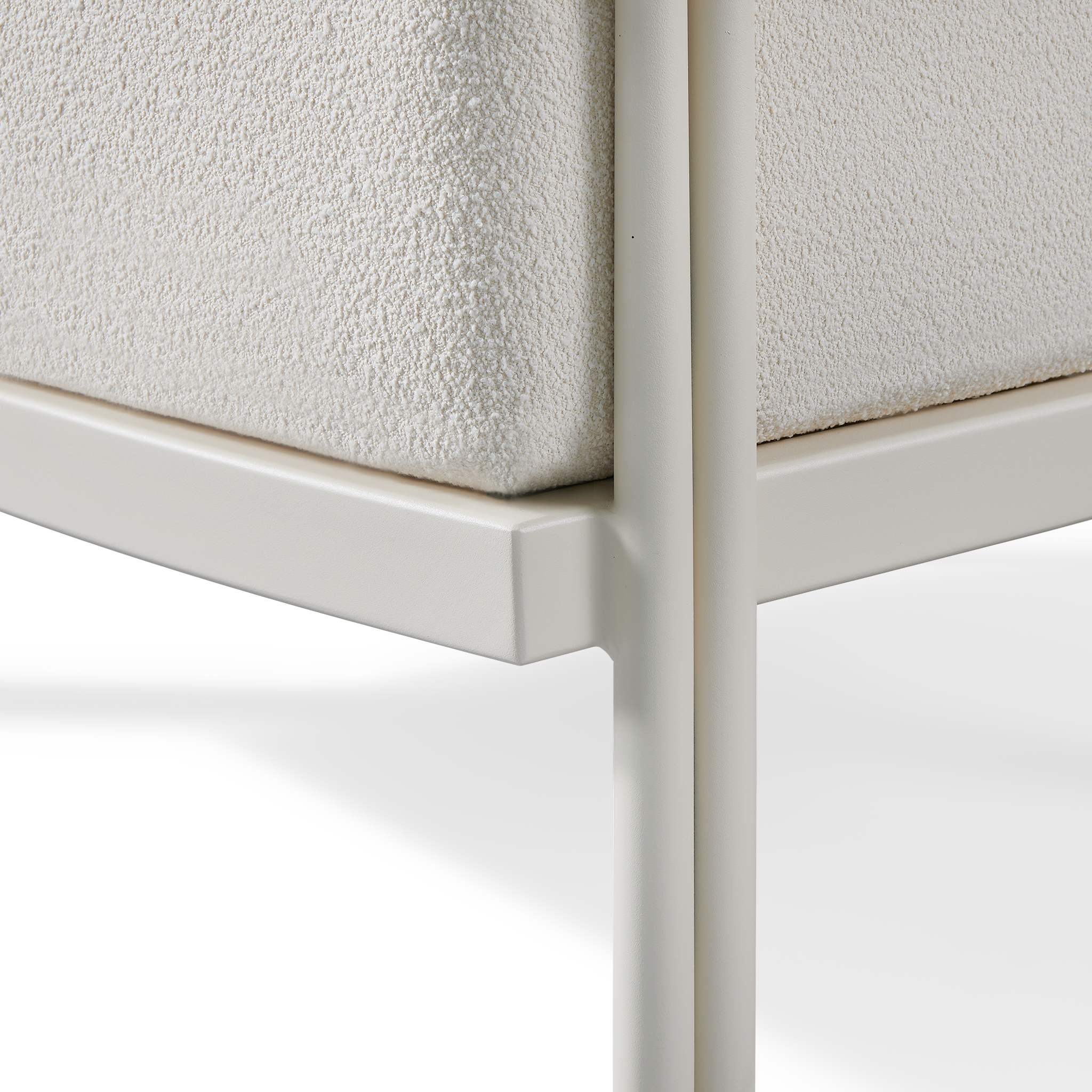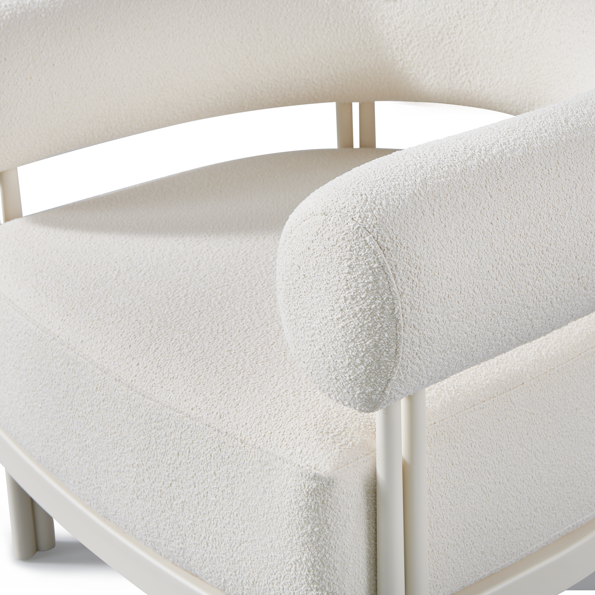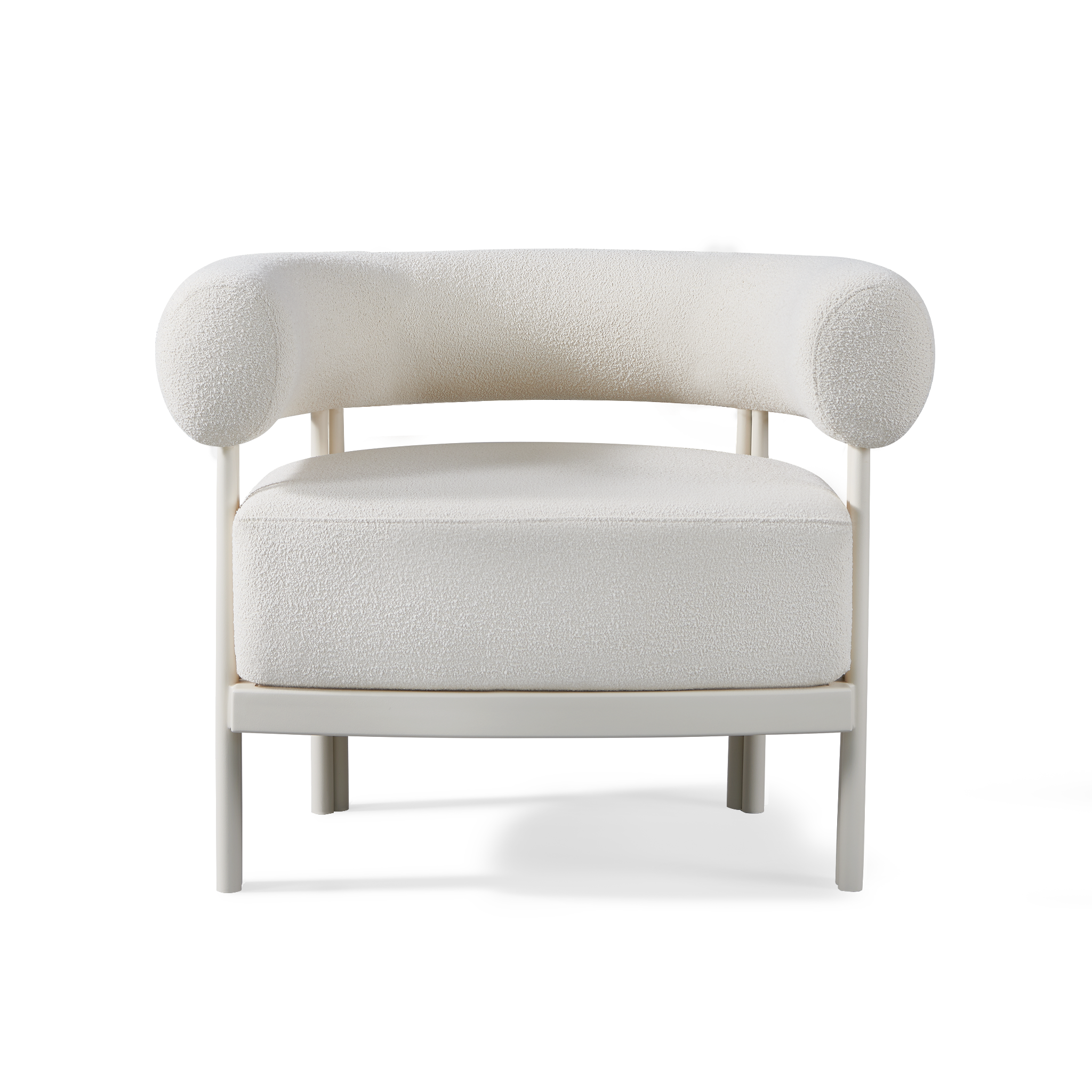 This sophisticated collection features special details like double cylindrical legs and curved edges - refined with luxurious upholstered bolster backs - that create soft sculptural silhouettes with understated elegance.