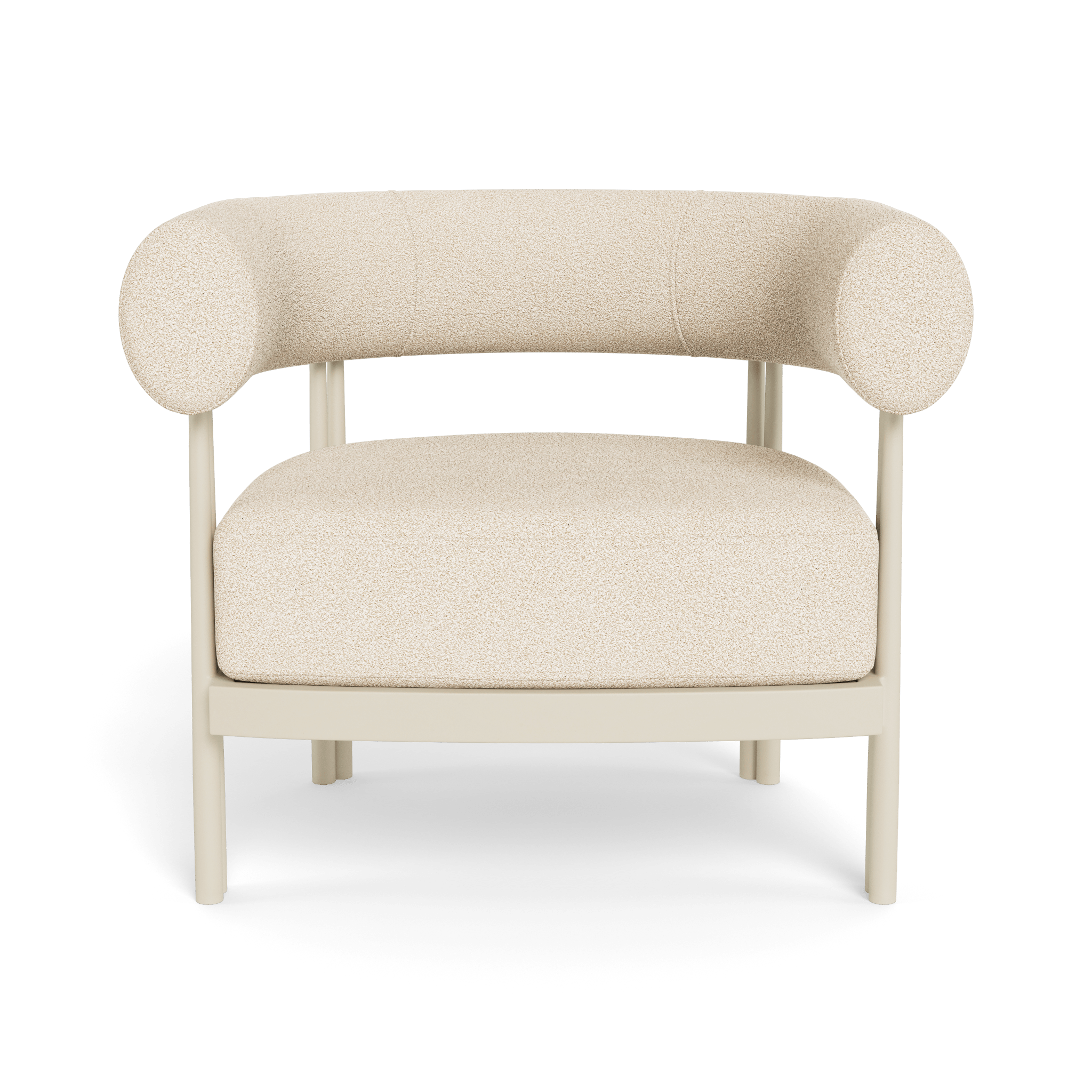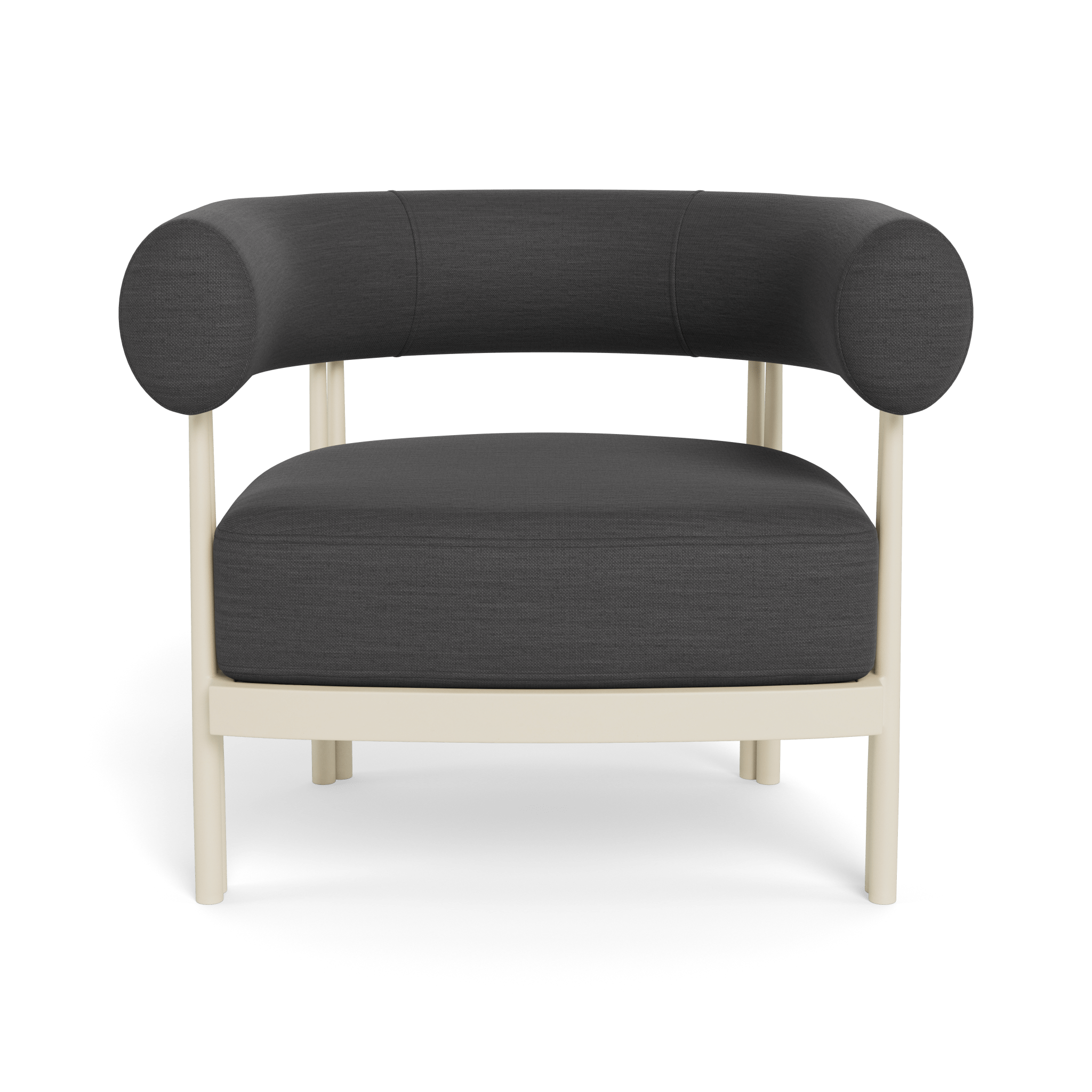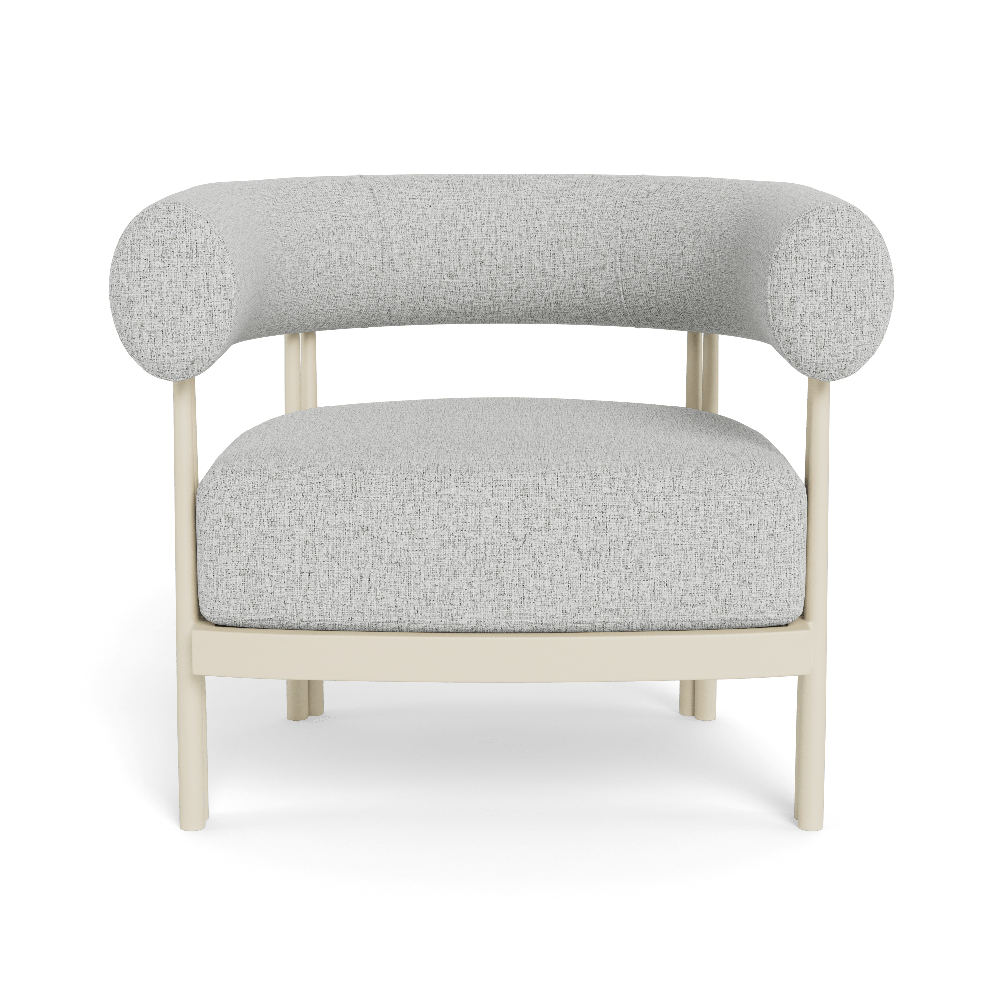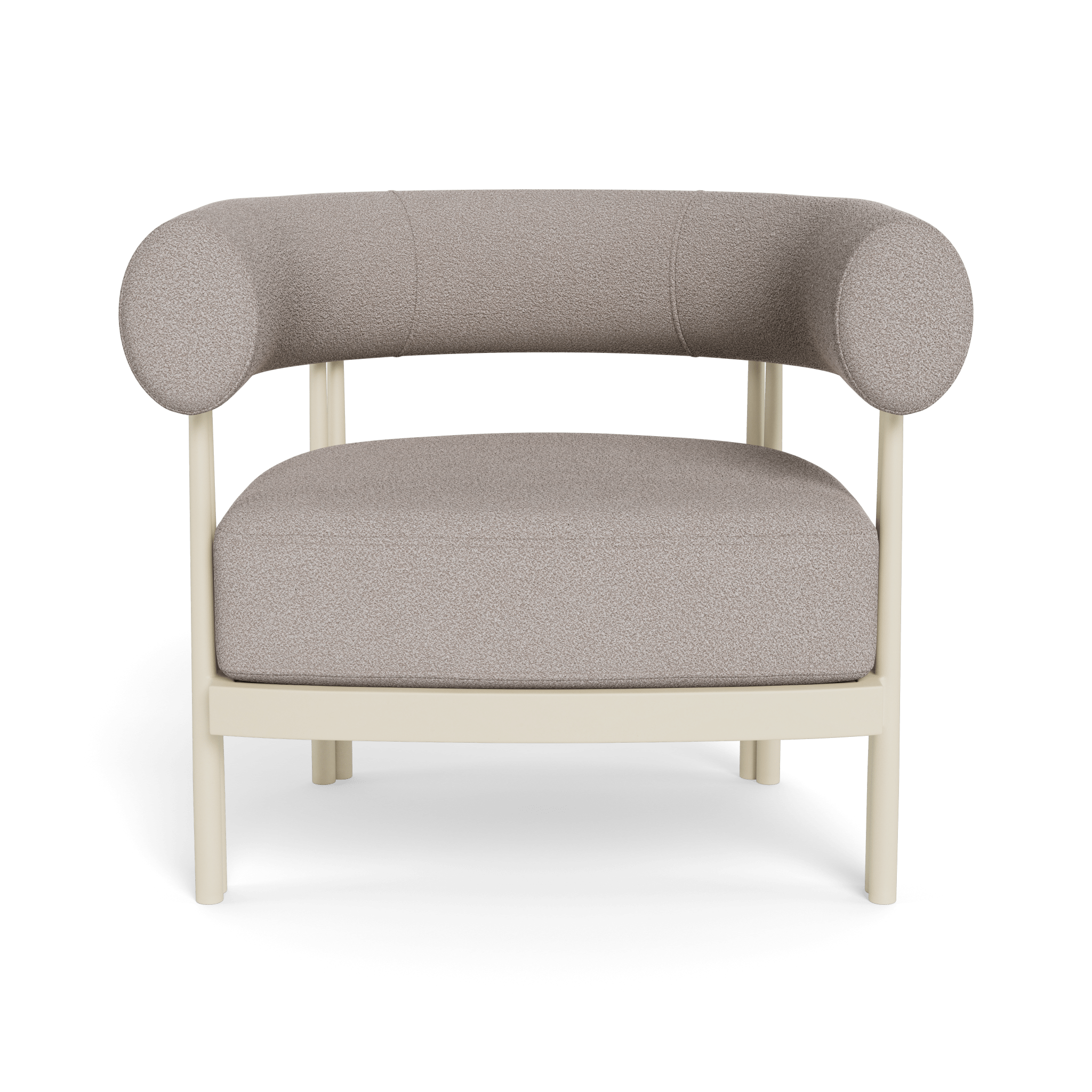 This sophisticated collection features special details like double cylindrical legs and curved edges - refined with luxurious upholstered bolster backs - that create soft sculptural silhouettes with understated elegance.
