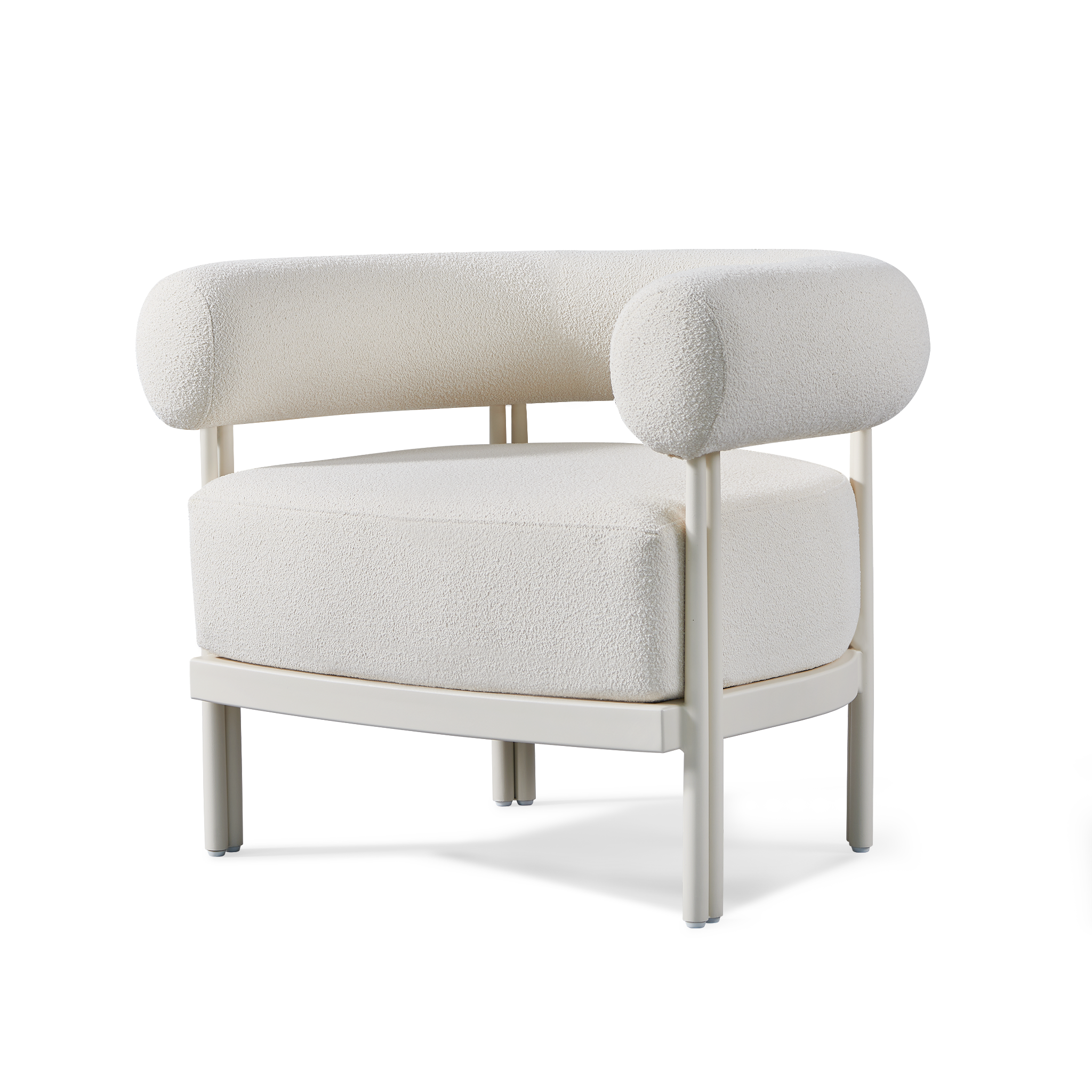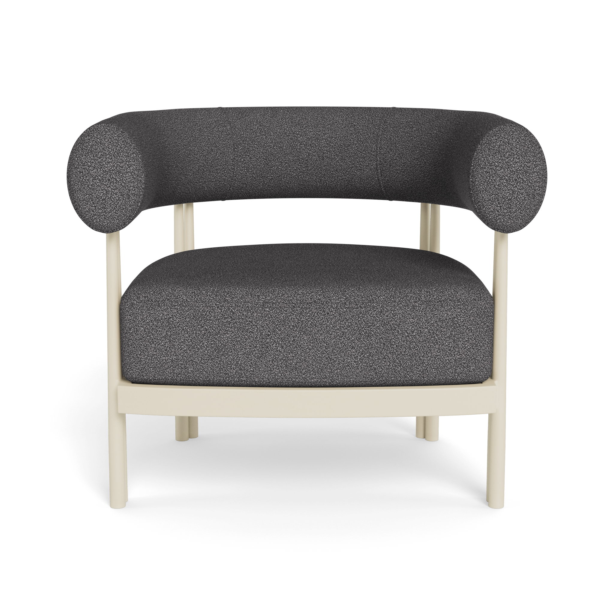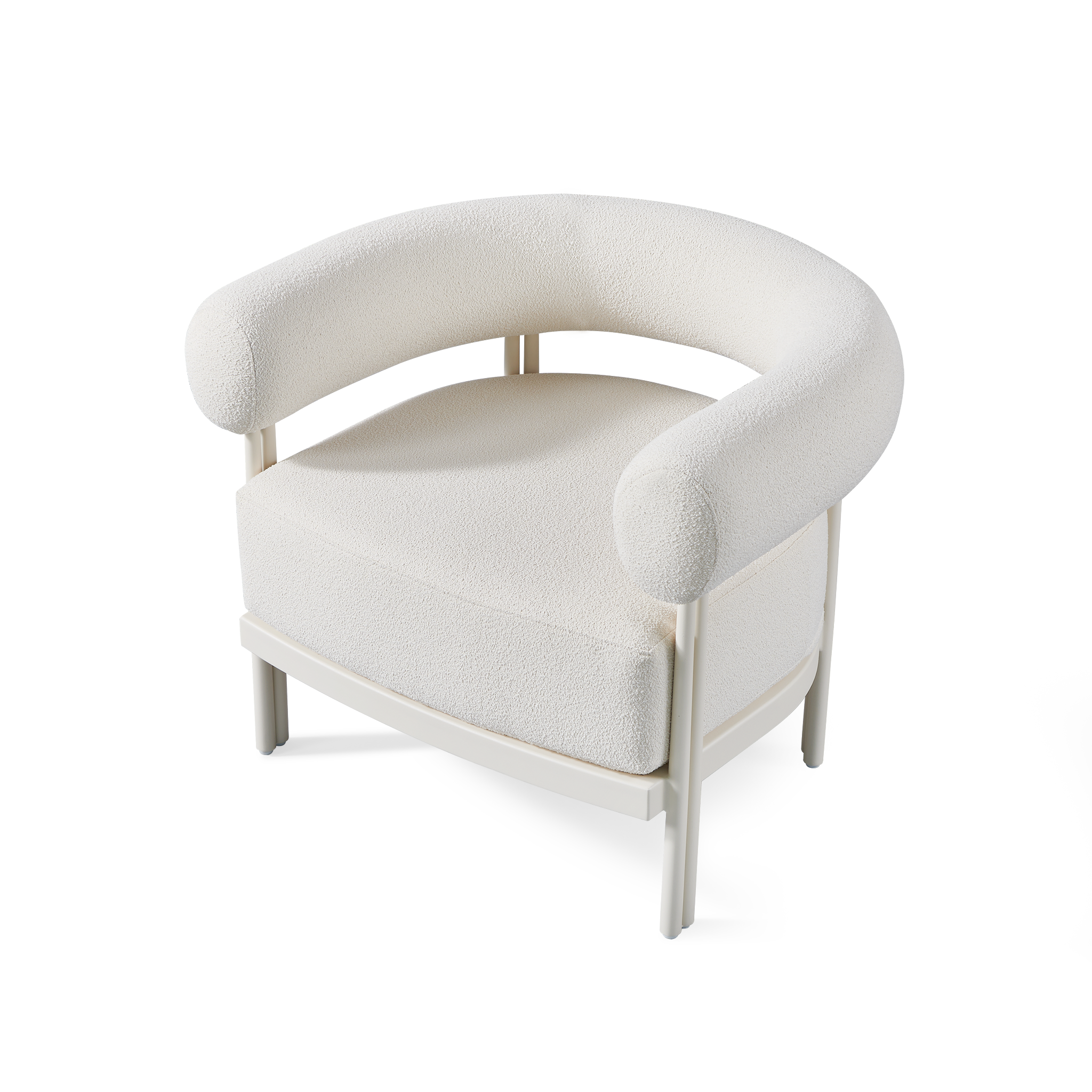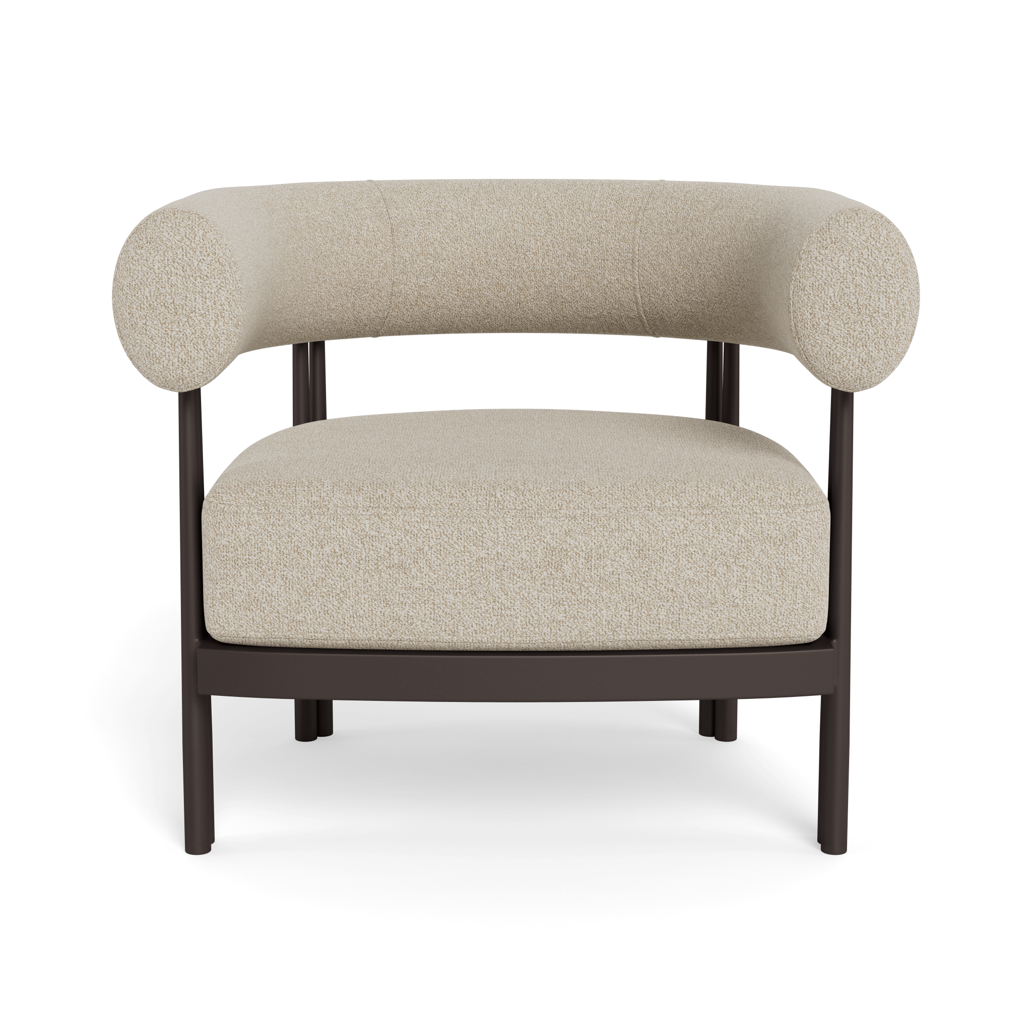 This sophisticated collection features special details like double cylindrical legs and curved edges - refined with luxurious upholstered bolster backs - that create soft sculptural silhouettes with understated elegance.