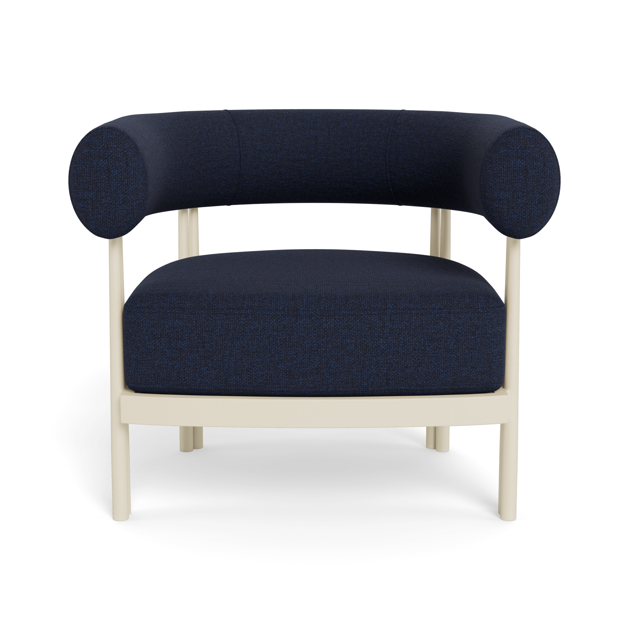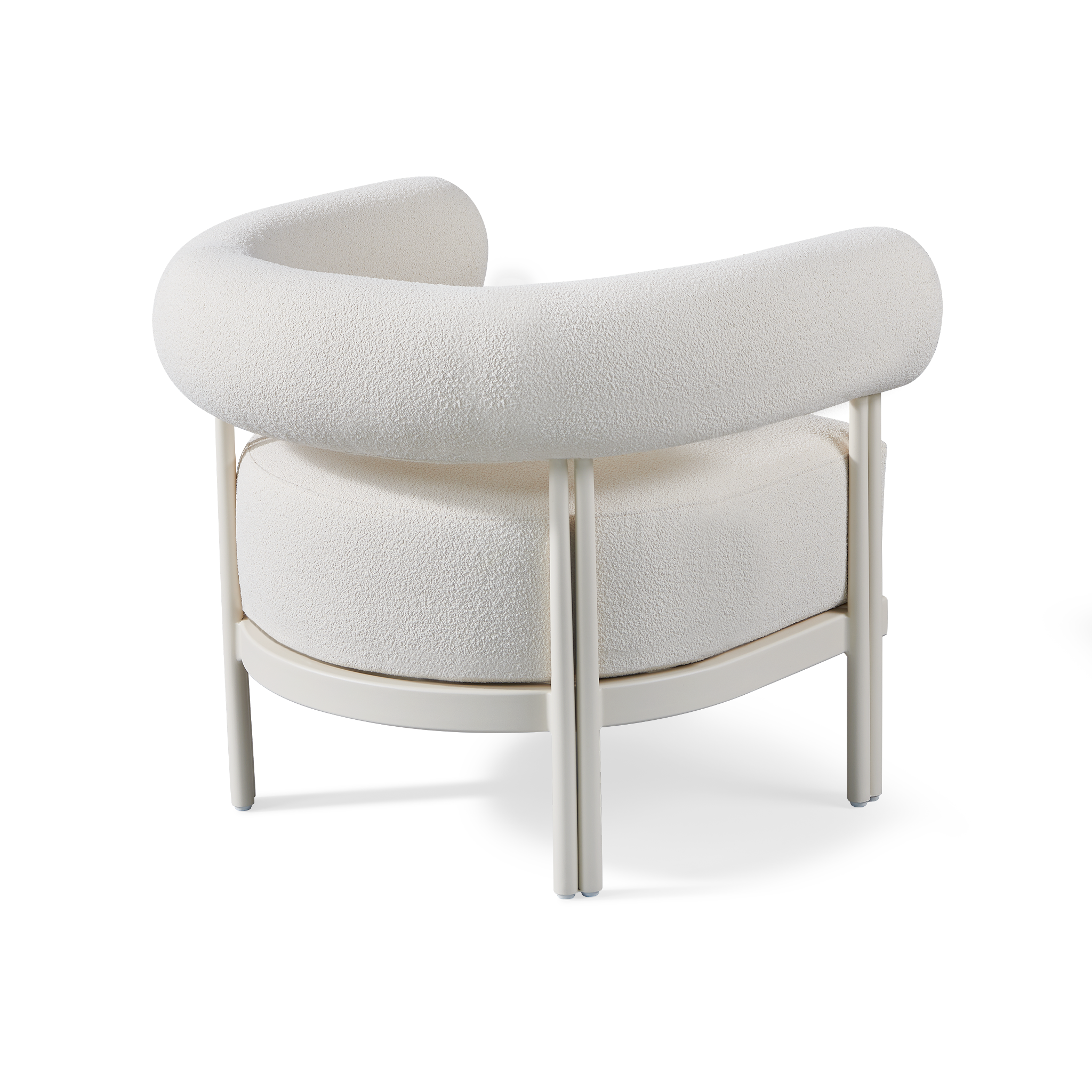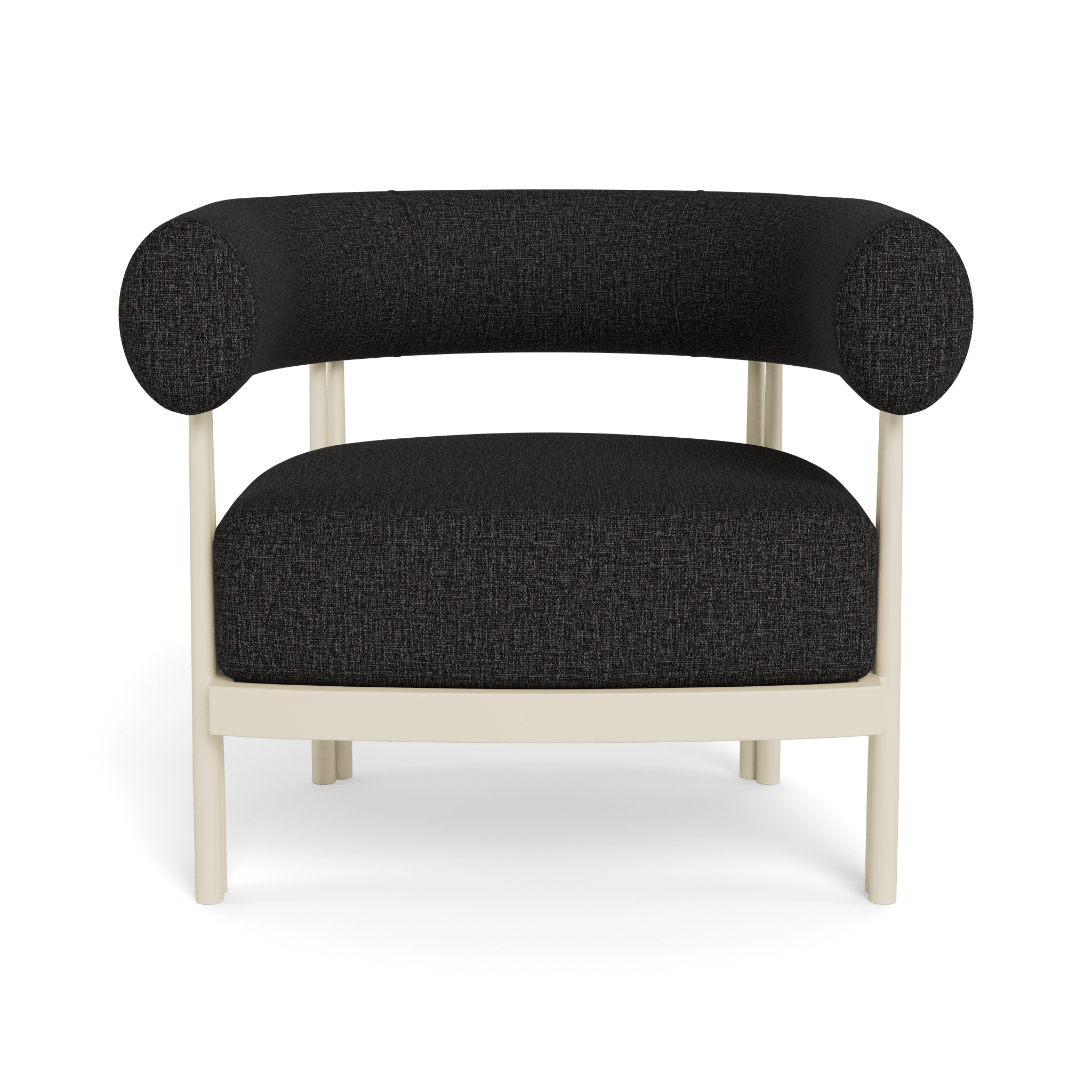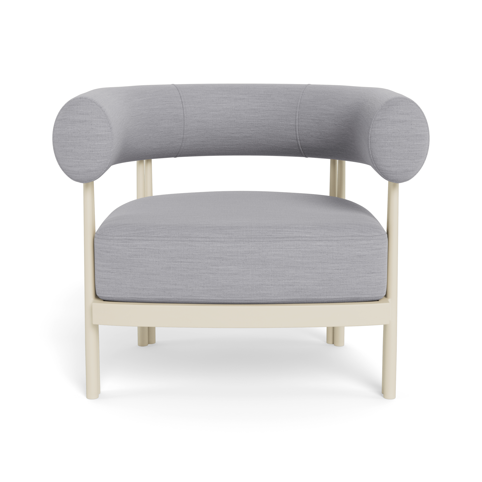 This sophisticated collection features special details like double cylindrical legs and curved edges - refined with luxurious upholstered bolster backs - that create soft sculptural silhouettes with understated elegance.