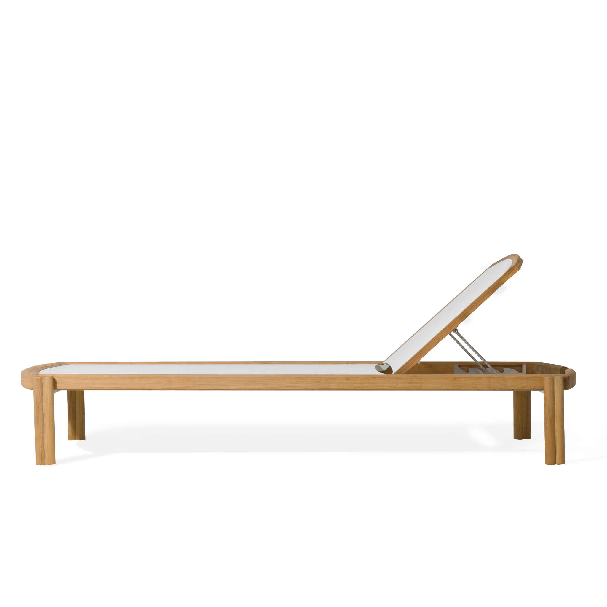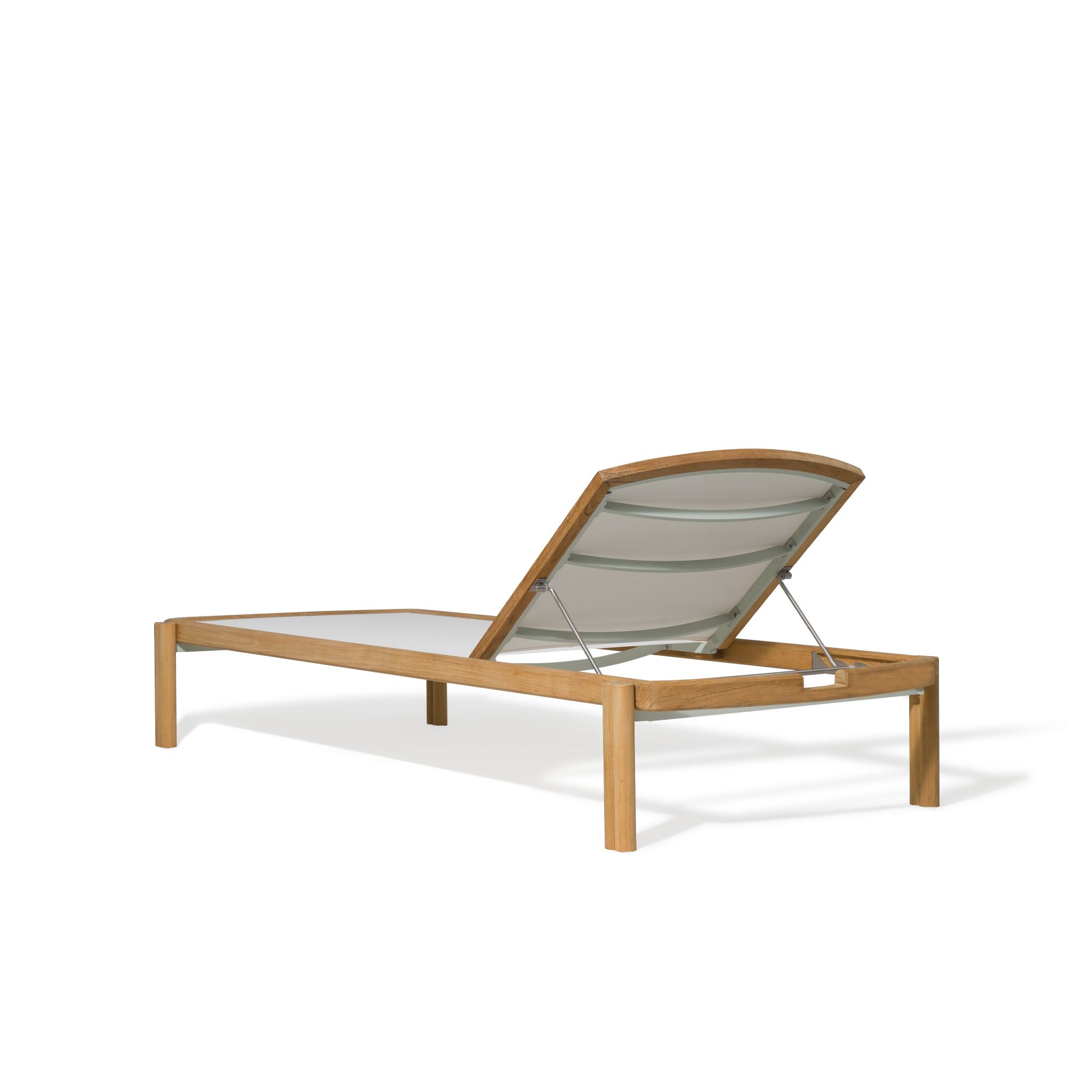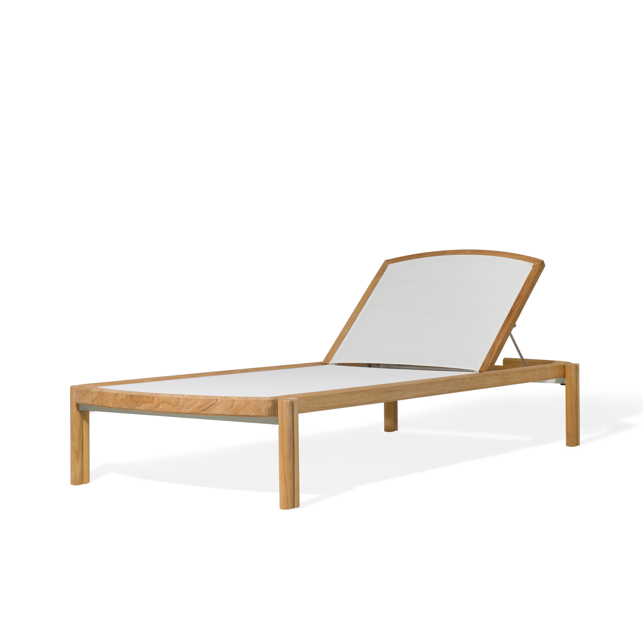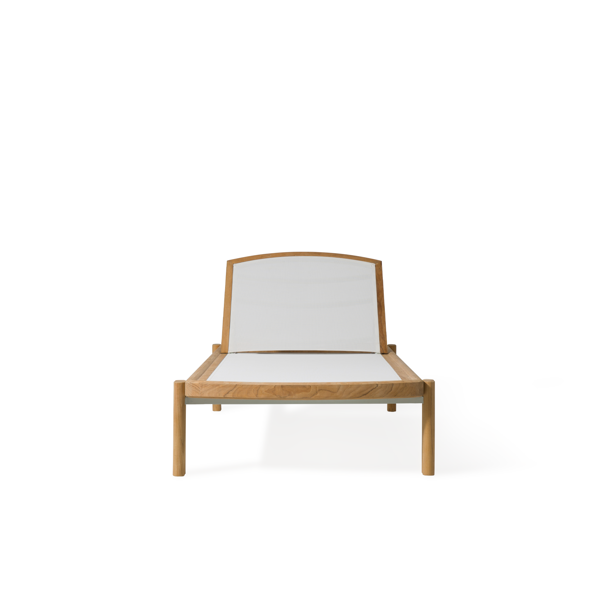 Influenced by modern Australian architecture and landscapes, our refined Cove collection features special details like double cylindrical legs and curved edges that create soft sculptural silhouettes. The Cove Stacking Sun Lounge is contemporary comfort — featuring a refined solid teak frame in Natural with an architectural double leg detail and special curved shape that echoes the design language signature to this series. Enjoy a Batyline sling suspension made for easy use and maintenance. Tracery and light with a footprint to match, this comfort–driven outdoor stacking sun lounge is a versatile design element for any space. Legs are specially designed to allow for effortless stacking and storage.