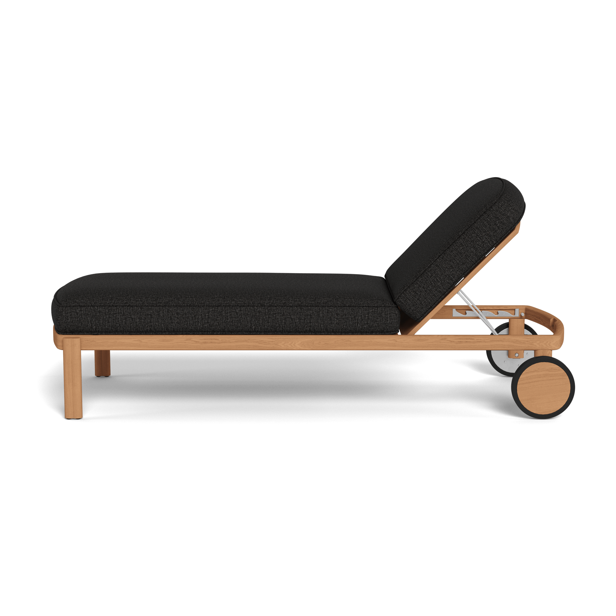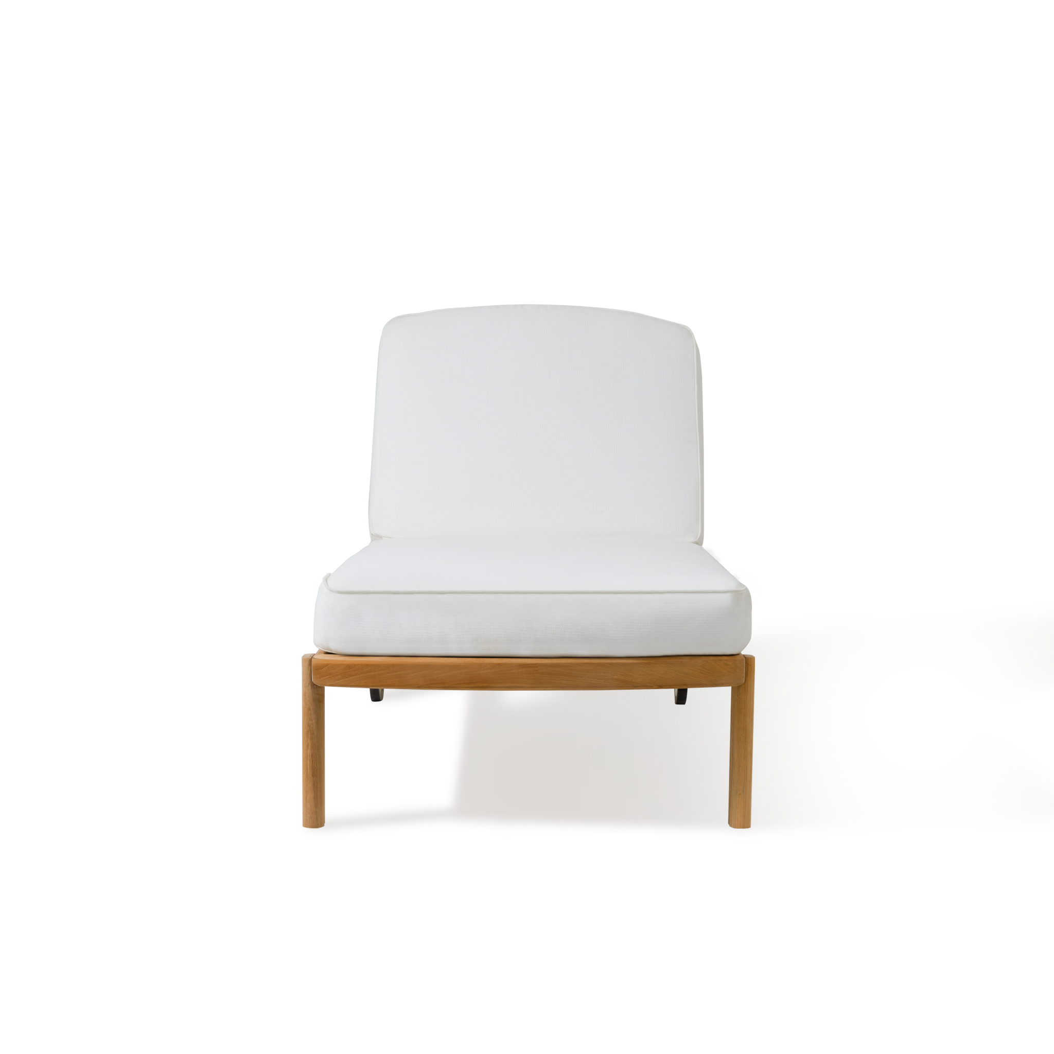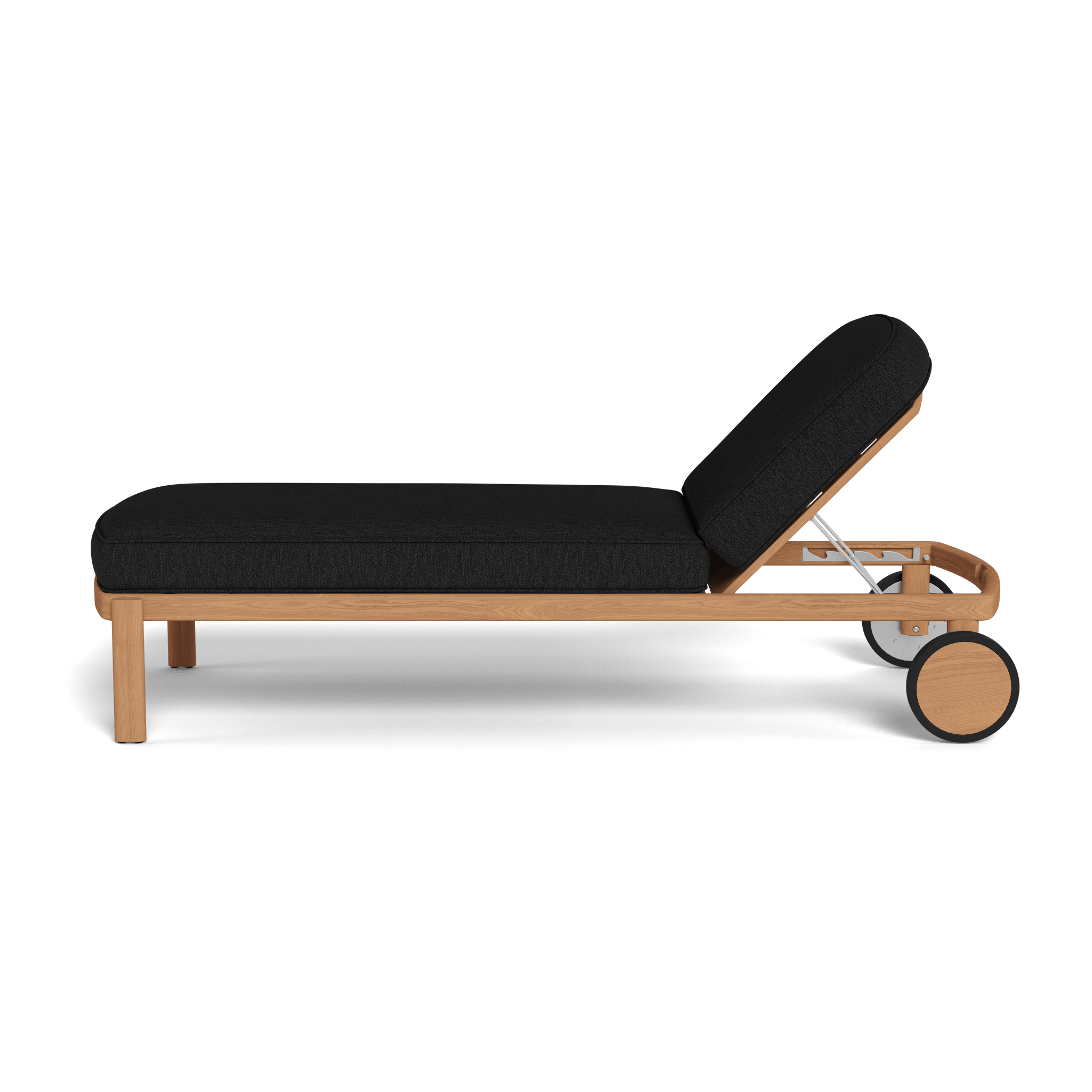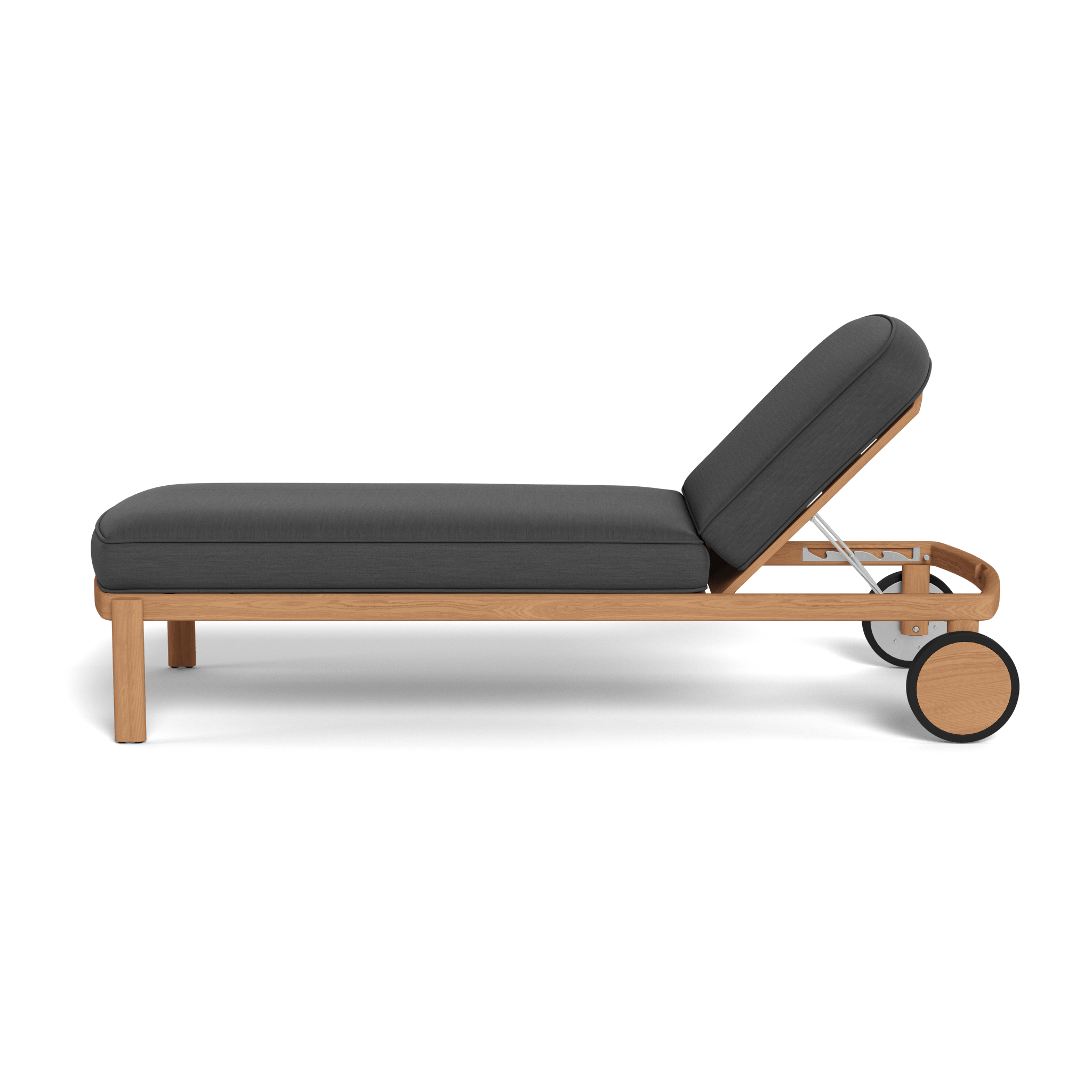 Influenced by modern Australian architecture and landscapes, our refined Cove collection features special details like double cylindrical legs and curved edges that create soft sculptural silhouettes. The Cove Sun Lounge is contemporary comfort — featuring a refined solid teak frame in Natural with an architectural double leg detail and special curved shape that echoes the design language signature to this series. Enjoy a plush all–weather hinged cushion in Copacabana Natural that invites sink–in comfort. Rear rubberized wheels add function and style. Tracery and light with a footprint to match, this comfort–driven outdoor sun lounge is a versatile design element for any space.