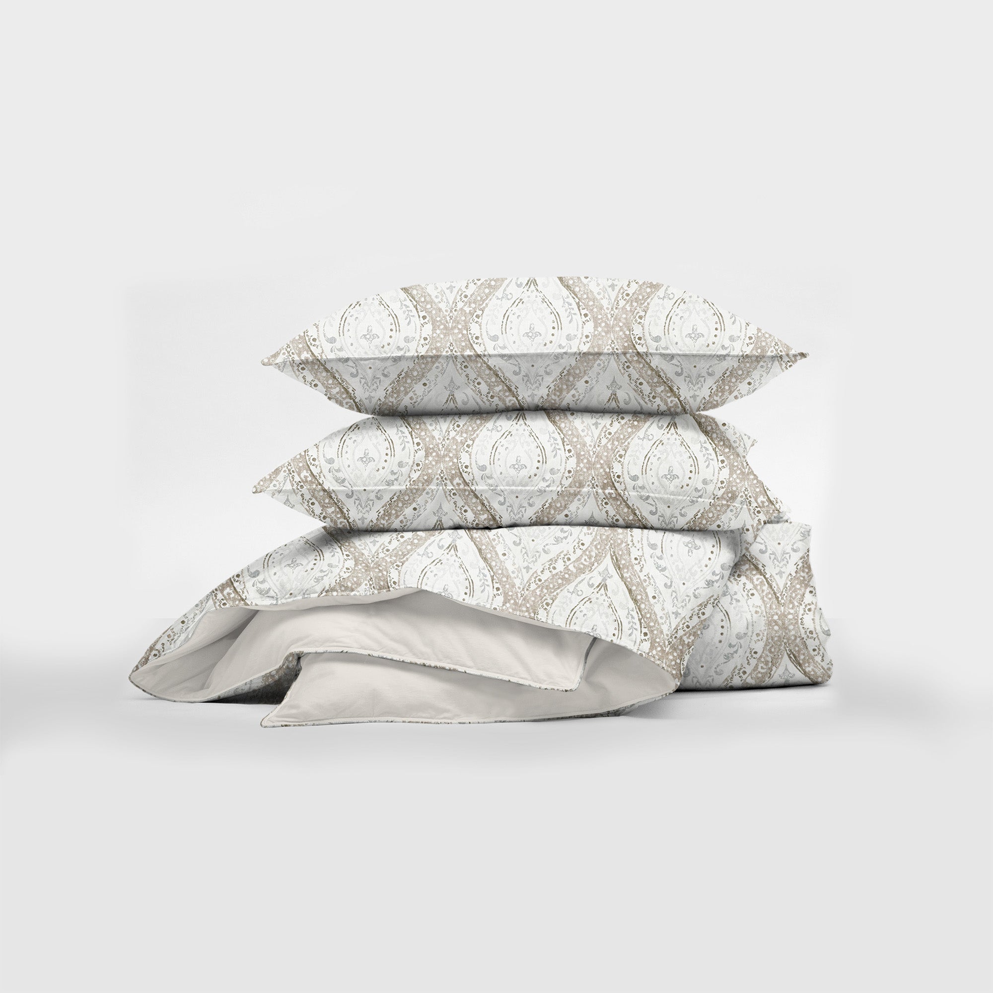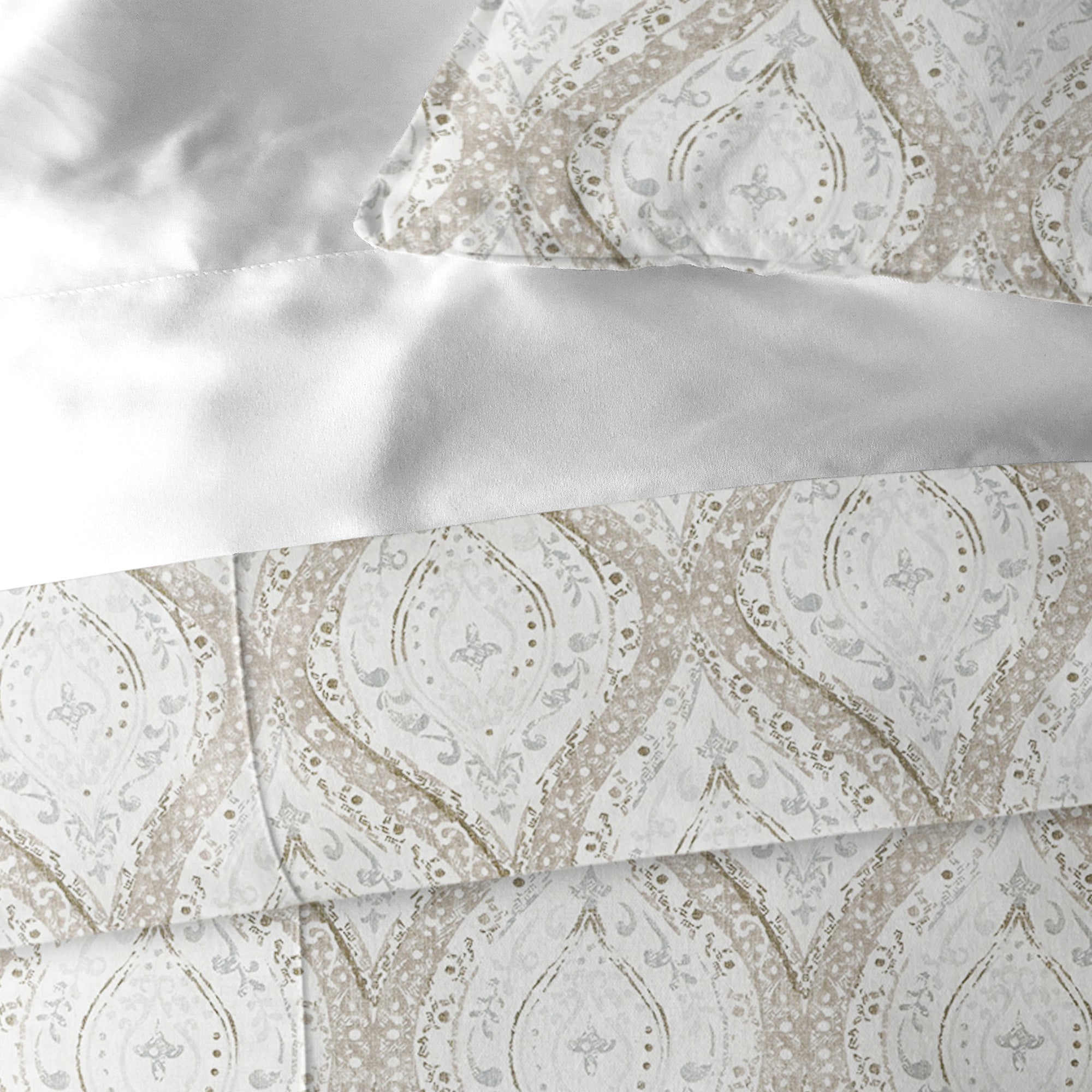 Cressida is a clean, bright, paisley design. Shades of linen, taupe, and gray create a refreshing look that would take center stage...